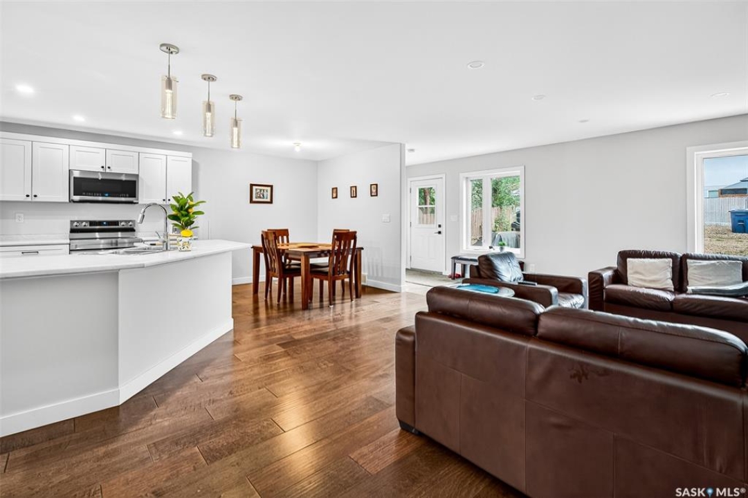Modern 4-Level Split - Discover this Unique One of a kind, Family-friendly New built Home in Moose Jaws west– just a short walk to two schools, an outdoor skating rink, and a park. Built to today's energy efficiency standards, this home offers thoughtful design and features that blend comfort, convenience, and style. Highlights: • ICF insulated foundation for superior efficiency and durability • Engineered hardwood flooring in the main living areas • Wide staircase to upper bedrooms with plush carpeting underfoot • 9-ft basement ceilings for an open, airy feel • Climate-controlled storage space and central air • Transferable 3-year property tax relief (infill construction program) • Single-car garage permitted to be built on property The heart of the home offers two spacious common areas. The Lower feature open concept kitchen, living, dining room – perfect for hosting large gatherings comfortably. This ground level is conveniently situated for unloading groceries, while the home's layout is ideal for families with older children who want both shared and private spaces. The Upper common area – ideal as a formal living room, theater space, or games/family room, with a south-facing picture window offering great natural light and a nice view. The basement level could easily be completed to add a third bedroom and full bath with a soaker tub (builder could finish for $7,000). Outside, the low-maintenance yard is perfect for busy families, but you also have the option to extend the front deck for a sunny, south-facing outdoor retreat. If you're looking for a home that's efficient, functional, and designed with modern family living in mind, this 4-level split is ready to Welcome you HOME!