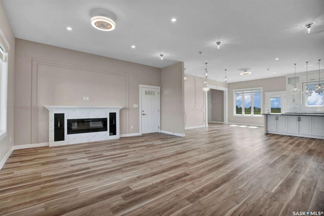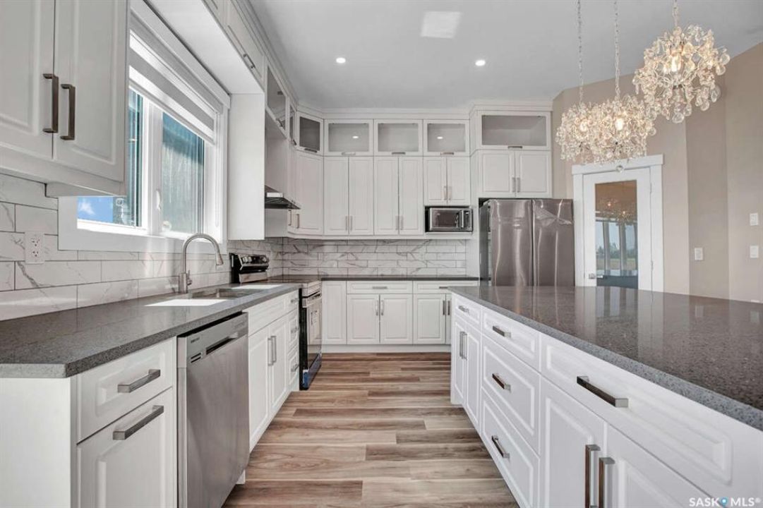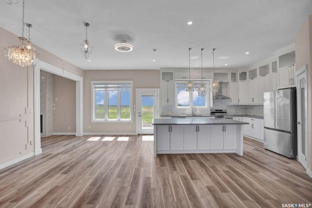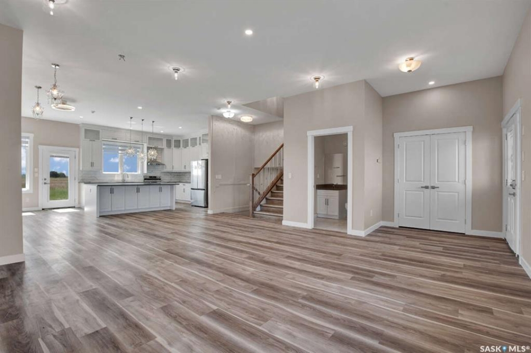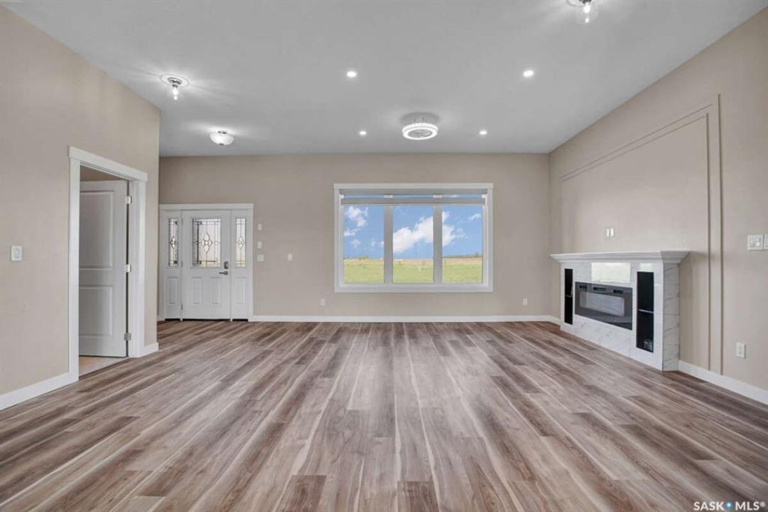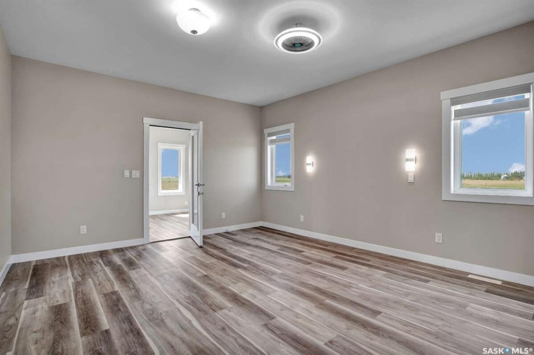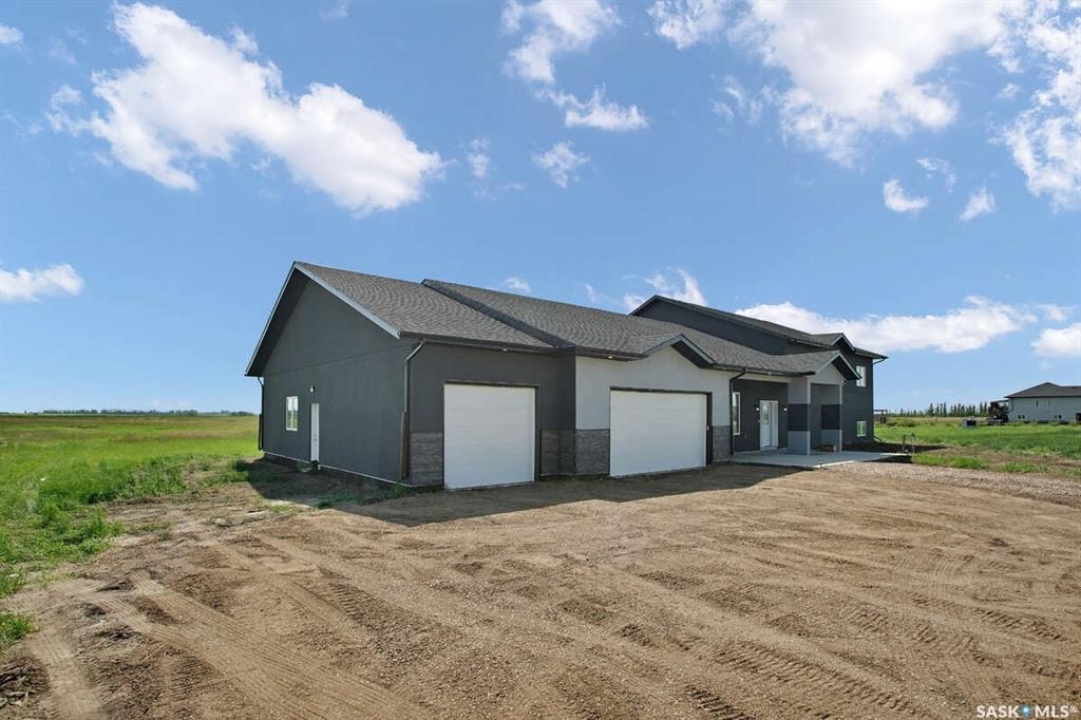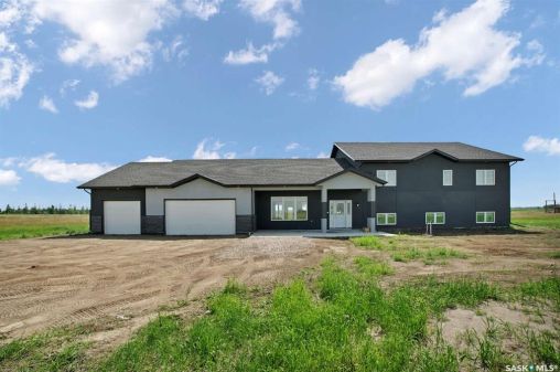 For more information, please click the "More Information" button. This family home is located on over 4 acres in Waterpark Estate, RM314 Dundurn, less than 20 minutes from Saskatoon. The property at 75A Antelope Road offers 6 bedrooms and 4.5 bathrooms, with 4 bedrooms on the main floor and 2 in the fully developed basement. The kitchen features granite countertops, an undermount sink, stainless steel appliances, a large island with storage, a walk-in pantry, built-in garbage space, a backsplash, kitchen hood exhaust, and ample cabinetry. The open-concept great room combines living and dining areas. Ceiling heights are 10 feet in the basement, 9 feet in the main-floor bedrooms, and higher in the great room. Triple-pane windows provide natural light and energy efficiency. Heating is supplied by a natural gas boiler with in-floor heating for the main living areas, basement, bedrooms, and bathrooms. The living room includes a natural gas fireplace, and the family room has an electric fireplace. The top-floor suite has an office nook, full bathroom, and private partially heated deck. Two laundry rooms are located on the main floor and in the basement. The basement is fully developed with a rough-in for a kitchen or wet bar, offering the option for a separate suite. The triple attached garage is insulated, gas-heated, and provides ample storage and workspace. Energy-efficient systems include central air, an HRV air exchanger, central vacuum, and a high-efficiency water heater. Outdoor features include a concrete front deck with countryside views and a backyard deck with a natural gas BBQ hook-up. The home is constructed with foam stucco exterior, a well-insulated attic, and triple-pane windows. This property offers functional design, energy-efficient construction, and versatile living space in a peaceful country setting close to the city.