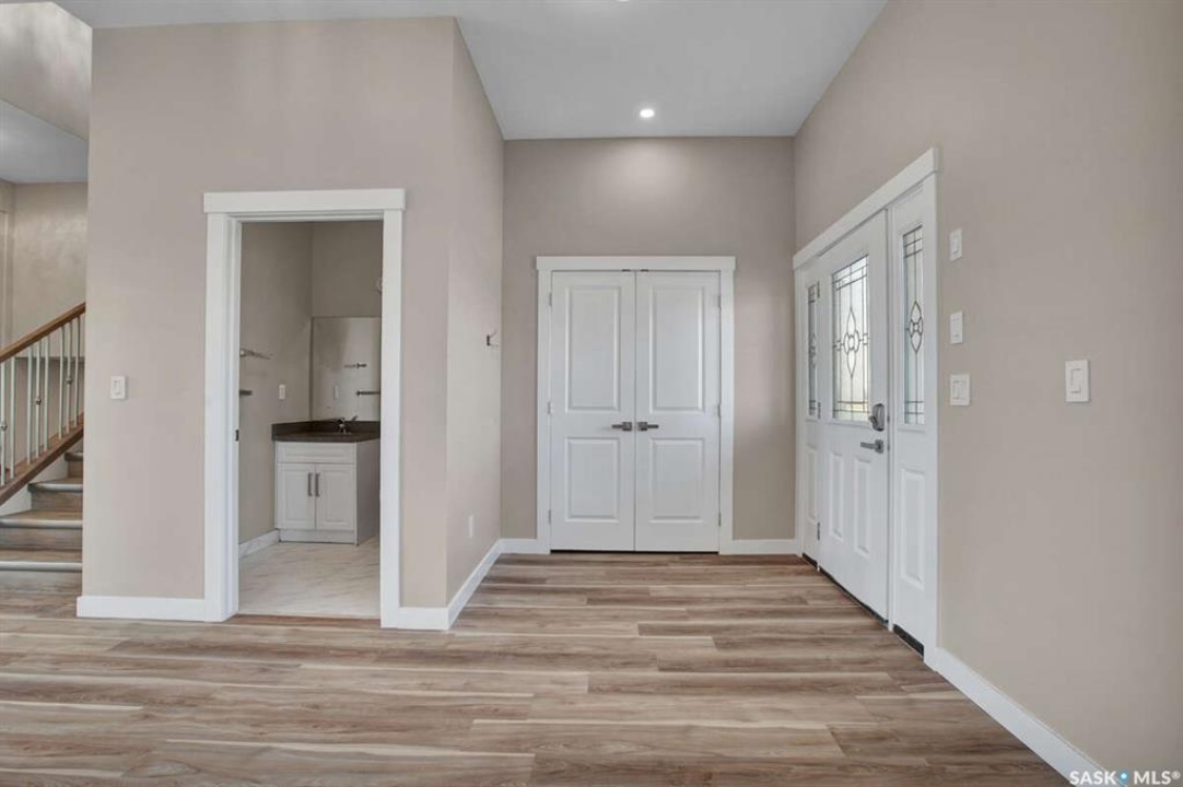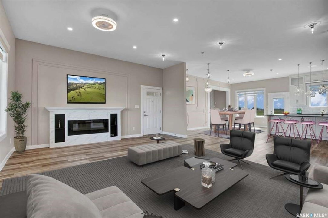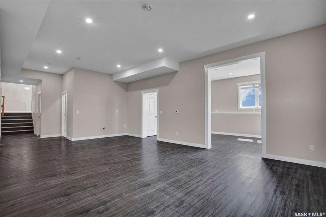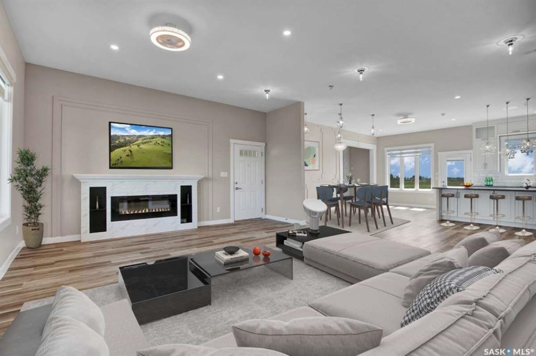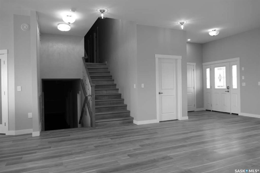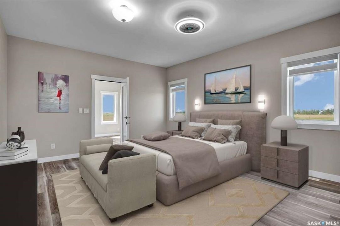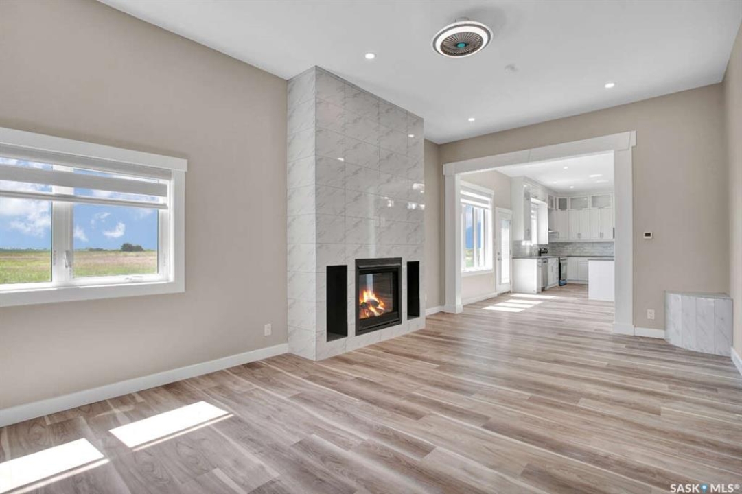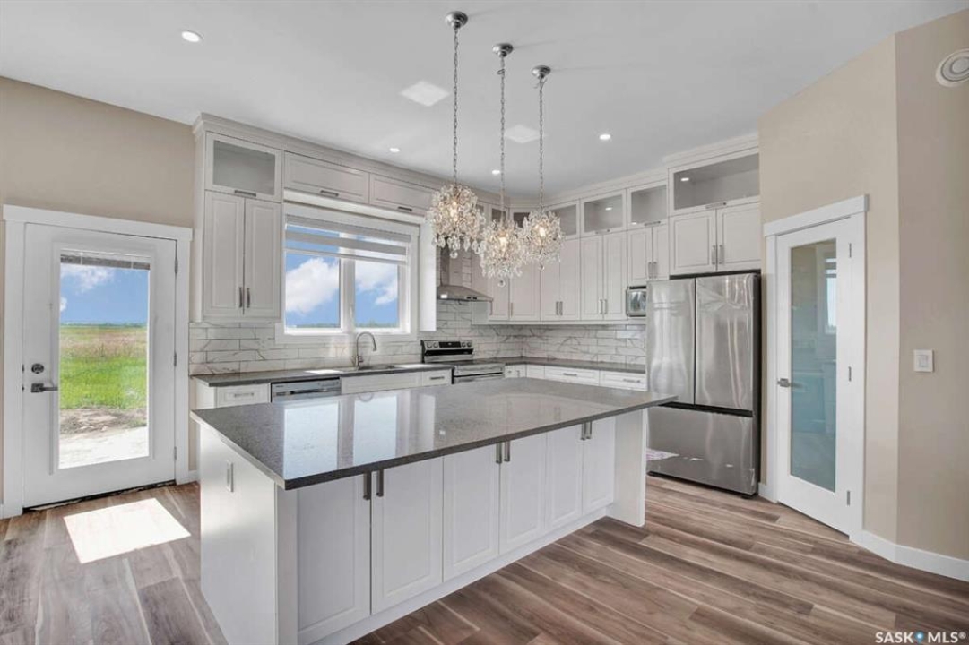 For more information, please click the "More Information" button. This family home is located on over 4 acres in Waterpark Estate, RM314 Dundurn, less than 20 minutes from Saskatoon. The property at 75A Antelope Road offers 6 bedrooms and 4.5 bathrooms, with 4 bedrooms on the main floor and 2 in the fully developed basement. The kitchen features granite countertops, an undermount sink, stainless steel appliances, a large island with storage, a walk-in pantry, built-in garbage space, a backsplash, kitchen hood exhaust, and ample cabinetry. The open-concept great room combines living and dining areas. Ceiling heights are 10 feet in the basement, 9 feet in the main-floor bedrooms, and higher in the great room. Triple-pane windows provide natural light and energy efficiency. Heating is supplied by a natural gas boiler with in-floor heating for the main living areas, basement, bedrooms, and bathrooms. The living room includes a natural gas fireplace, and the family room has an electric fireplace. The top-floor suite has an office nook, full bathroom, and private partially heated deck. Two laundry rooms are located on the main floor and in the basement. The basement is fully developed with a rough-in for a kitchen or wet bar, offering the option for a separate suite. The triple attached garage is insulated, gas-heated, and provides ample storage and workspace. Energy-efficient systems include central air, an HRV air exchanger, central vacuum, and a high-efficiency water heater. Outdoor features include a concrete front deck with countryside views and a backyard deck with a natural gas BBQ hook-up. The home is constructed with foam stucco exterior, a well-insulated attic, and triple-pane windows. This property offers functional design, energy-efficient construction, and versatile living space in a peaceful country setting close to the city.