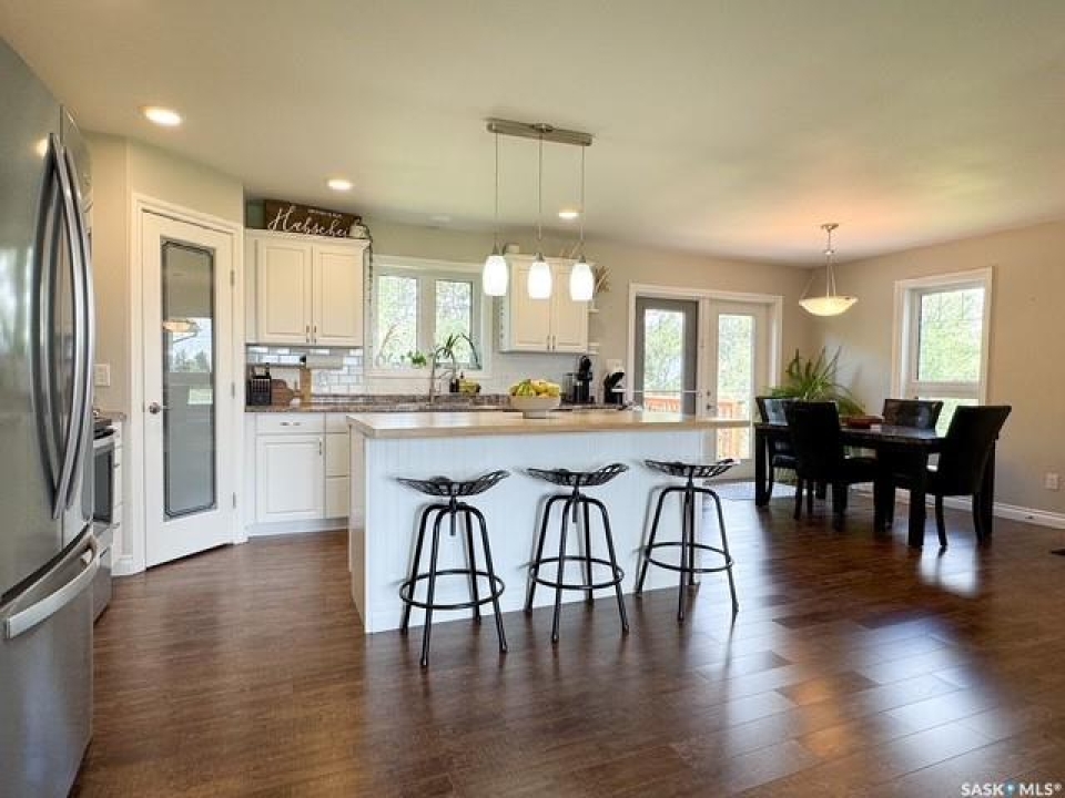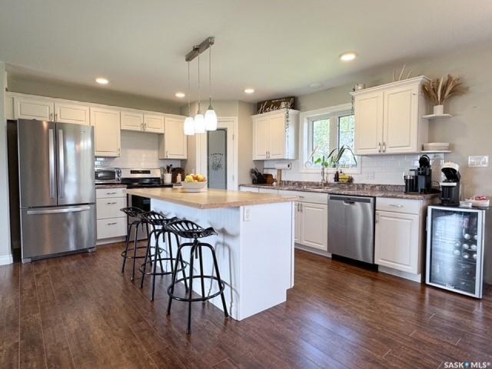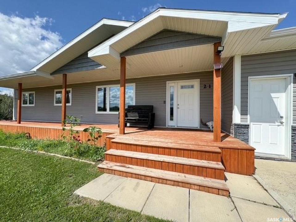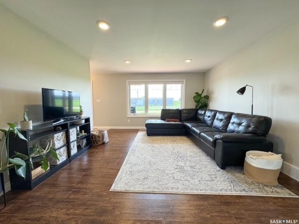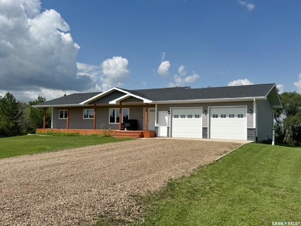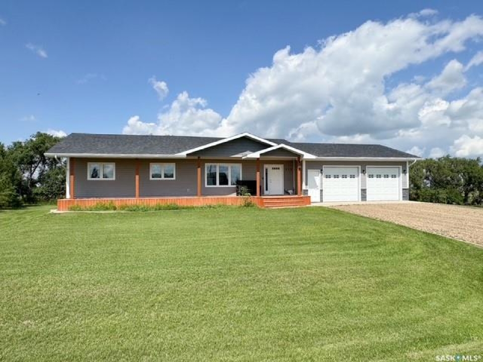 If you are looking for a quieter, more private lifestyle without sacrificing style - space - or your budget- this 2015 built 3 bedroom, 3 bathroom home is a must see. Enjoy a quick, all paved 8 minute commute to the city of Swift Current. Come home at the end of your day to your 1440 square foot bungalow located at the end of a quiet avenue surrounded by lush green views and relax on the covered front verandah as you watch the weather roll in. Inside, the main floor features a spacious kitchen with island and pantry, a bright dining area with patio doors to the deck, and a comfortable living room. The primary suite includes two closets and a full 4-piece ensuite. Two additional large bedrooms offer great closet space, and there's another full 4-piece bathroom plus a handy 2-piece bath with laundry hook-ups if you prefer main floor laundry. Downstairs, the high-ceiling basement is open for development, with large windows that fill the space with natural light—perfect for adding two more bedrooms, a full bath, and a family room. This home also has a true double attached insulated garage for year round convenience. Call today to book your private tour and see what a difference country living can be!