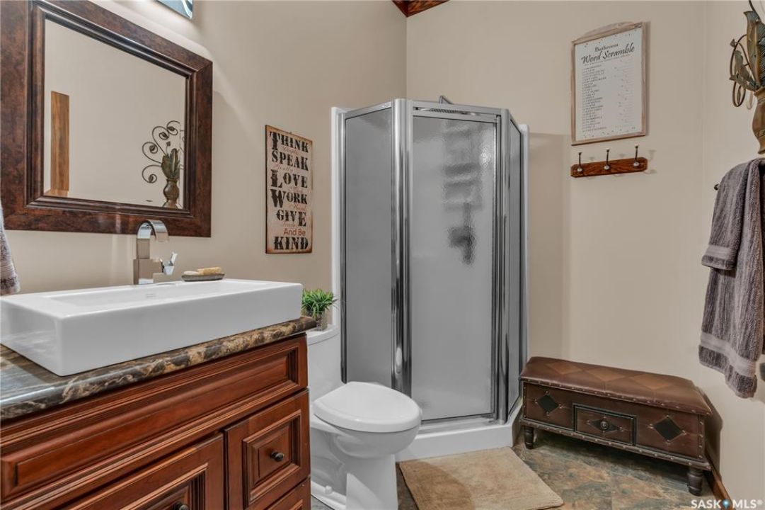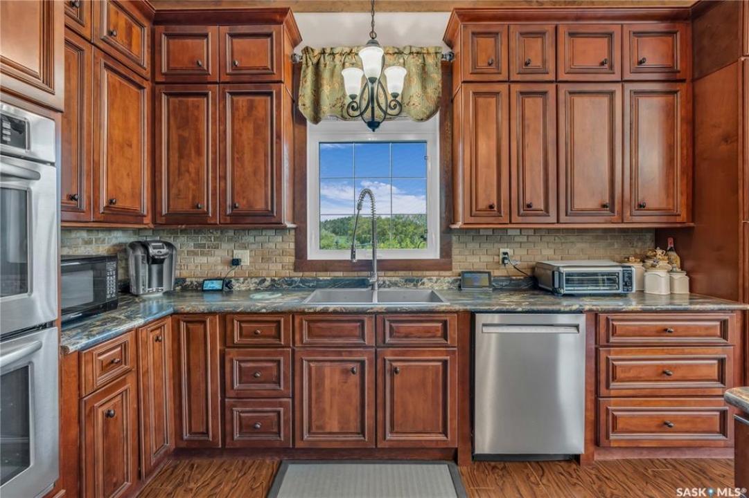 Welcome to Turtle River Quarter — 159 acres of Saskatchewan countryside offering upscale rural living, income potential, and endless recreation. Just 14 km from Edam (home to a K-12 school only 14 km away, with bus pickup right at your door) and 62 km from North Battleford, this gently rolling property includes 90 cultivated acres currently rented out for income, with the remainder in pasture, bush, and the scenic Turtle River. At the heart of the property is a custom-built 3,060 sq. ft. barndominium (2013) with an ICF block foundation, in-floor heating, and durable metal siding and roof. Inside, soaring 10' ceilings, a rustic stone fireplace, and solid fir interior doors and trim add warmth and character. The chef's kitchen boasts two built-in ovens and two full-sized refrigerators—perfect for entertaining or hosting large groups. Three spacious bedrooms each have walk-in closets, with the primary suite offering an elegant ensuite and a patio door leading to a private deck. An additional sitting room provides another comfortable space to relax, which could easily double as an extra bedroom if needed. Connected to the home is a 2,940 sq. ft. heated shop with a three-car garage and RV bay. The landscaped 3-acre yard includes a two-tier deck, orchard with multiple fruit trees, fire pit, three garden plots, a 100-yard shooting range, and a hunting blind—making it an ideal hunting lodge or retreat. With a deep well, propane heat, septic system, and new air conditioning, Turtle River Quarter blends comfort, privacy, and nature into one exceptional package. This isn't just a home—it's a lifestyle. Here, you can grow your own food in the gardens and orchard, watch deer and other wildlife wander through your yard, and breathe in the fresh country air. Spend your days surrounded by nature's beauty, and your evenings taking in the peace and quiet you truly deserve. Book your private showing today and experience everything this incredible property has to offer.