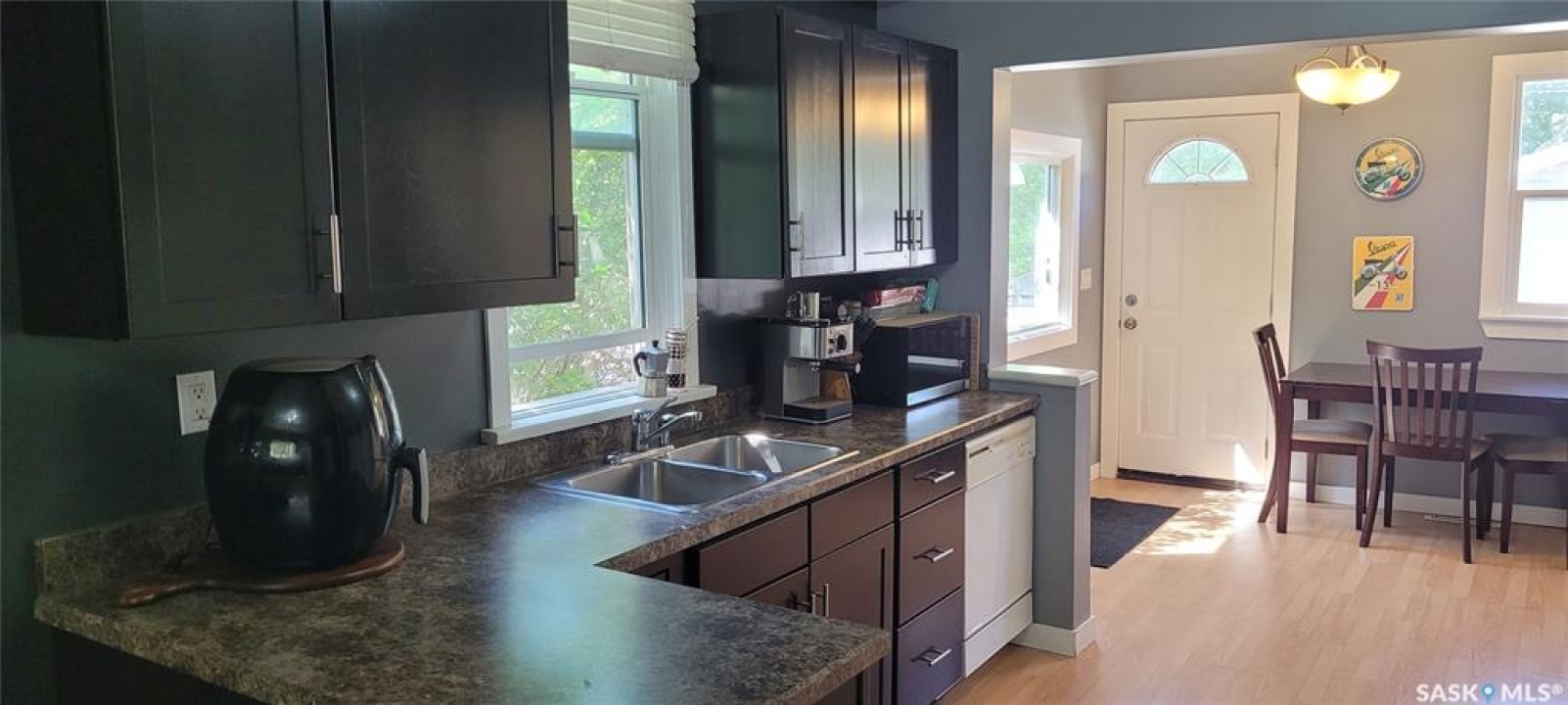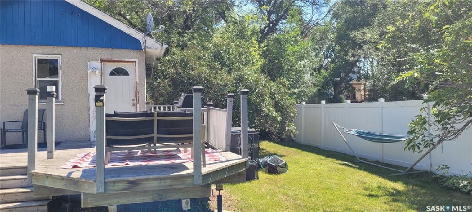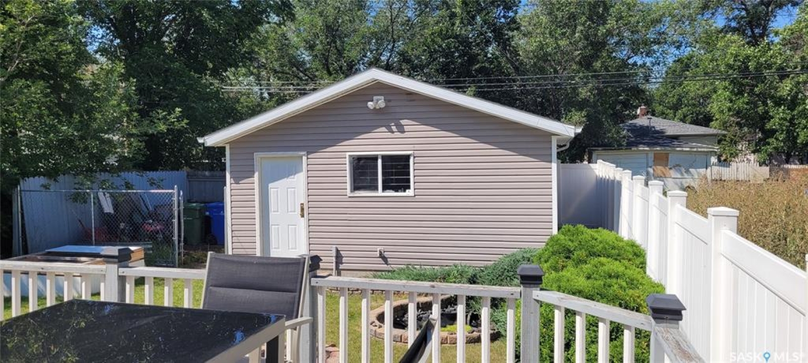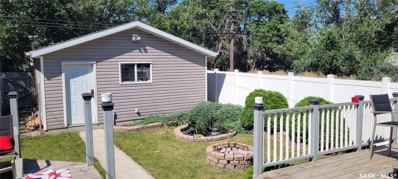 Well cared for Bungalow west of Dewdney Ave! Ready for new owner's. Ideal home to start building equity. Completely fenced with pvc .Beautifully landscaped front and back with fish pond and water fall. Open concept main level featuring laminate flooring in living room, dining and Kitchen area. Upgraded kitchen cabinets and counter tops with pantry. Good size master and den that could easily be converted back to bedroom. Full bath on main upgraded. Lower level features rec area and den with carpeting. Laundry and storage areas complete this level. Double detached garage with rv parking . This home offers central air and all appliances included.