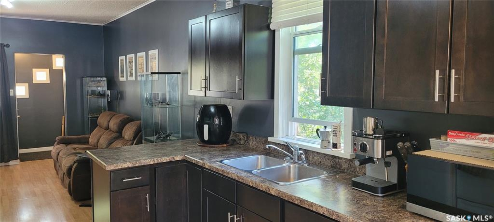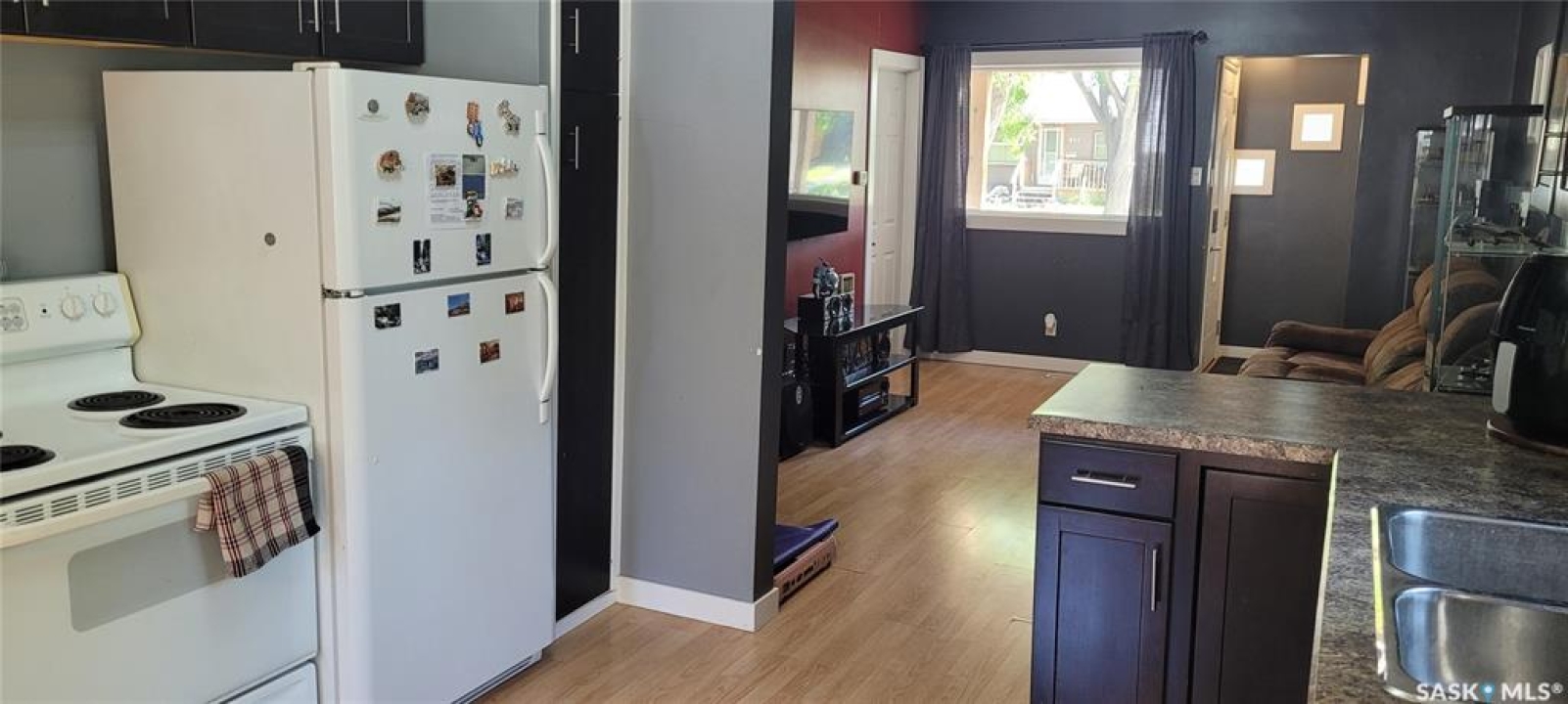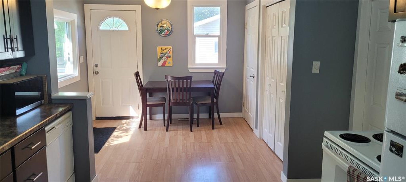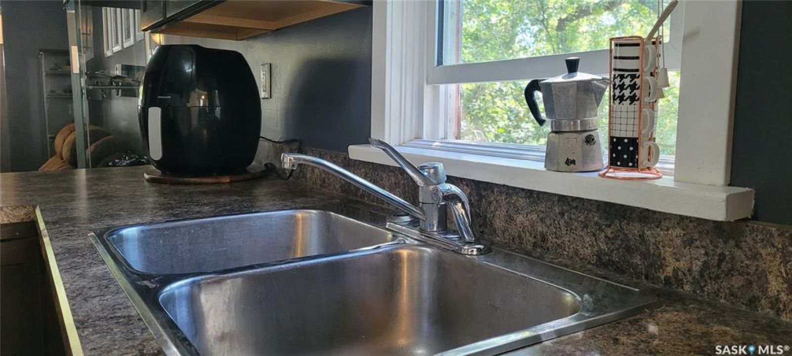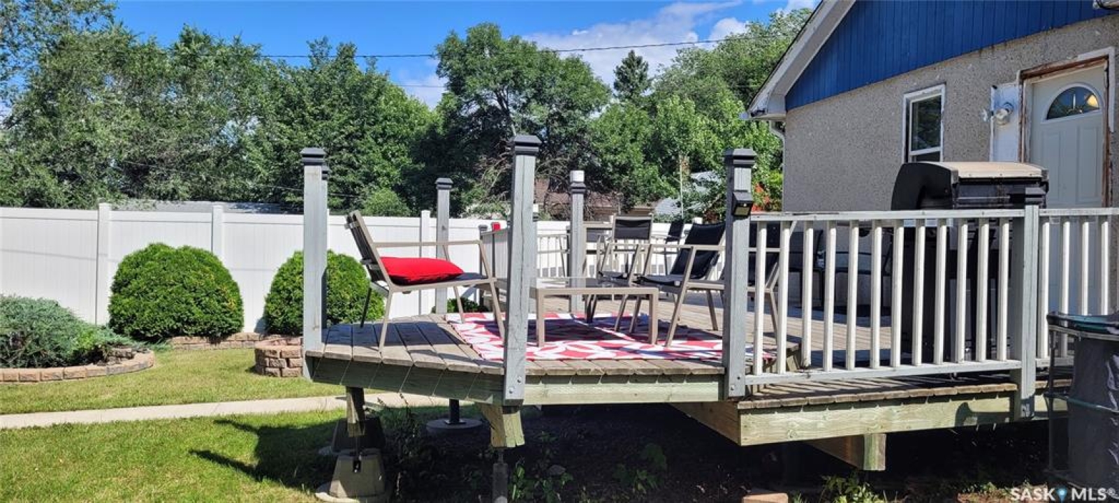 Well cared for Bungalow west of Dewdney Ave! Ready for new owner's. Ideal home to start building equity. Completely fenced with pvc .Beautifully landscaped front and back with fish pond and water fall. Open concept main level featuring laminate flooring in living room, dining and Kitchen area. Upgraded kitchen cabinets and counter tops with pantry. Good size master and den that could easily be converted back to bedroom. Full bath on main upgraded. Lower level features rec area and den with carpeting. Laundry and storage areas complete this level. Double detached garage with rv parking . This home offers central air and all appliances included.