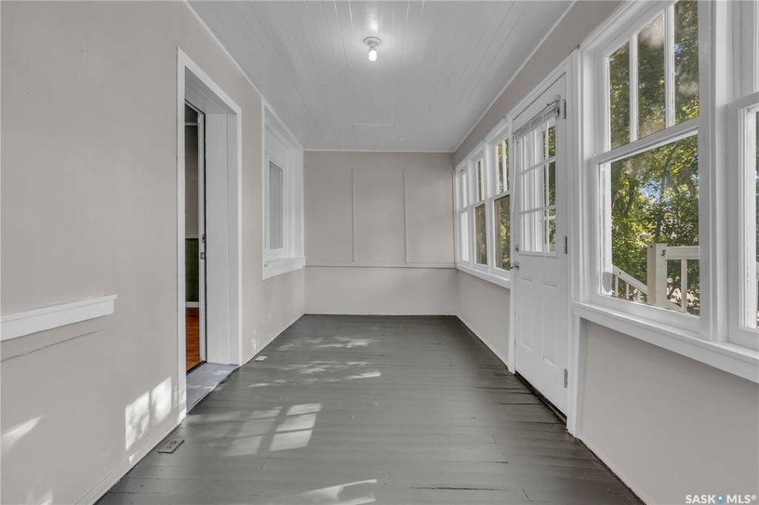 Welcome to 2223 Toronto Street! This well-maintained & thoughtfully updated 1 bedroom, 1 bath home, ideally located within walking distance to the Regina General Hospital, downtown, Wascana Park, and more. Whether you're looking for an affordable investment property or ready to transition from renting to ownership, this property offers excellent value & convenience. Situated on a large 3122 sq ft private lot, this 767 sq ft bungalow is move-in ready! Curb appeal is charming! Upon entering, the oversized front porch area is secure & a fabulous place for a sitting area! An open-concept living, dining, & kitchen area creates a bright & inviting living space with the kitchen offering plenty of cabinets, counterspace, & shelves. The front living room is a generous size & makes it easy to configure furniture. One large bedroom opens up to the spacious full bathroom. Continuing on the main floor is a back porch with storage, & access to a fully fenced & private Private, fully fenced backyard with shed, raised garden planters, and it is ideal for relaxing. The basement is solid, dry, & currently undeveloped but offers so much room for storage! Parking at the back for two vehicles with lane access. Many upgrades including: Electrical (date unknown), bedroom flooring (2025), fence (2024), paint (2025), radon mitigation system (2019 - an uncommon & valuable feature in homes of this style & age), Sewer line (2023), Water line - lead pipes replaced w' copper pipes (2023), washer/dryer (approx 2020), shingles (2010), updated furnace (age unknown), front steps & railing (2023), back yard renovations (2018), and lastly, updates to the front landscaping (2022). This move-in-ready home is a rare opportunity in a prime location - perfect for those working nearby at the hospital or downtown! Affordable and solid!