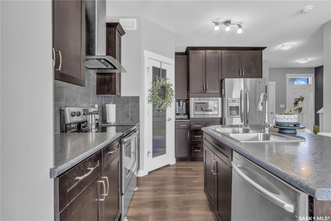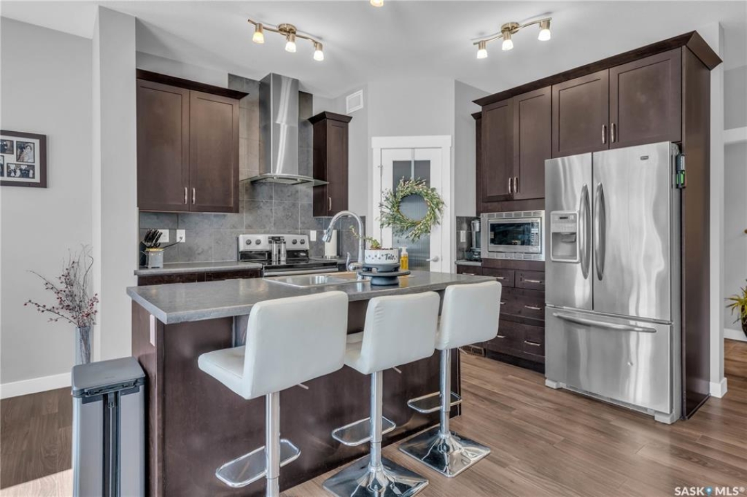 Step into the perfect blend of style, comfort, and convenience in this like-new, 2013-built, 3-bedroom, 4-bathroom two-storey home in sought-after Hawkstone. With 1,478 sq. ft. of thoughtfully designed living space, every detail has been crafted to make daily life effortless and entertaining a joy. From the moment you enter, you're welcomed by an airy, open-concept main floor bathed in natural light. Neutral paint tones and 9' ceilings create a bright, inviting atmosphere, while sleek laminate flooring flows seamlessly throughout. In the living room, a cozy natural gas fireplace adds warmth and ambiance. The heart of the home, the modern kitchen, features an eat-up island with a built-in sink, stainless steel appliances, and a corner pantry, making both cooking and conversation easy. Host summer gatherings with ease thanks to the sliding patio doors that open onto your south-facing backyard retreat. The expansive maintenance-free deck and lush turf grass mean more time enjoying the sunshine and zero weekends lost to yard work. Upstairs, the private master retreat offers a generous walk-in closet and ensuite, while two additional bedrooms provide plenty of space for family or guests. The finished basement extends your living area with a cozy rec room with an electric fireplace and a full 4-piece bath perfect for movie nights, a playroom, or a home gym. Practical touches like main-floor laundry off the direct-entry garage make everyday living smooth and organized. This prime Hawkstone location is close to parks, schools, and shopping.