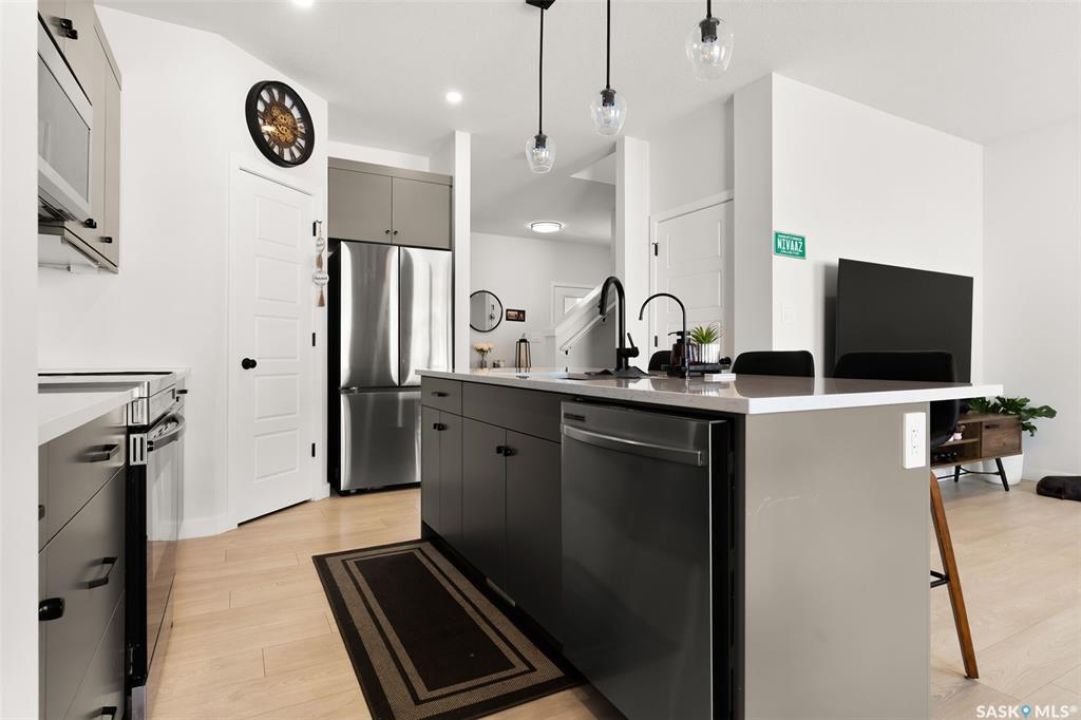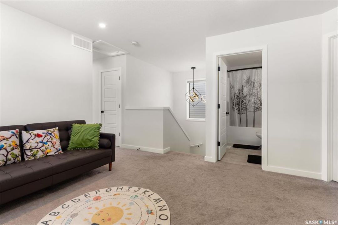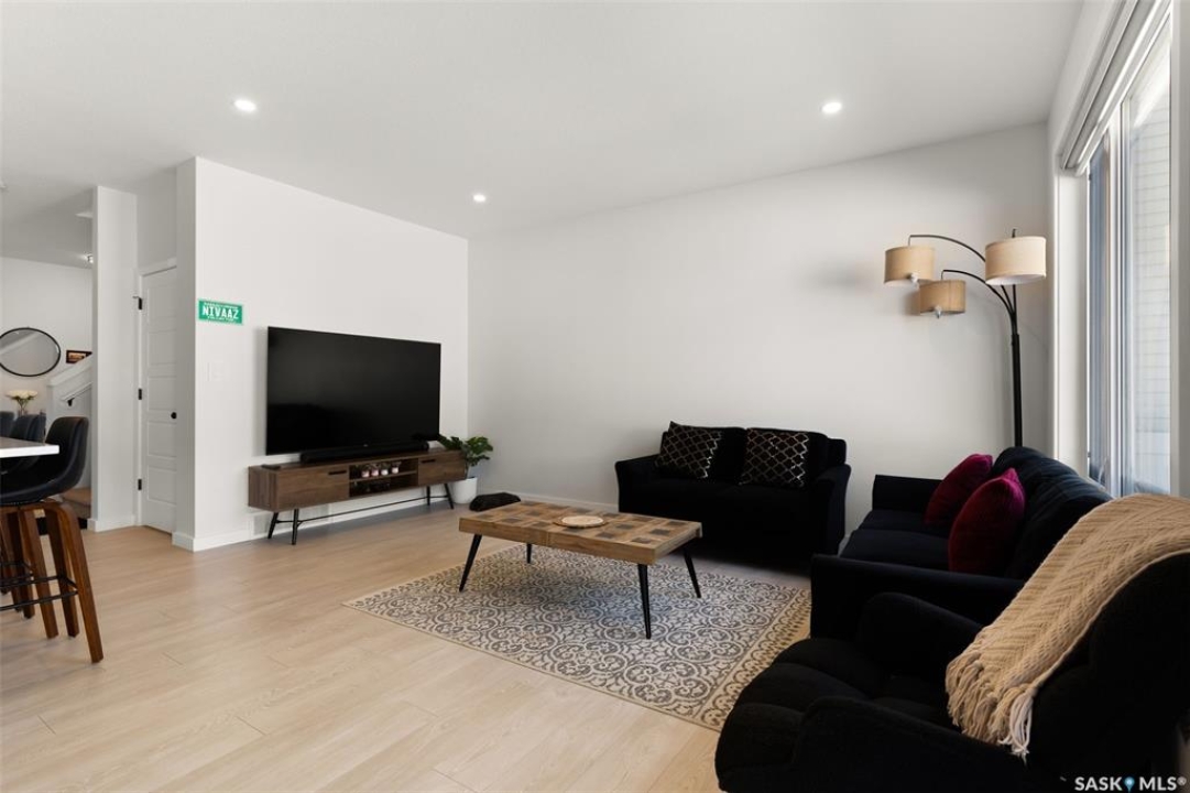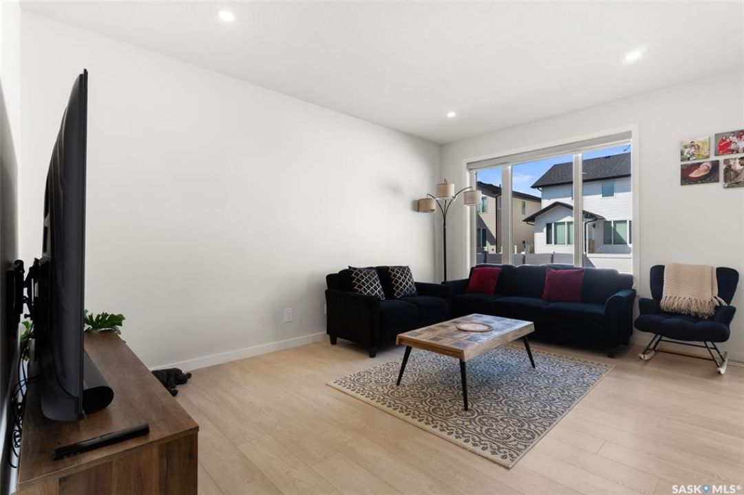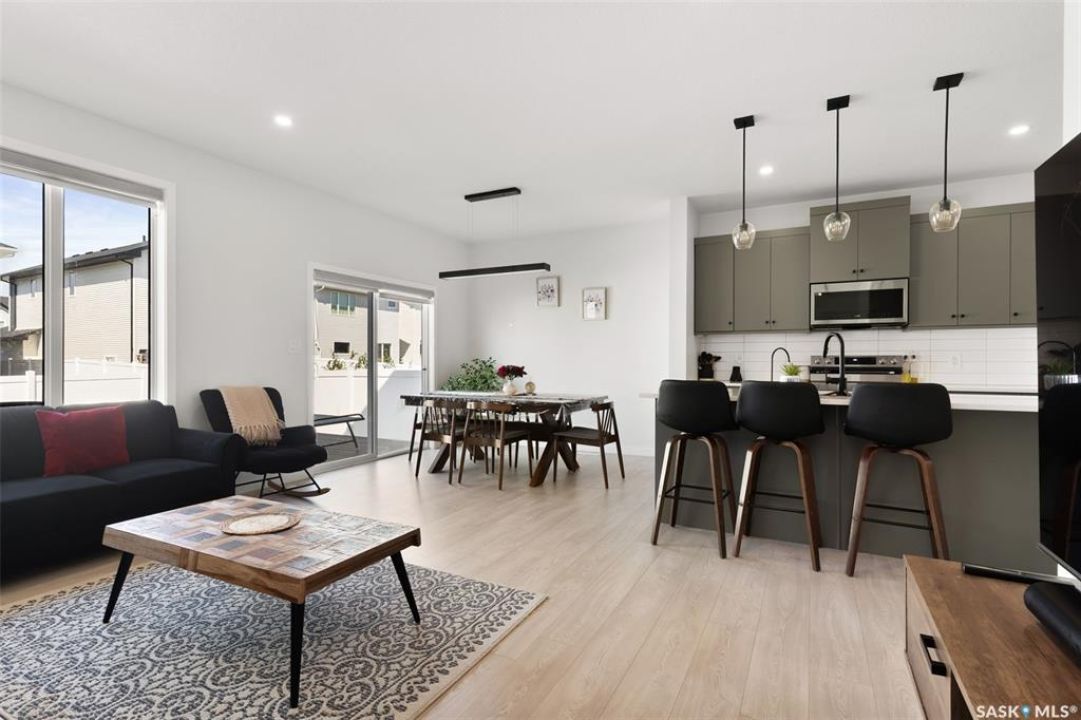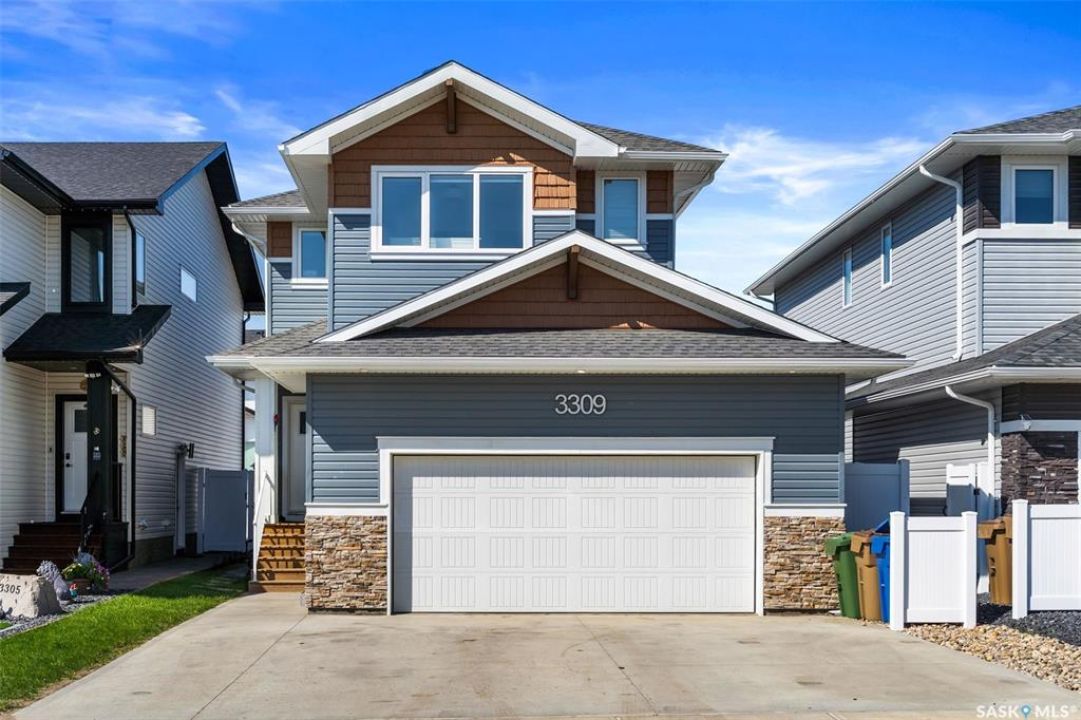 Welcome to 3309 Favel Drive, a beautifully designed 2-storey home in the sought-after community of The Towns. Built in 2023, this modern residence offers 1,714 sq. ft. of above-grade living space plus a fully developed basement, perfect for families seeking style, comfort, and functionality. The open-concept main floor is bright and inviting, featuring a spacious living room with large windows that flood the space with natural light. The dining area provides direct access to the backyard, while the contemporary kitchen is a chef's dream—complete with sleek cabinetry, quartz countertops, a tile backsplash, stainless steel appliances, and an island with seating. A convenient 2-piece bathroom rounds out the main level. Upstairs, you'll find a versatile bonus room, a laundry area, and three bedrooms, including the primary suite with a walk-in closet and a private 4-piece ensuite. An additional full bathroom services the remaining bedrooms. The fully finished basement offers excellent potential for extended family living or additional income, featuring a separate side entrance, a second kitchen, living room, two bedrooms, and a full bathroom. Outside, the home boasts a double attached garage, concrete driveway, and a fully fenced backyard with a deck—ready for you to personalize. Additional highlights include central air conditioning, on-demand hot water, and modern finishes throughout. Located close to parks, schools, shopping, and all east-end amenities, this home is the perfect blend of convenience and contemporary living.