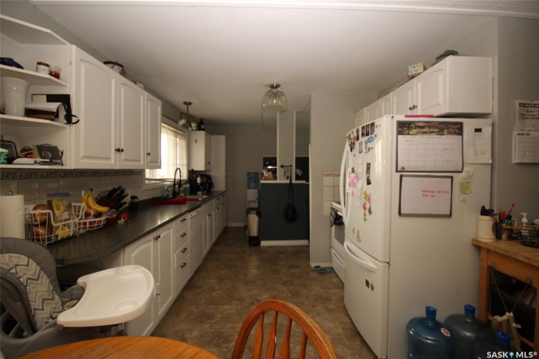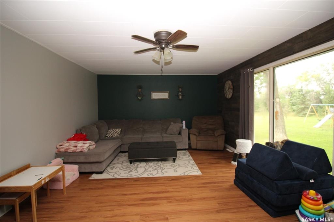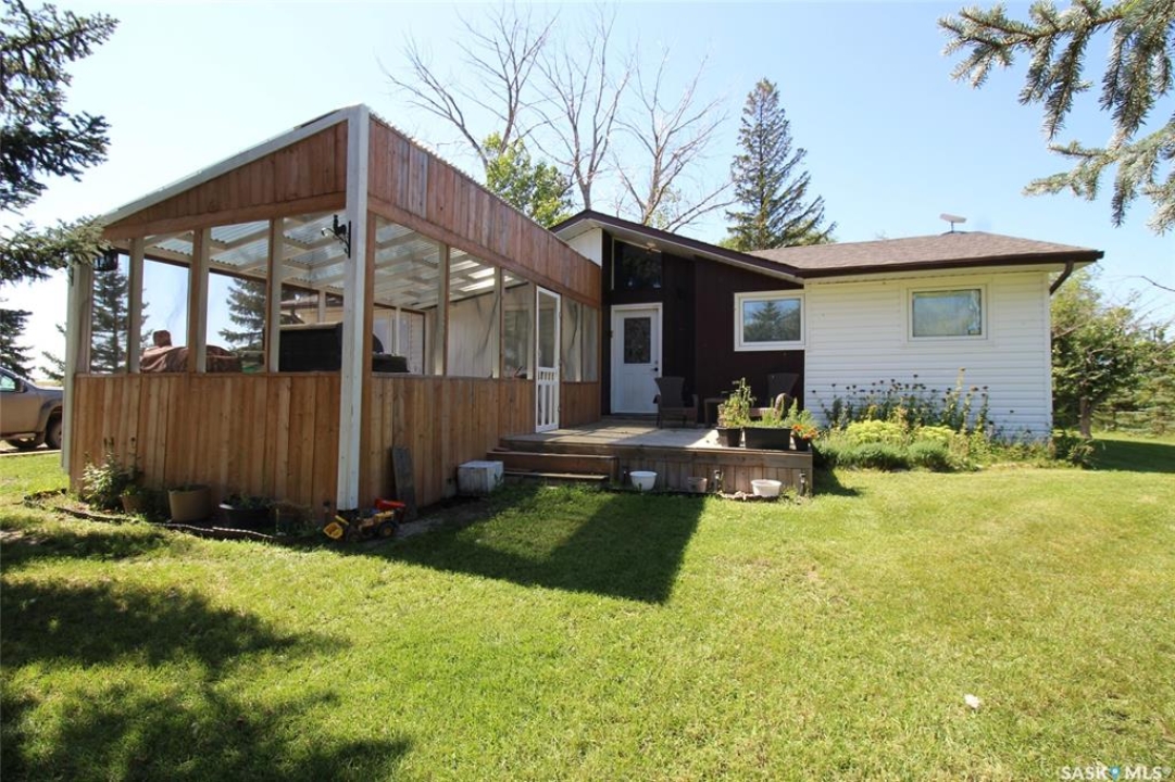 Nestled on 13.25 acres in the RM of White Valley, just 10 km from Eastend, this 3-bedroom, 1-bath bungalow offers the perfect blend of space, comfort, and prairie views. Step onto the welcoming screened front deck, ideal for morning coffee or evening sunsets, and into the heart of the home. The spacious living room is filled with natural light from a huge picture window and features a cozy wood-burning fireplace for those cool Saskatchewan nights. The kitchen offers abundant cupboard space and generous counters, perfect for meal prep and family gatherings. Two bedrooms are located on the main floor, along with the bathroom and laundry room for convenient one-level living. A third bedroom is tucked away in the basement, providing extra privacy or guest space. With 13.25 acres to roam, there's plenty of room for a hobby farm, gardens, or simply enjoying the peace of country life—while still being close to the amenities of town.