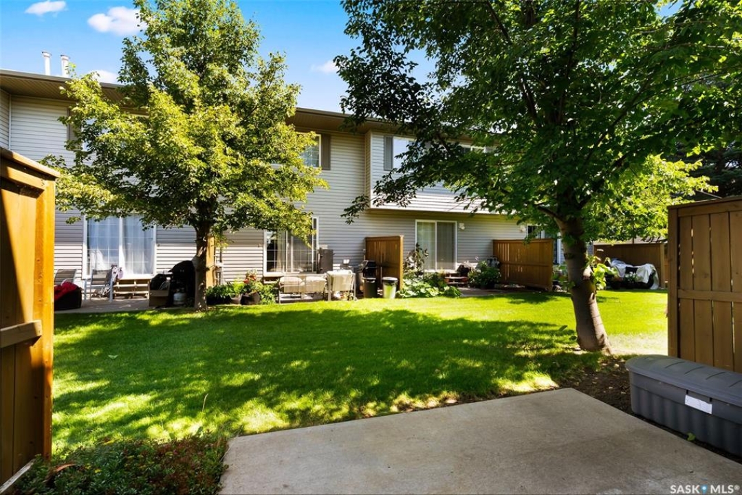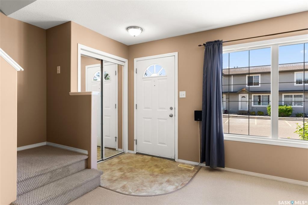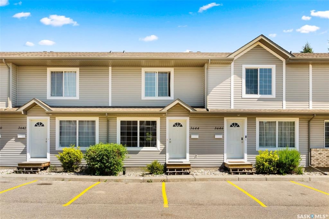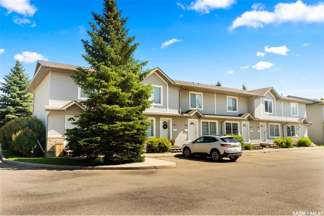 Welcome to this charming 2-bedroom townhouse-style condo in the desirable Parkridge neighborhood of Regina. The main floor offers a bright, semi-open concept layout with a spacious living room and a functional eat-in kitchen. From the kitchen, patio doors lead you to your own private patio—perfect for enjoying morning coffee or summer BBQs. Upstairs, you'll find two generously sized bedrooms and a full 4-piece bathroom. The undeveloped basement is ready for your personal touch, complete with laundry and rough-in plumbing for a future bathroom. This home includes two convenient parking spaces right out front, reasonable condo fees, and excellent access to all of Regina's east-end amenities, including shopping, dining, and parks. Whether you're a first-time buyer, downsizing, or investing, this property is a fantastic opportunity.
