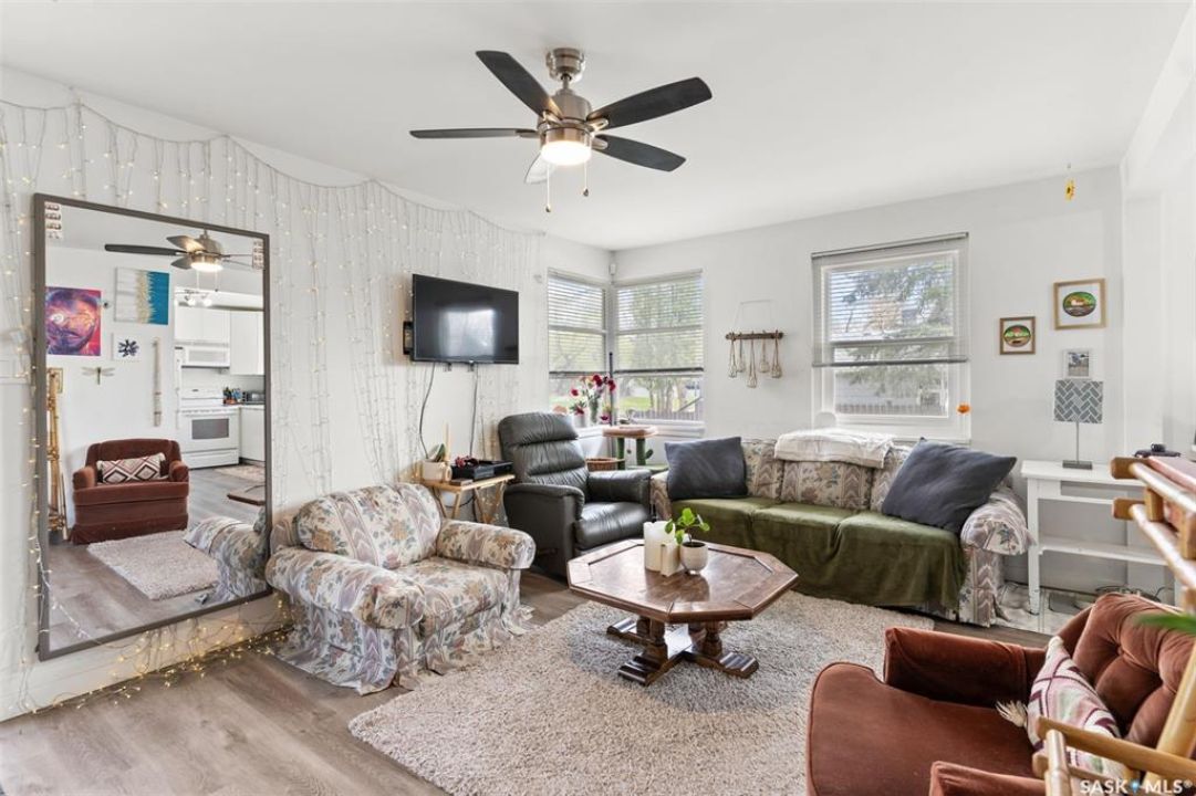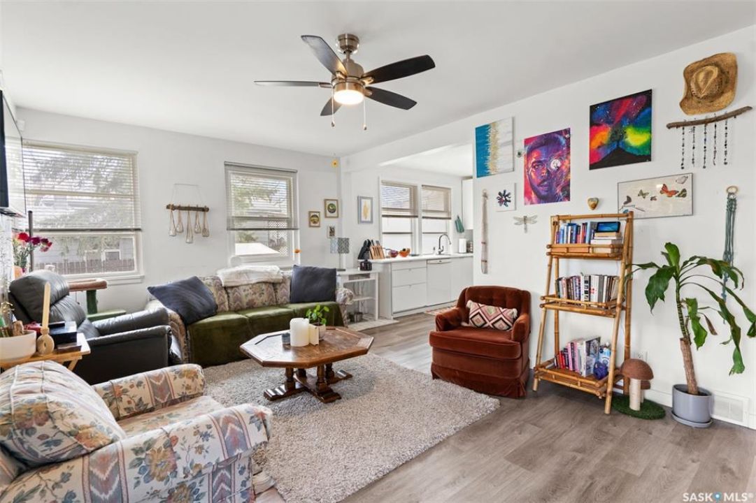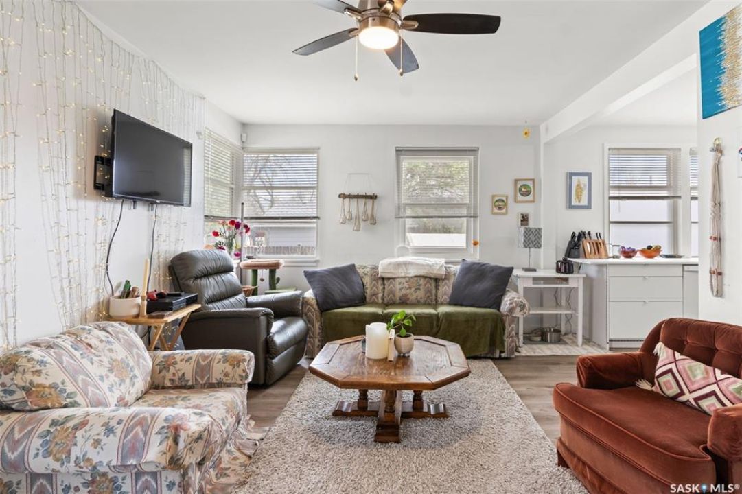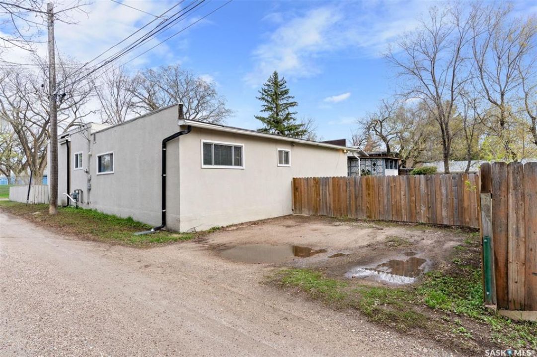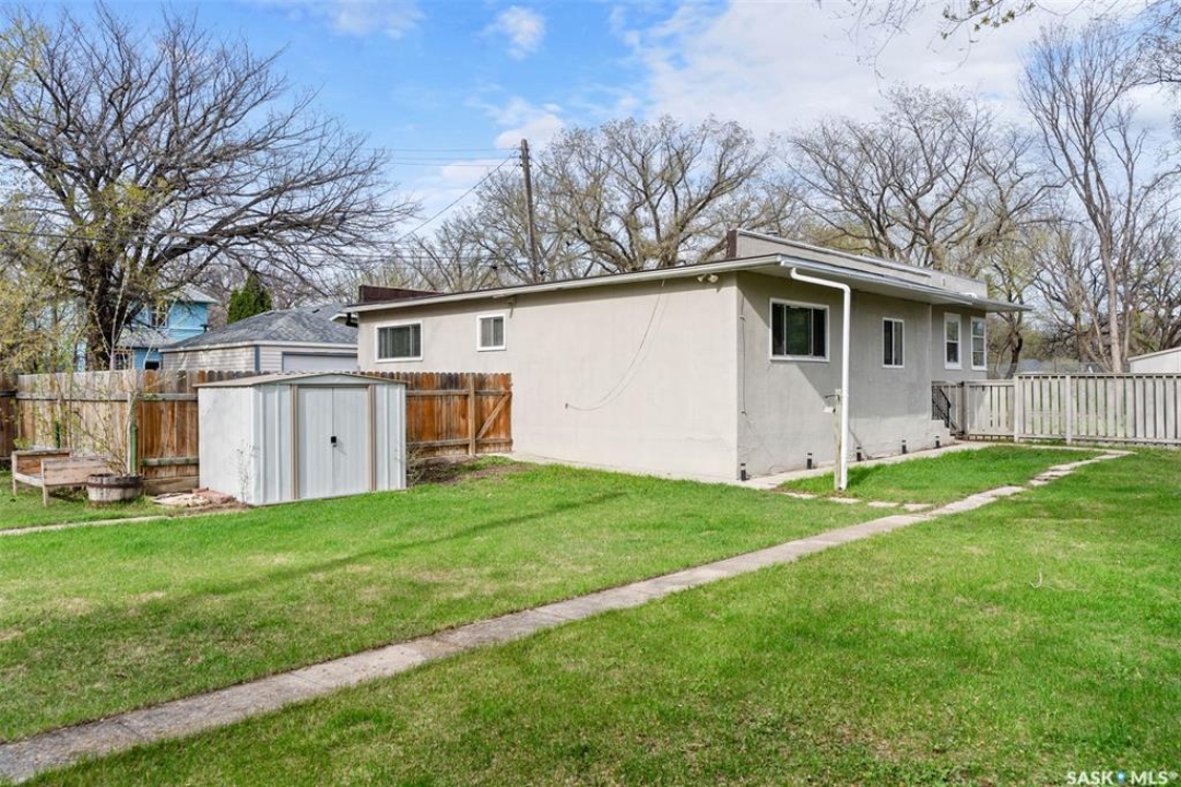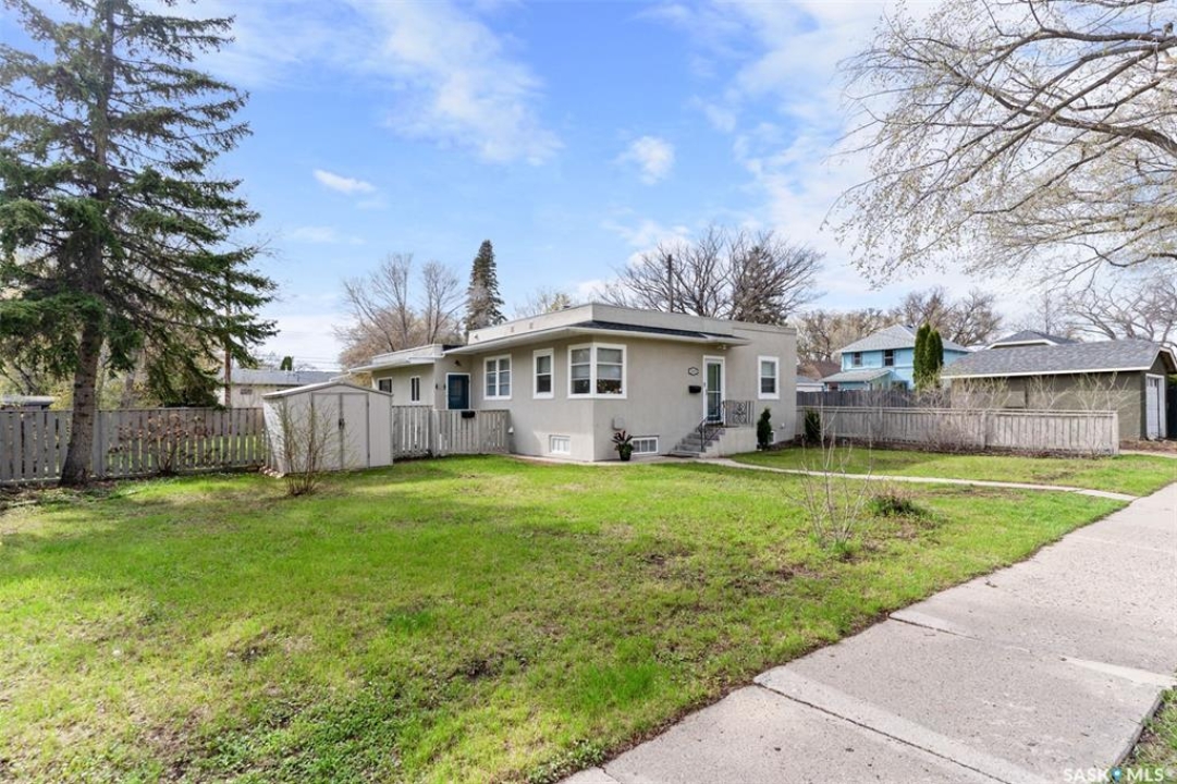 Welcome to your ideal investment opportunity in the heart of Caswell Hill! This LEGAL two-unit bungalow offers comfortable living spaces but also remarkable potential for future development with potential to develop the EMPTY 25' Lot! Situated on a spacious lot boasting a 75-foot frontage w/ house currently on only 2 of the three numbered 25' lots, this property presents the rare opportunity to subdivide or build another home, all while enjoying the prime location right across from Mayfair Pool and the off-leash dog park. The main residence, updated in 2020, has a practical layout. With 2 bedrooms and 1 bathroom upstairs, it offers a living room and kitchen area. The lower level adds with a third bedroom, family room, laundry facilities, and ample storage space, and utility room. Recent updates include an IKEA kitchen, durable vinyl plank flooring, three new PVC windows and a refreshed bathroom featuring a new vanity, toilet, and acrylic tub. The secondary unit, renovated in 2017, new flatroofing as of June 2025, mirrors the same attention to detail and comfort. Boasting 2 bedrooms, 1 bathroom, a spacious living room, and a well-maintained kitchen. Separate laundry facilities for both units. Both residences come equipped with ceiling fans featuring convenient remote controls, aluminum blinds for added privacy, and storage sheds for your outdoor essentials. Additionally, two off-street parking spaces are provided. This property offers endless possibilities. Its prime location, combined with the flexibility of three parcel numbers on a generous lot, makes it an exceptional investment prospect. Don't miss your chance to own this versatile property in Saskatoon's thriving real estate market. All measurements to verified by buyer