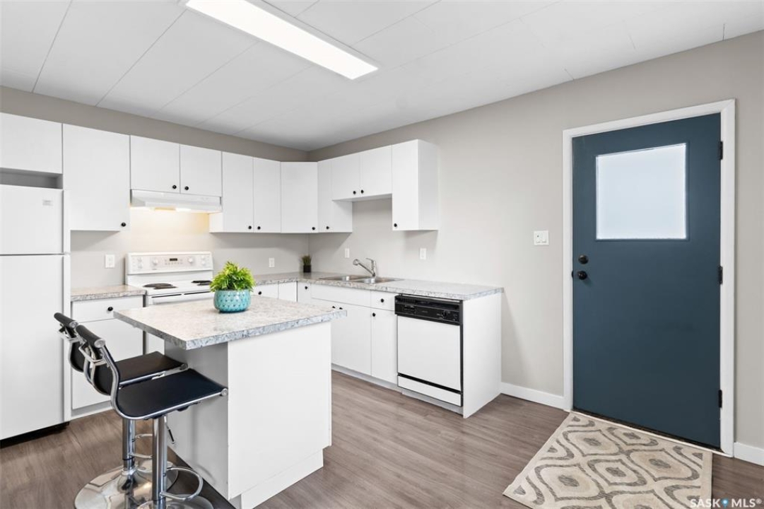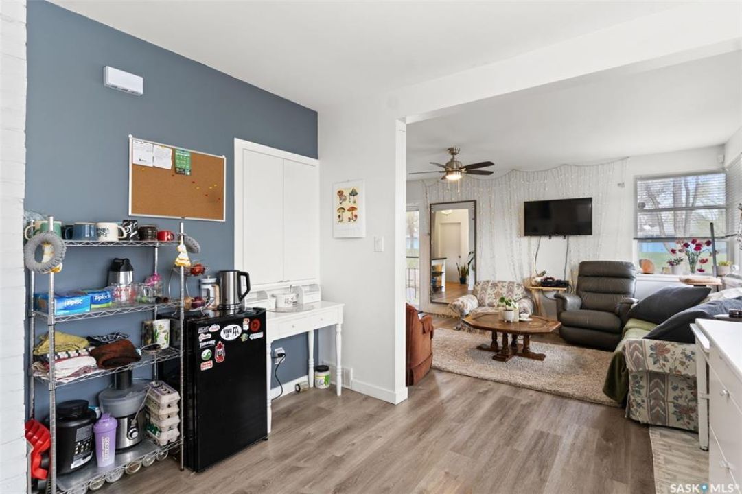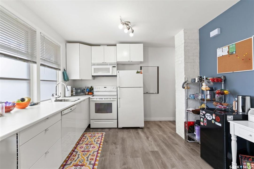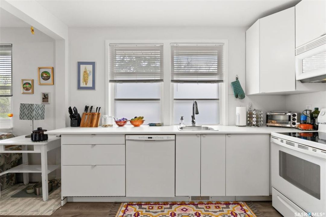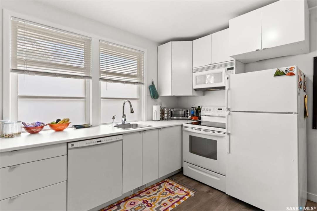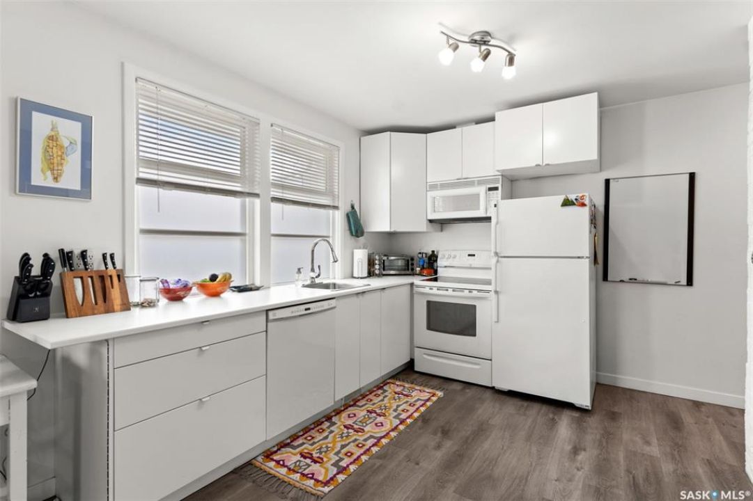 Welcome to your ideal investment opportunity in the heart of Caswell Hill! This LEGAL two-unit bungalow offers comfortable living spaces but also remarkable potential for future development with potential to develop the EMPTY 25' Lot! Situated on a spacious lot boasting a 75-foot frontage w/ house currently on only 2 of the three numbered 25' lots, this property presents the rare opportunity to subdivide or build another home, all while enjoying the prime location right across from Mayfair Pool and the off-leash dog park. The main residence, updated in 2020, has a practical layout. With 2 bedrooms and 1 bathroom upstairs, it offers a living room and kitchen area. The lower level adds with a third bedroom, family room, laundry facilities, and ample storage space, and utility room. Recent updates include an IKEA kitchen, durable vinyl plank flooring, three new PVC windows and a refreshed bathroom featuring a new vanity, toilet, and acrylic tub. The secondary unit, renovated in 2017, new flatroofing as of June 2025, mirrors the same attention to detail and comfort. Boasting 2 bedrooms, 1 bathroom, a spacious living room, and a well-maintained kitchen. Separate laundry facilities for both units. Both residences come equipped with ceiling fans featuring convenient remote controls, aluminum blinds for added privacy, and storage sheds for your outdoor essentials. Additionally, two off-street parking spaces are provided. This property offers endless possibilities. Its prime location, combined with the flexibility of three parcel numbers on a generous lot, makes it an exceptional investment prospect. Don't miss your chance to own this versatile property in Saskatoon's thriving real estate market. All measurements to verified by buyer