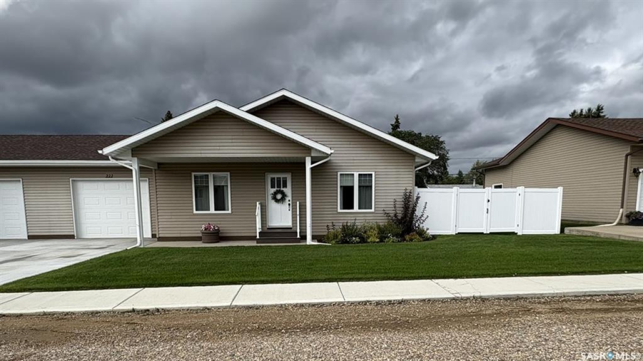 Opportunities like this don't come along very often. Brand new in 2023 and almost 1300sq.ft, on a quiet street in a lovely village and so tastefully finished, this half-duplex has everything you need on one level and could be easily converted to wheelchair accessible. It has an attached heated garage, 2 spacious bedrooms, an open concept great-room with a beautiful gas fireplace and automatic blinds on the windows. There's a large walk-in shower in the walkthrough bathroom, a sheltered backyard patio, and the large backyard with plush turf has enough room for a garden and shed if you wish. Comes with a Generlink generator for peace of mind in case of a power outage and air conditioning for the summer heat. Perfect for downsizing from a farm or retiring from the city, yet plenty of room for a family. Glaslyn has all the basic amenities, and is within 45 minutes of 3 different hospitals and 5 different lakes. Book your private tour today!