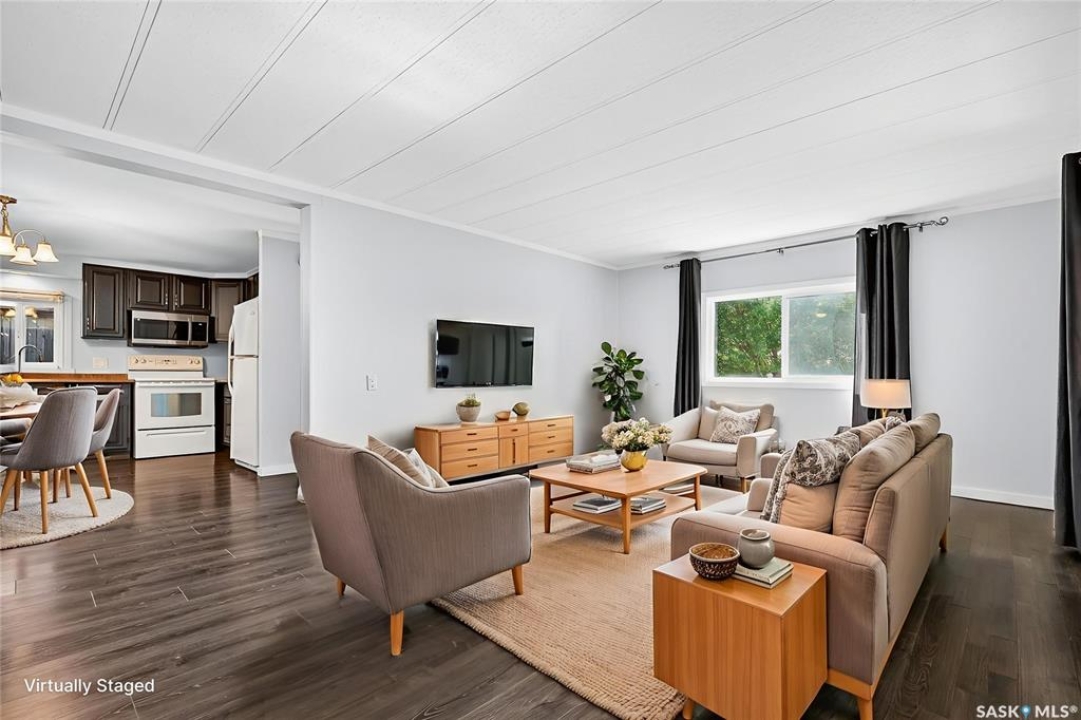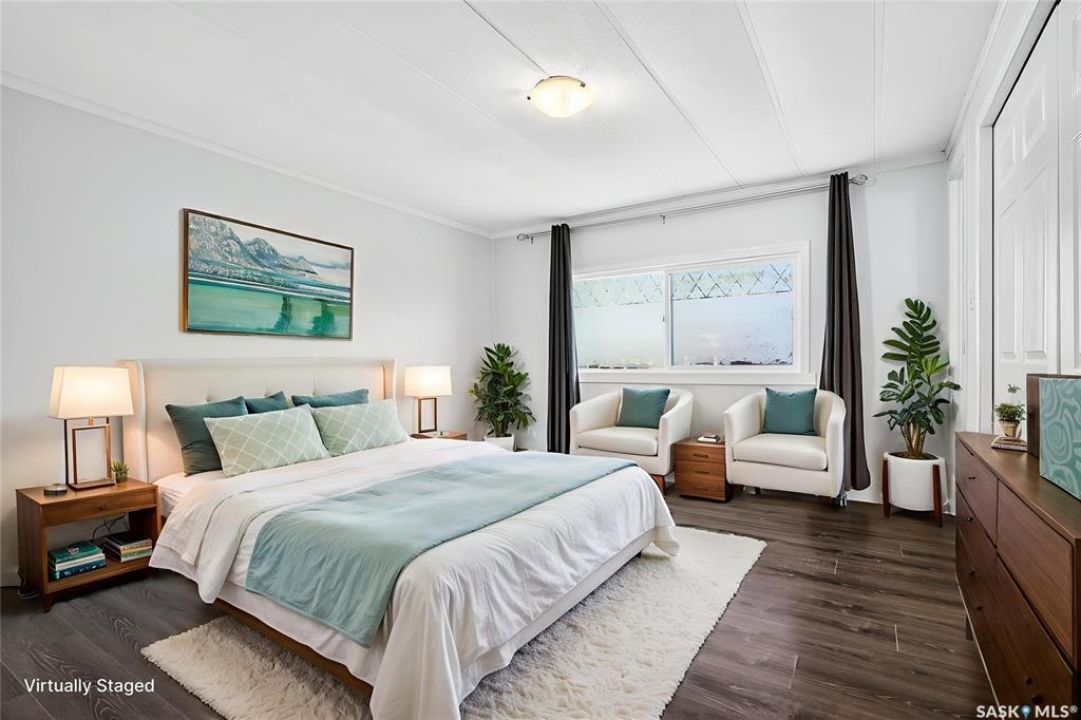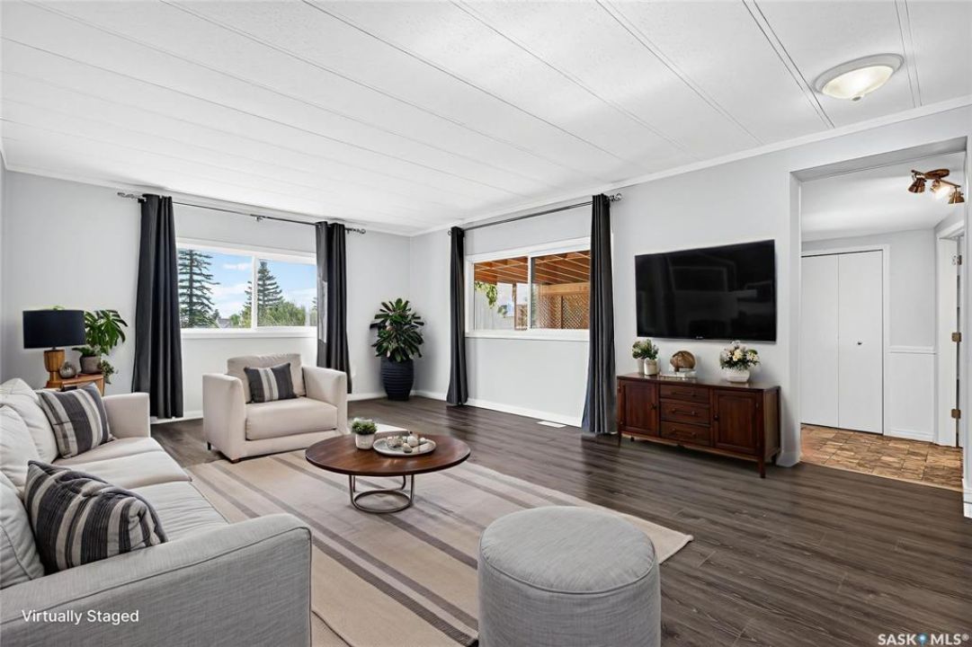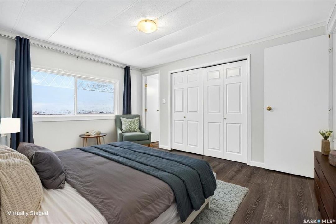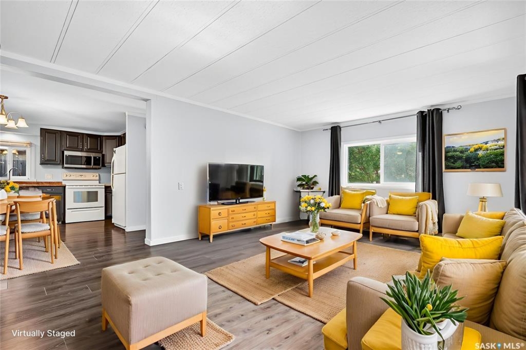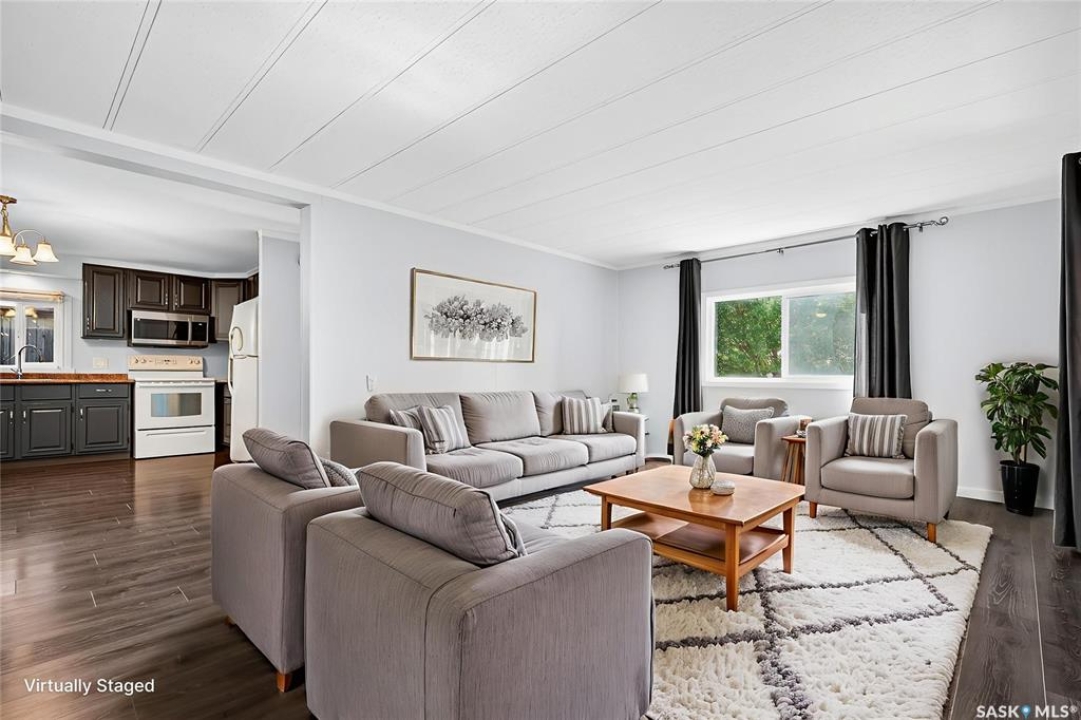 Are you looking for easy living? Look no further! This spacious double wide boasts over 1,400 sq.ft. of living space with 4 bedrooms and 2 bathrooms! Excellent curb appeal as you pull up and park on the double concrete driveway. You are greeted by a super cute covered deck - the perfect place for your morning coffee - that leads into a spacious mudroom with a walk-in pantry! You are sure to love the massive open concept living area! With a huge living room that gives you space for a formal dining table! The large kitchen boasts lots of cabinet space and has a laundry space! Down the hall we find 3 spacious bedrooms and an updated 4 piece bathroom! The primary suite is very spacious and has a 2 piece ensuite and a large closet! The fourth bedroom is tucked off the front of the home and would make a great office. Heading outside we find a fully fenced backyard with a cute patio area - perfect place for the kids to play! If you are looking for easy living - look no further! Excellent value here! Quick possession available! Reach out today to book your showing!