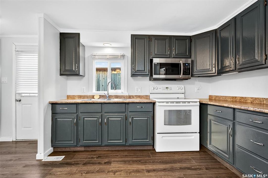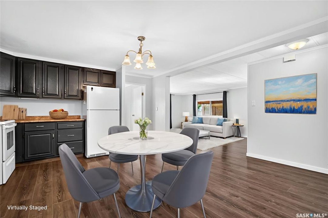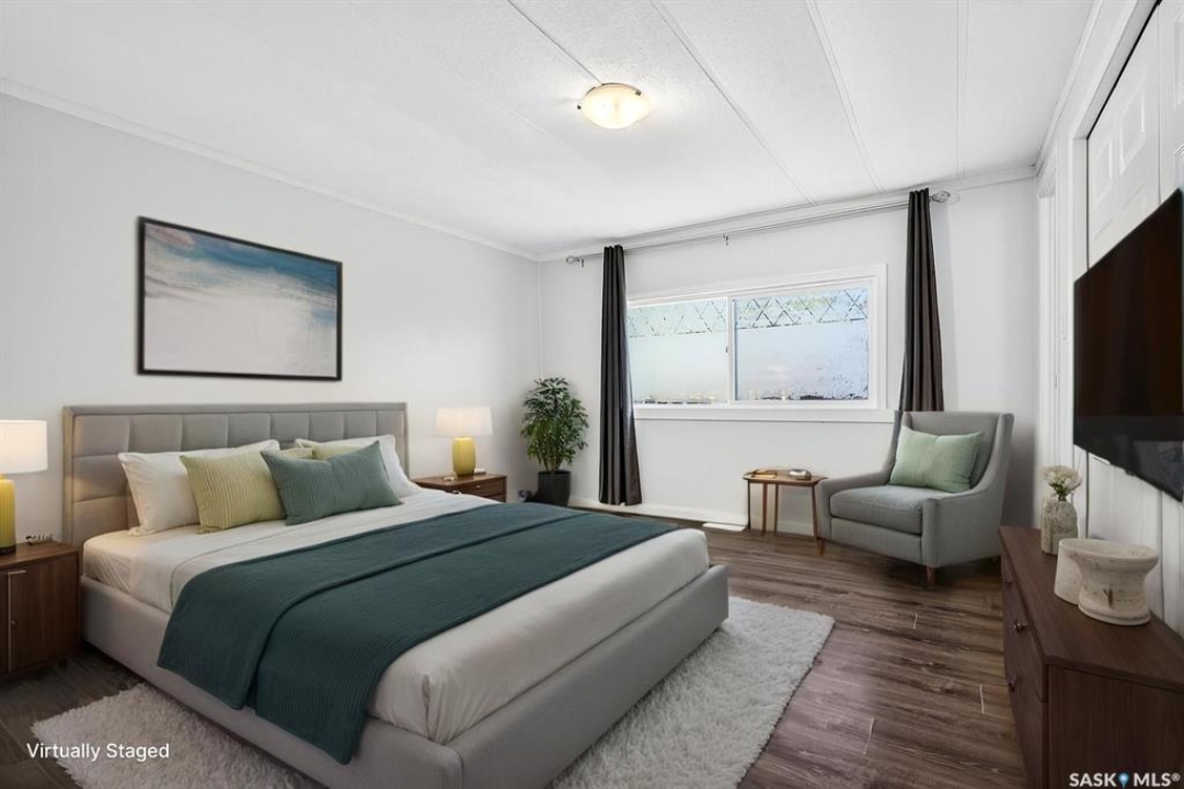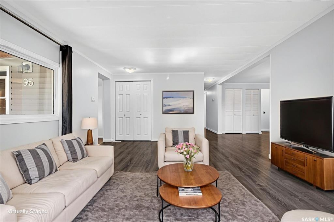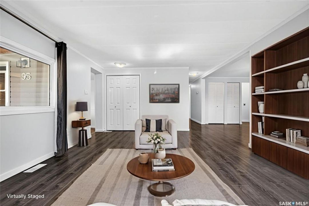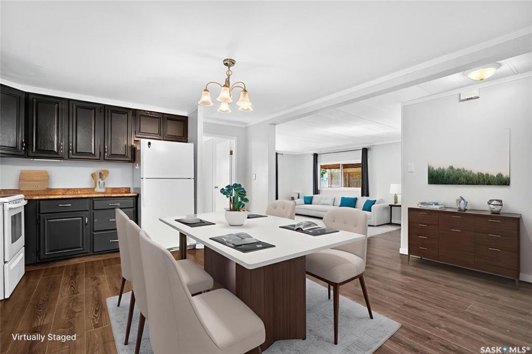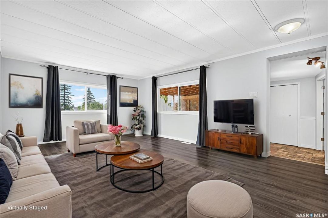 Are you looking for easy living? Look no further! This spacious double wide boasts over 1,400 sq.ft. of living space with 4 bedrooms and 2 bathrooms! Excellent curb appeal as you pull up and park on the double concrete driveway. You are greeted by a super cute covered deck - the perfect place for your morning coffee - that leads into a spacious mudroom with a walk-in pantry! You are sure to love the massive open concept living area! With a huge living room that gives you space for a formal dining table! The large kitchen boasts lots of cabinet space and has a laundry space! Down the hall we find 3 spacious bedrooms and an updated 4 piece bathroom! The primary suite is very spacious and has a 2 piece ensuite and a large closet! The fourth bedroom is tucked off the front of the home and would make a great office. Heading outside we find a fully fenced backyard with a cute patio area - perfect place for the kids to play! If you are looking for easy living - look no further! Excellent value here! Quick possession available! Reach out today to book your showing!