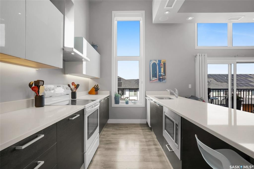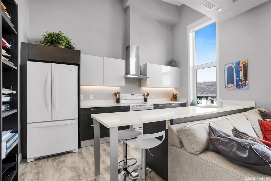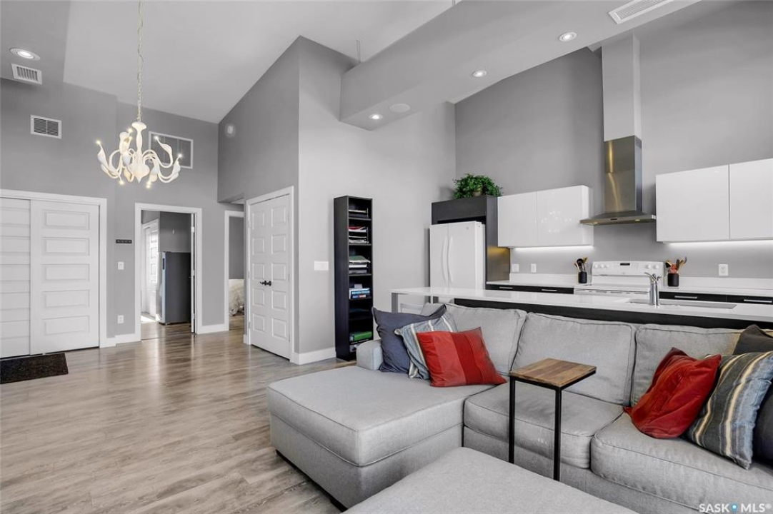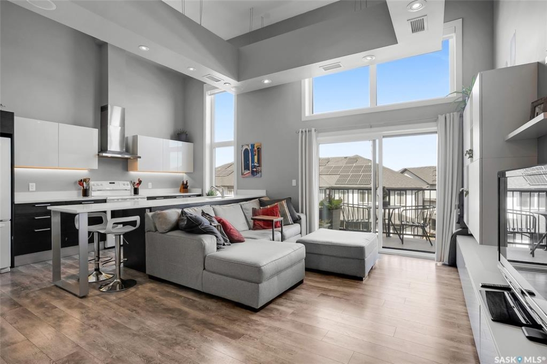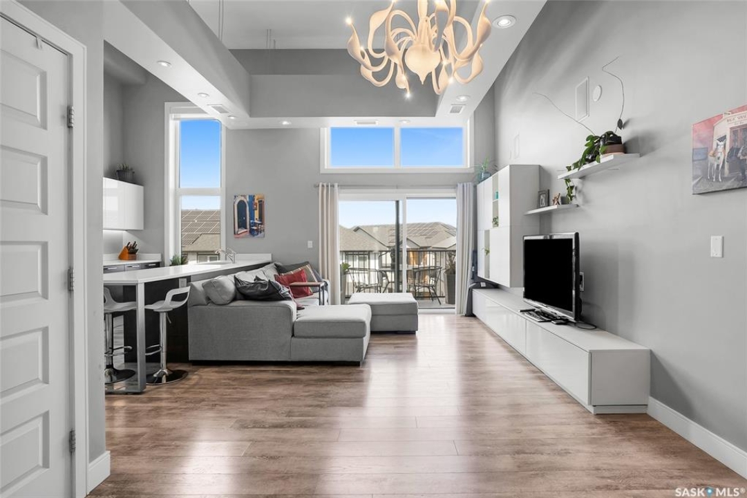 Welcome to a stunning top-floor condo in the coveted Willowgrove neighbourhood! This exquisite 2-bedroom plus 1-bathroom home boasts a spacious living room with soaring 13+' high ceilings and oversized windows that let in an abundance of natural light, making it the perfect spot for entertaining or relaxing watching the sunset after a long day. The modern open-style kitchen is a chef's dream, featuring all appliances and an extra-large island with stunning quartz countertops, making it perfect for hosting dinner parties. The high-end laminate flooring and marble tile throughout the home add to the luxurious feel. The master bedroom and the second bedroom are both generously sized, providing ample space for rest and relaxation. The ensuite laundry space ensures you'll never have to leave the comfort of your home to do laundry. But that's not all! This unit also comes with a large storage room (approximately 100 sqft) in the basement, complete with sturdy shelves, perfect for storing all your seasonal items. The location is unbeatable, with Convenience Store, Restaurant, Bakery and Hardware Store Below. Not to forget Willowgrove School, parks, and all amenities just a stone's throw away.