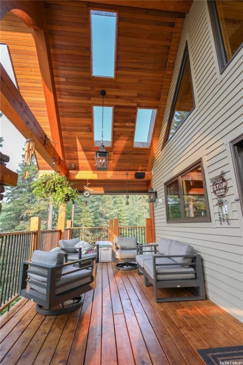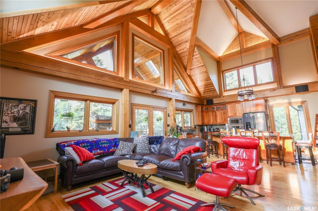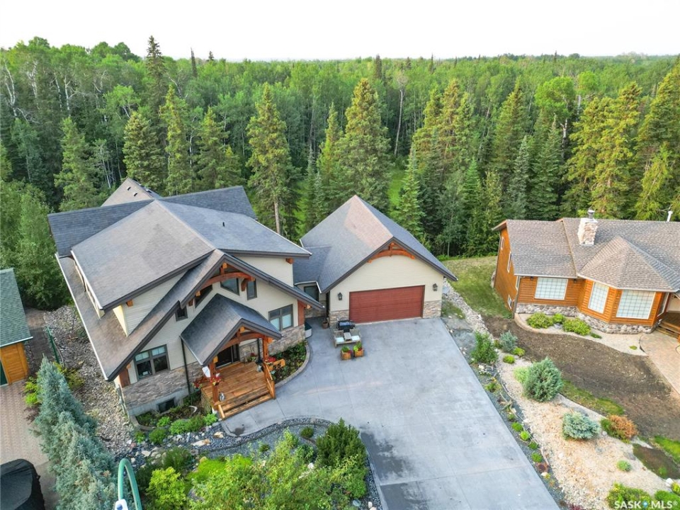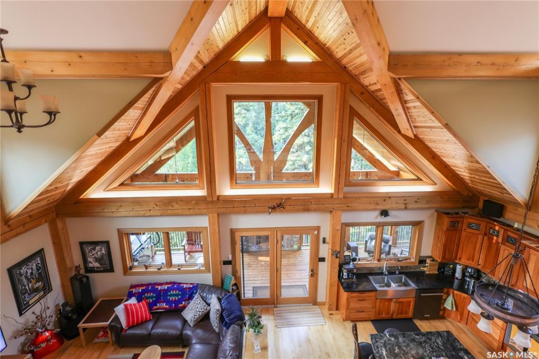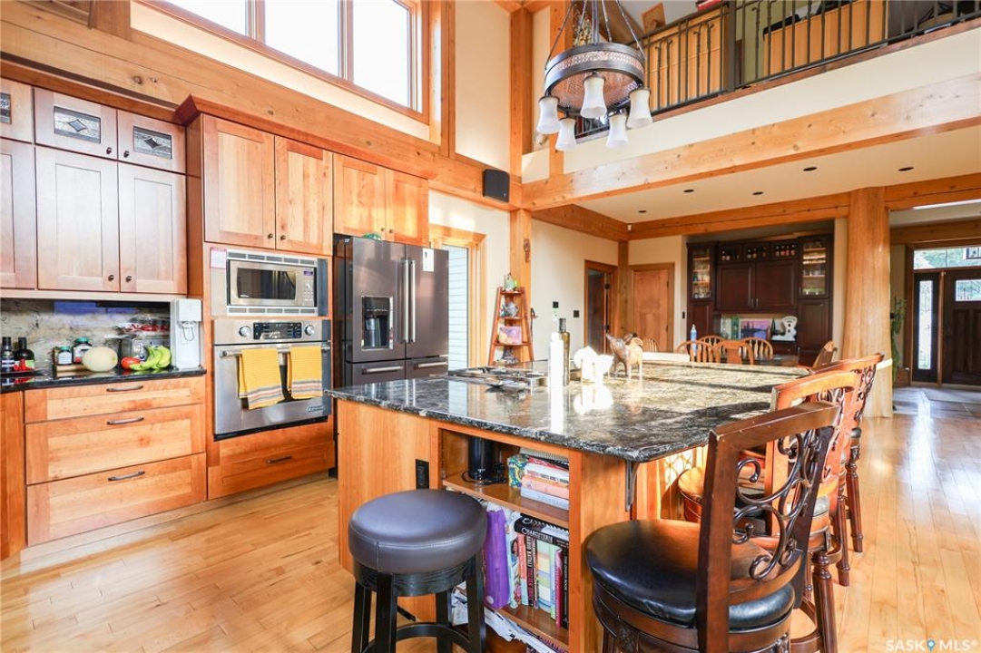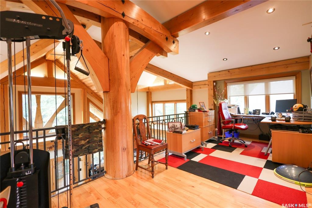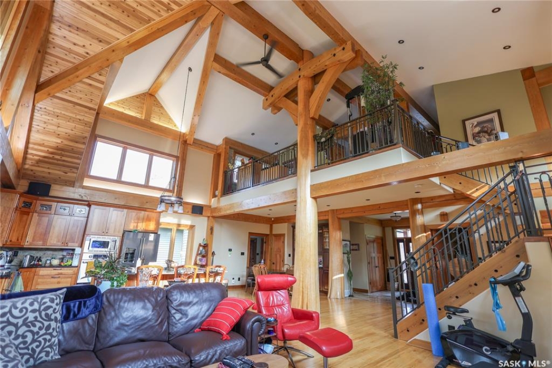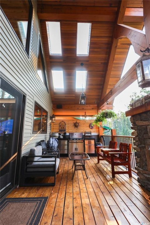 One of a kind custom log/post and beam open concept home constructed with old growth cedar timbers. Timeless décor includes travertine tile and hardwood floors, massive, exposed beams and timbers, custom iron railing and covered deck with gas burning fireplace and BBQ kitchen. Beautiful open concept chef's dream kitchen with granite island including large Wolf gas cooktop and Cherry custom cabinets. The vaulted loft is home to the primary bedroom with his and her walk-in closets, beautiful ensuite and plenty of extra room for an office or flex space. The downstairs boasts another 3 large bedrooms, a full bathroom, a mini garage for your golf cart and lots of extra storage space. Coming in from the oversize garage is a large mudroom, main floor laundry room and walk in panty. Extra features include boiler in floor heat (including the garage), spray foam insulation, central vacuum, and Generac generator.This yard is xeriscape for low maintenance and at the end of a quiet cul-de-sac. This truly is a must see home