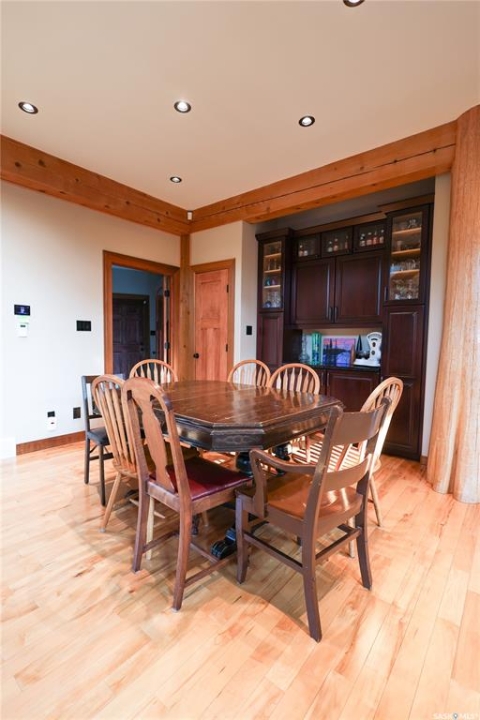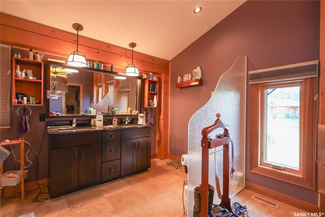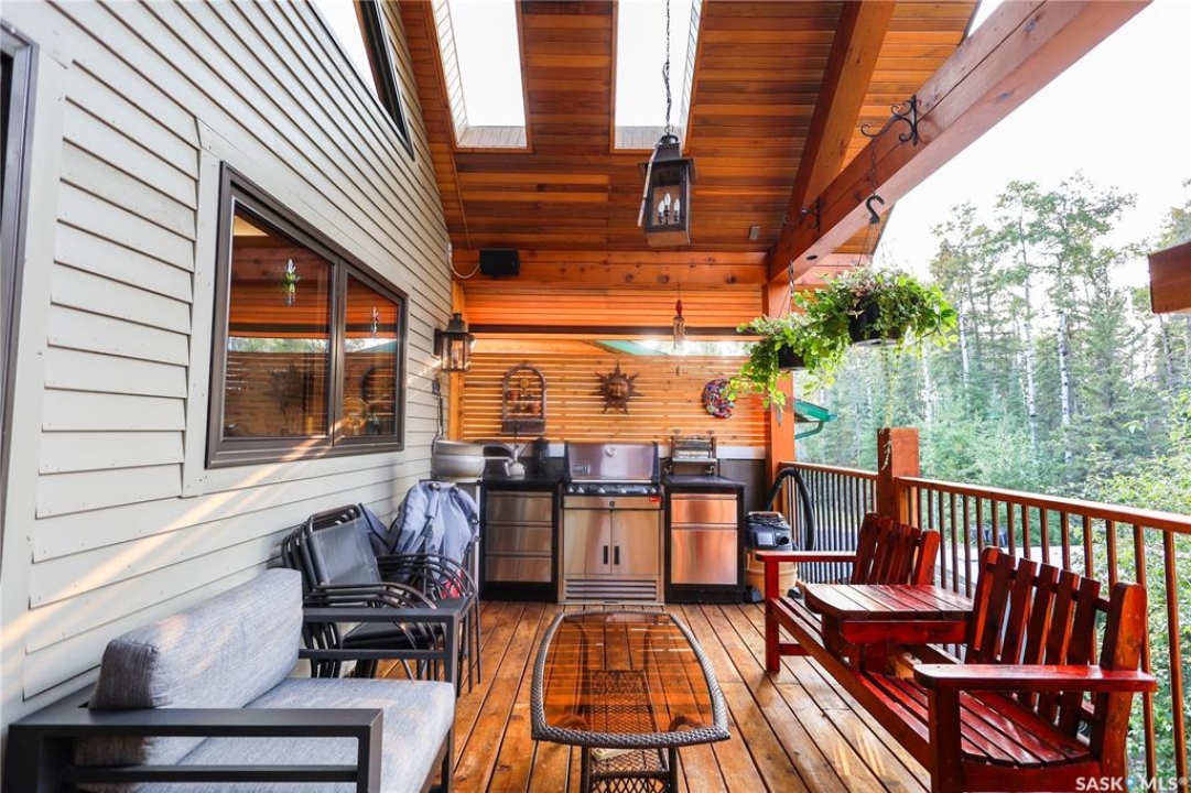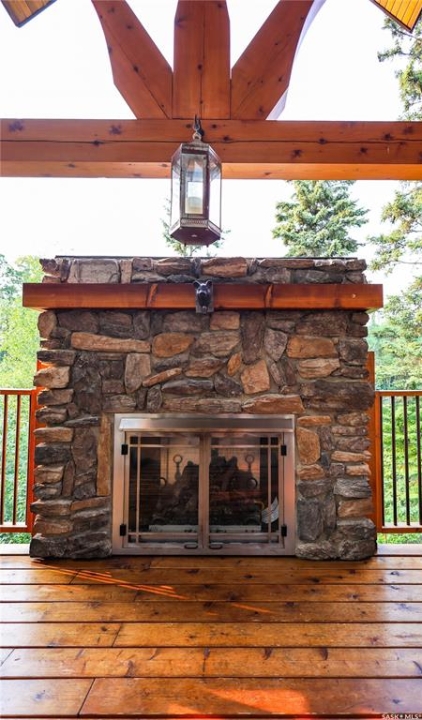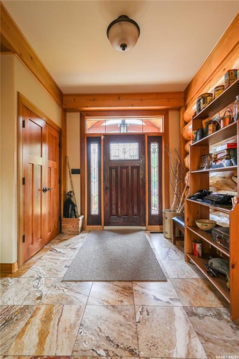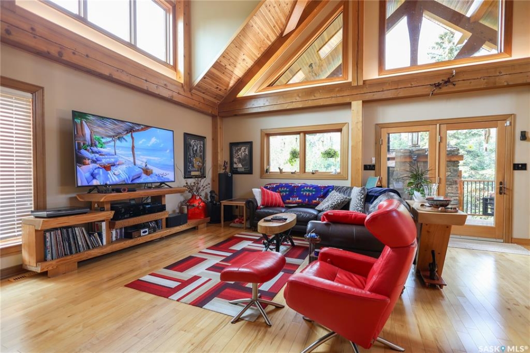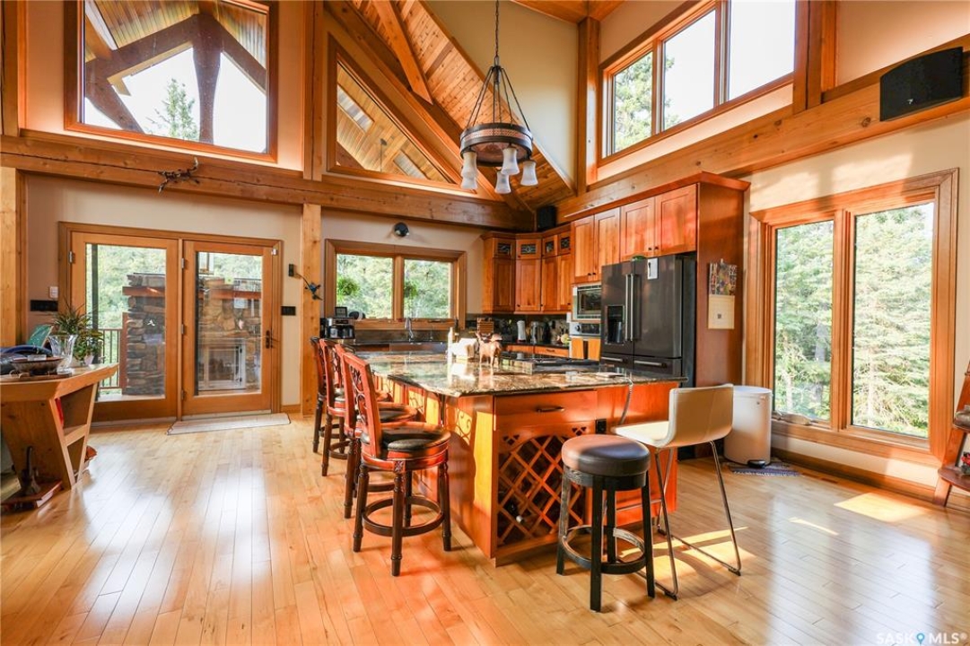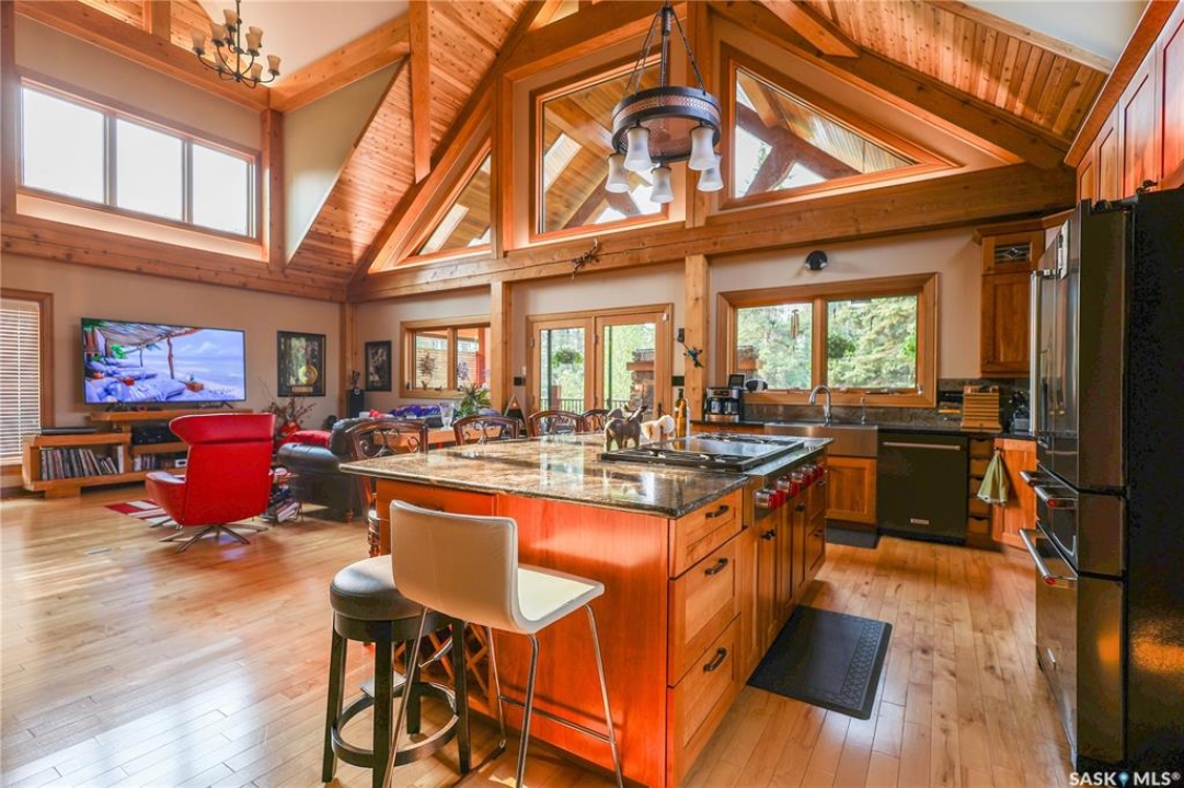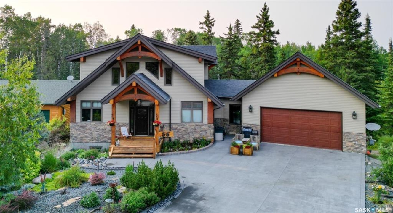 One of a kind custom log/post and beam open concept home constructed with old growth cedar timbers. Timeless décor includes travertine tile and hardwood floors, massive, exposed beams and timbers, custom iron railing and covered deck with gas burning fireplace and BBQ kitchen. Beautiful open concept chef's dream kitchen with granite island including large Wolf gas cooktop and Cherry custom cabinets. The vaulted loft is home to the primary bedroom with his and her walk-in closets, beautiful ensuite and plenty of extra room for an office or flex space. The downstairs boasts another 3 large bedrooms, a full bathroom, a mini garage for your golf cart and lots of extra storage space. Coming in from the oversize garage is a large mudroom, main floor laundry room and walk in panty. Extra features include boiler in floor heat (including the garage), spray foam insulation, central vacuum, and Generac generator.This yard is xeriscape for low maintenance and at the end of a quiet cul-de-sac. This truly is a must see home