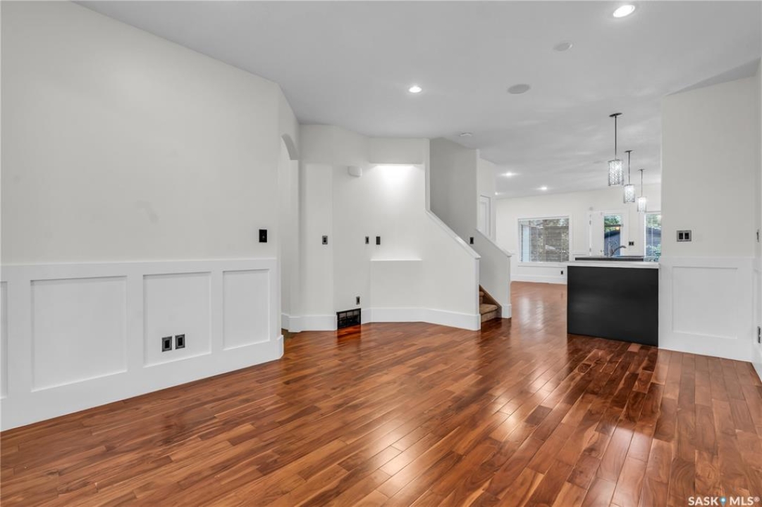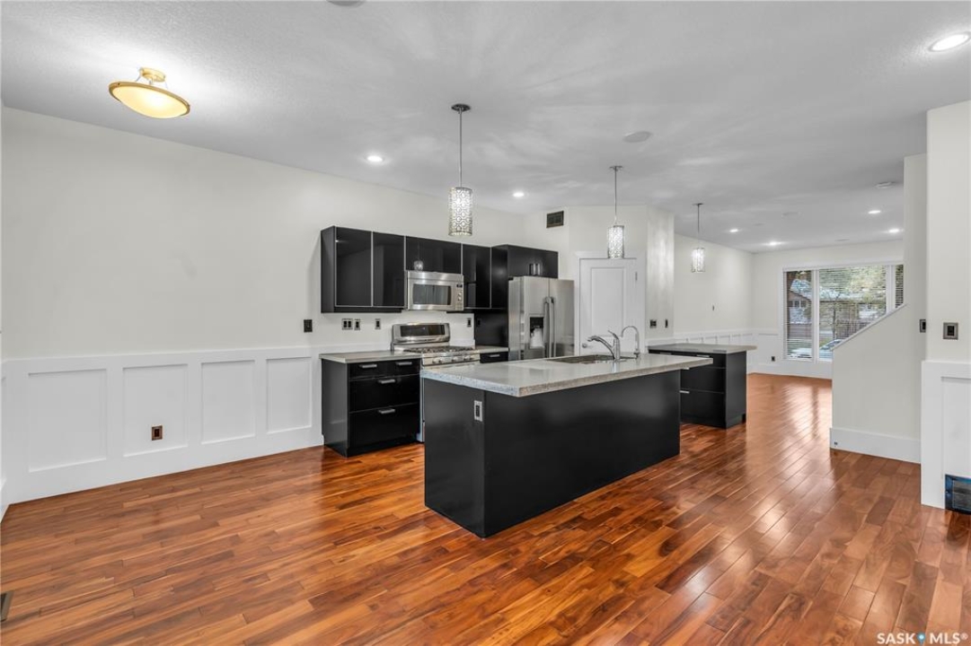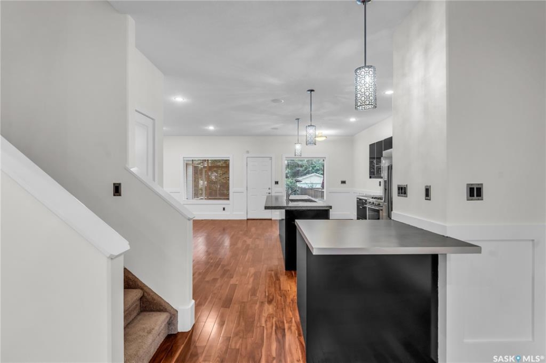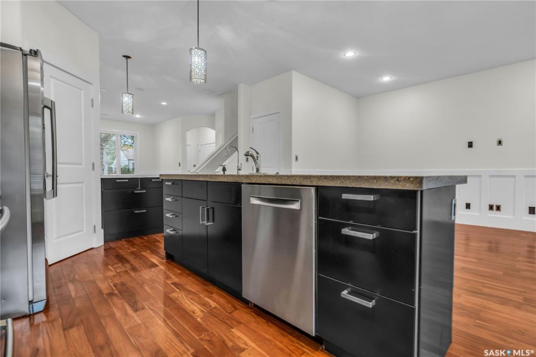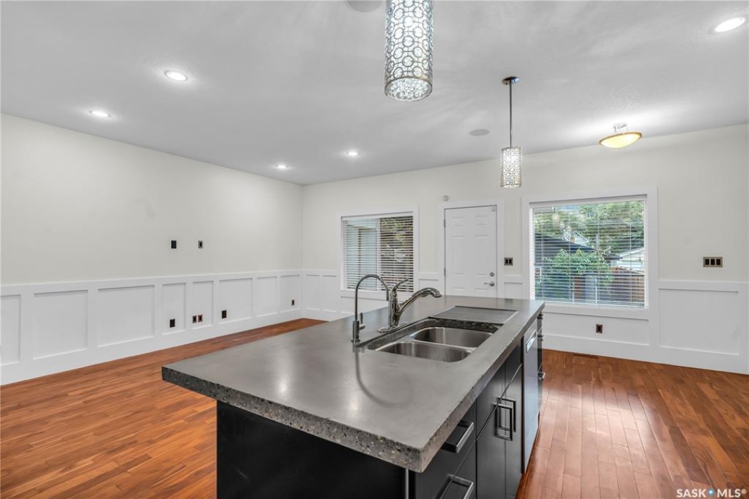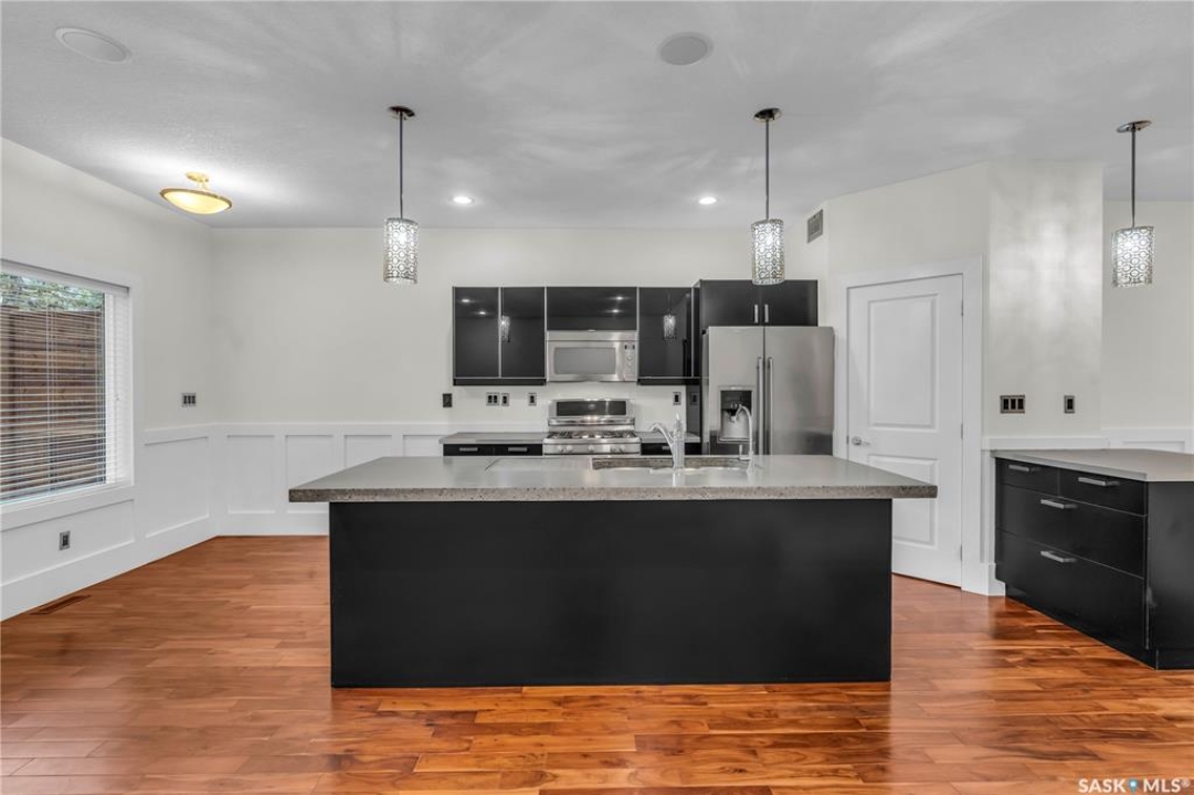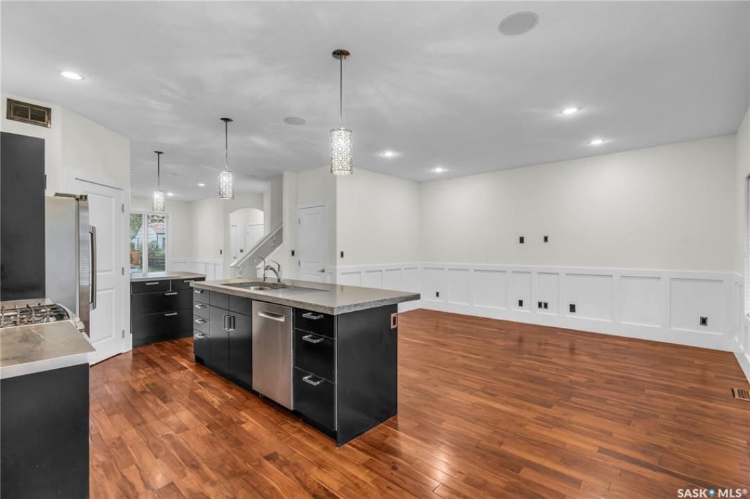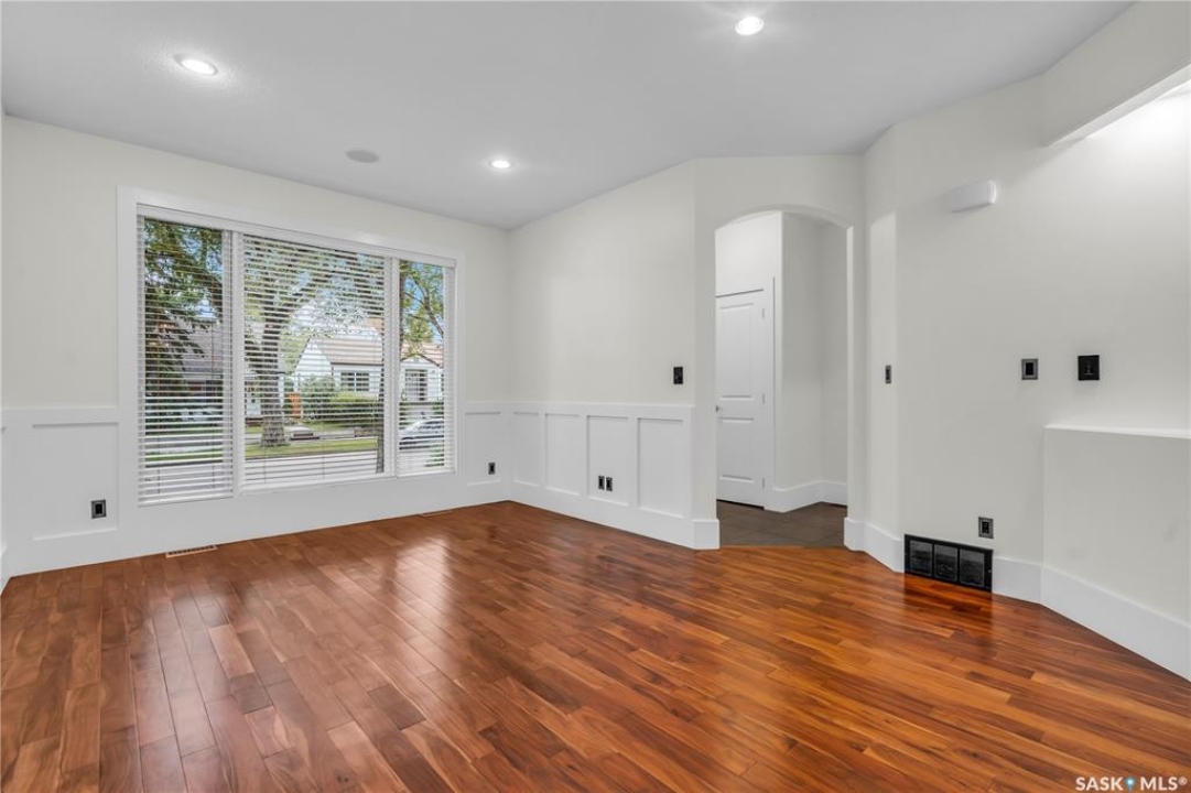Welcome to your perfect Haultain home. Located just steps away from desirable Broadway. Inviting street appeal with stone/ stucco exterior surrounded by beautiful trees. You are welcomed with spacious front entry and arch walkway leading you into main living space. Beautiful Walnut hardwood floors complimented by fresh crisp walls (professionally painted with scuffx). Exceptionally spacious dining area (perfect for entertaining) along with extra kitchen living space for whatever you desire. Modern kitchen with walk in pantry giving open concept but still lots of storage. Large windows throughout showcasing all the mature trees around. Second floor has lovely primary bedroom with vaulted ceilings, large walk in closet and spacious ensuite. Two additional bedrooms on this level with another full bath. Laundry room/hookup also located on 2nd level. Down to the basement level where you will find plenty of open space. Feature stone natural gas fireplace make for cozy evenings. Wide open area perfect for gym, play area, office or can be easily converted to additional bedrooms. Excellent laundry room with plenty of storage completely (separate from utility room) along with 4th bath. Outside you will love the sun room making for plenty of use in the shoulder seasons. Enjoy backyard ease with brand new glass railing, brand new fence and mature courtyard. Double detached garage with plenty of back ally space. Separate side entry giving option for suite. Furnace and air conditioner (5years old), newer Bosch washer/dryer and dishwasher, reverse osmosis, built in sound system with speakers throughout, smart thermostat, rubberized front walkway/steps and attic exhaust fan. Move in with no hassle in this fully finished infill home in the location you have always wanted. All amenities very close. *NOTE Corner homes beside are both being demolished and brand large single dwelling home being built :) View Today!