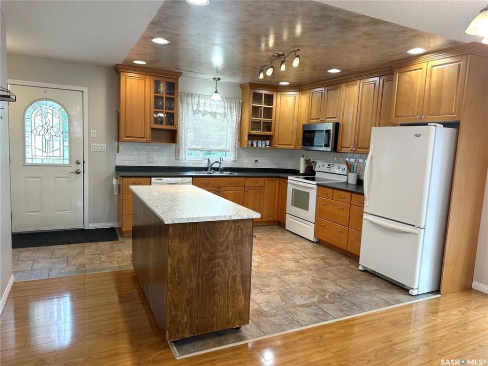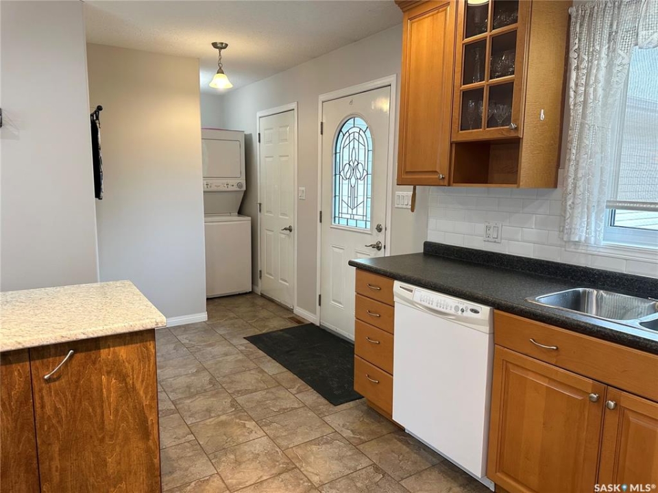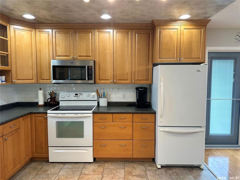 Well maintained 3BD, 2BA home in Spiritwood. This favorable floor plan is the perfect retirement home with no basement to look after, a well constructed crawl space, giving you peace of mind as well as easy to maintain and access through the garage. Some features include, central A/C, deck facing south and west, garden doors off the dining room, landscaped/mature yard, garden area, stackable washer/dryer, fireplace, and an attached heated garage. This home is move in ready and comes with all appliances.
