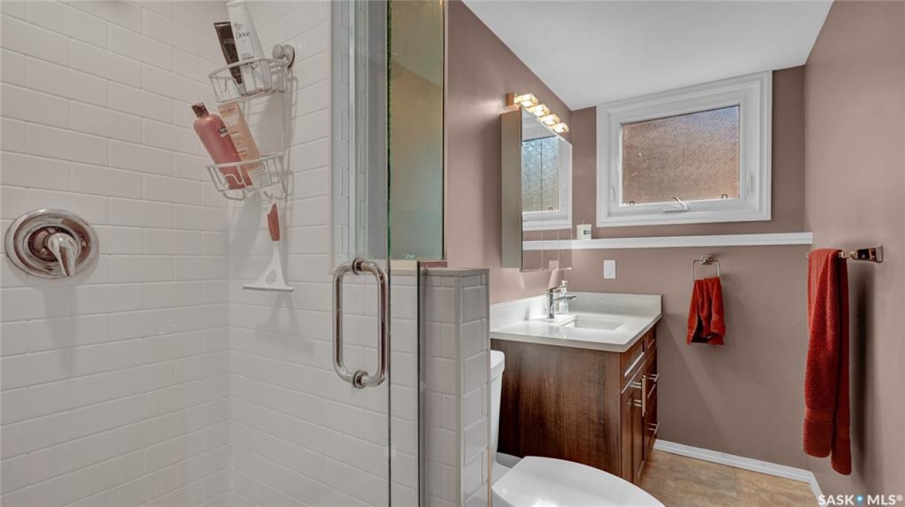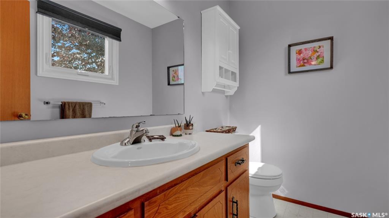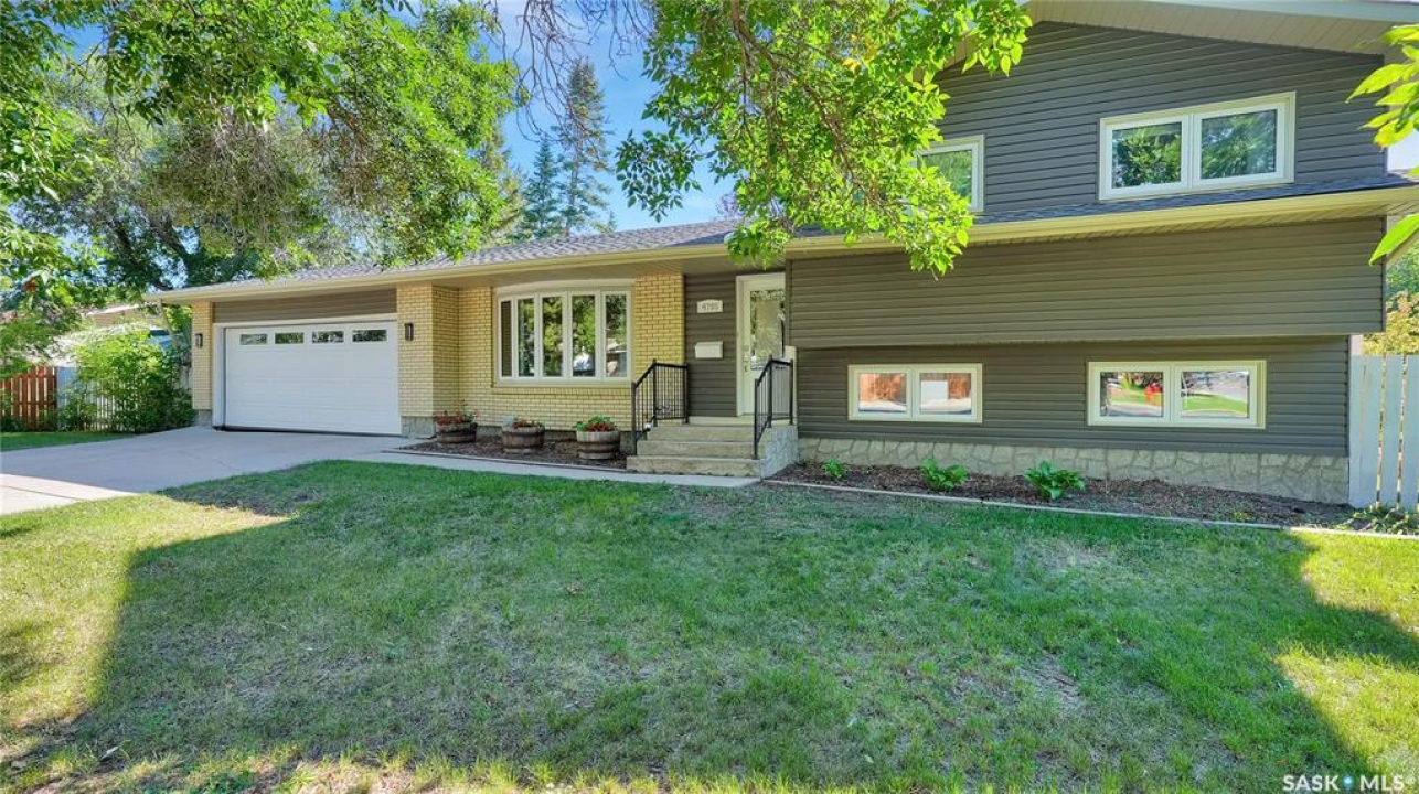 Great location in Albert Park for this four bedroom home located close to elementary school and south end shopping and restaurants. Spacious living room plus good size eat in kitchen. Three bedrooms upstairs with sun tunnel in full bathroom and half bath off primary bedroom. Nicely developed third level with gas fireplace in family room, 4th bedroom and 3/4 bathroom (2018). Basement is developed with recroom plus storage and furnace room. Oversized double garage (22' x 29'). Shingles replaced in 2019. New PVC windows in 2014 (except for basement window). Siding, eavestrough & facia done in 2015.