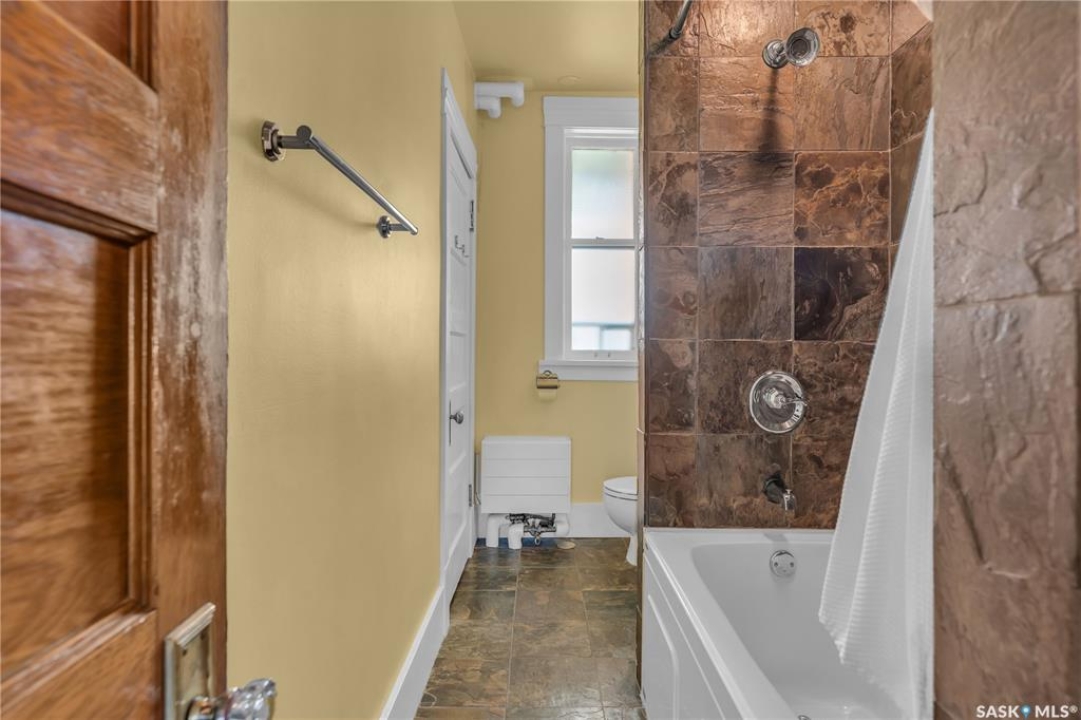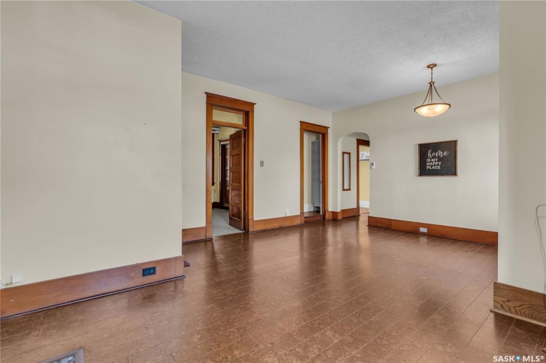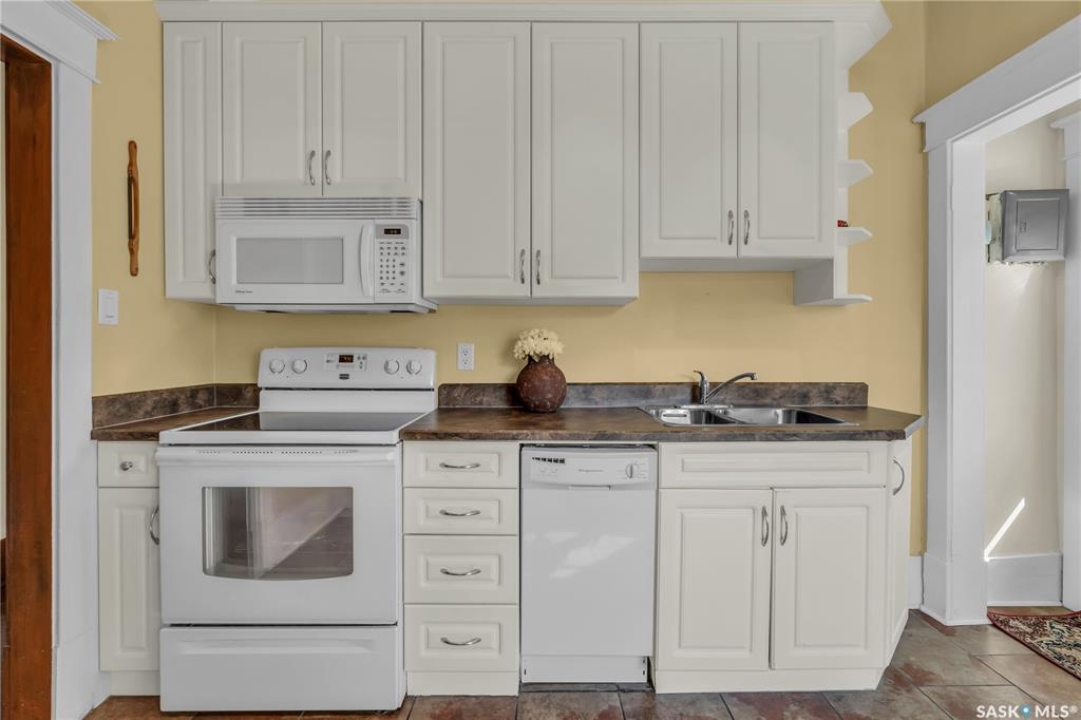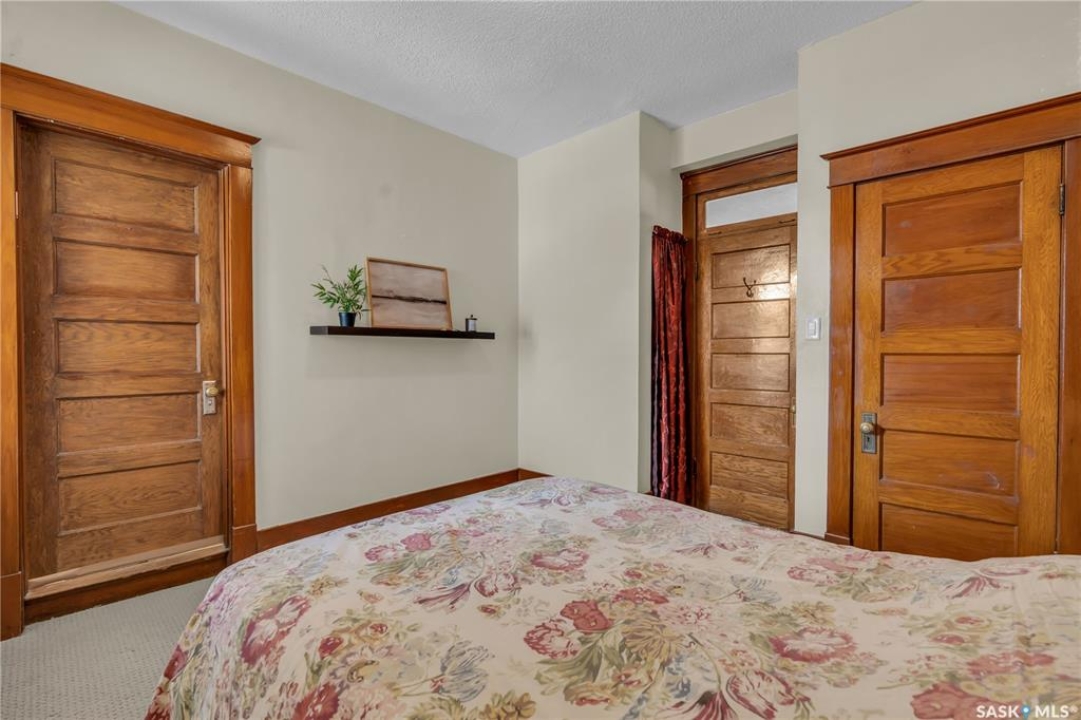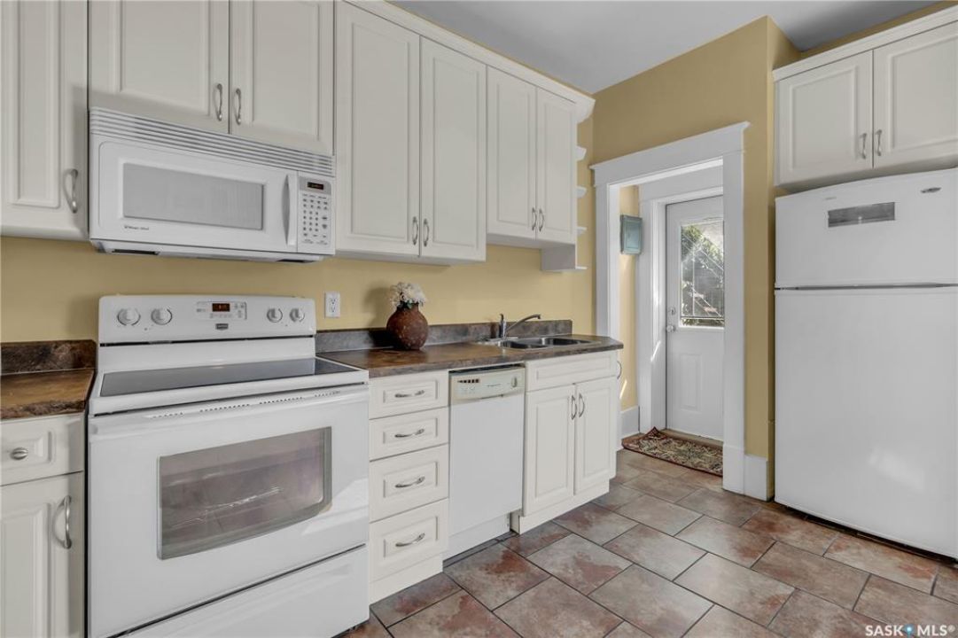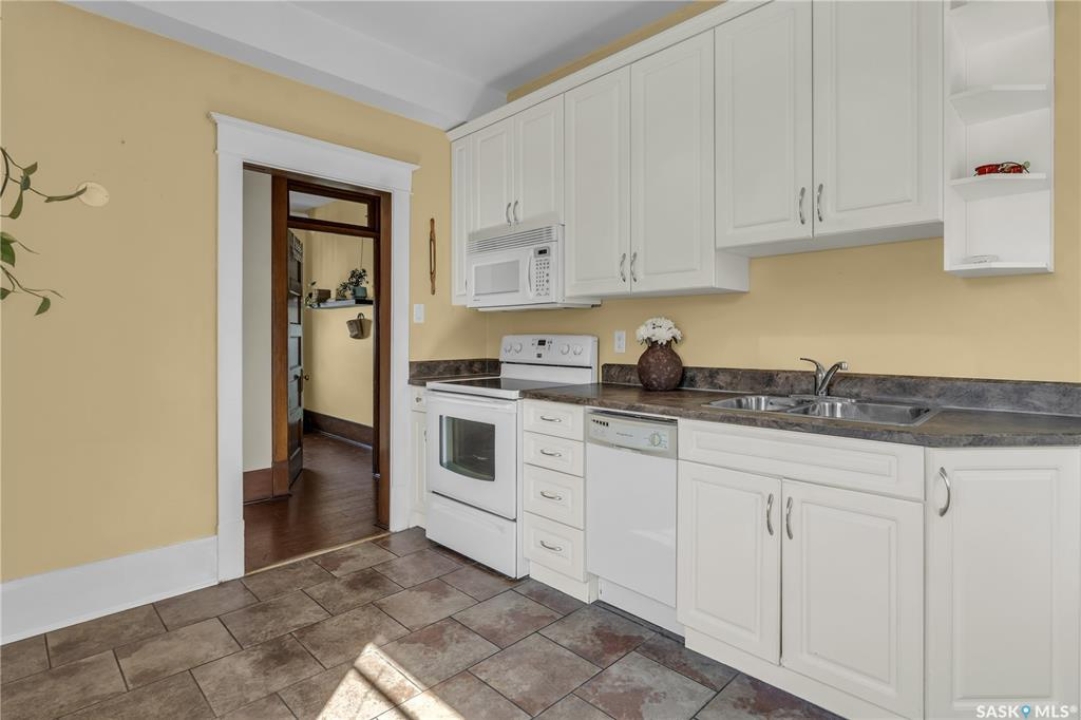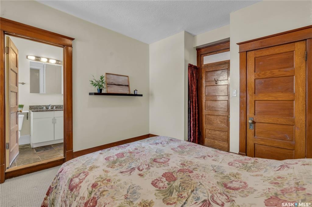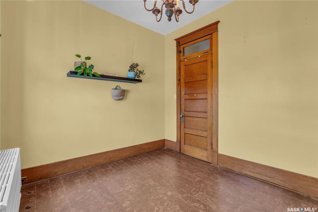 Welcome to this charming corner-unit condo located in the historic Bartleman Apartments, right in the heart of Regina's downtown. Step inside to an open-concept living and dining area where extra windows unique to the corner location fill the space with natural light, highlighting high ceilings and timeless details like original trim, tall baseboards, and classic doors. The space is anchored by a decorative fireplace and finished with cork flooring, adding both warmth and character. An archway leads to the kitchen and secondary bedroom, creating a beautiful flow between rooms. The bright white kitchen is tucked just off the main living space and offers plenty of cabinetry, counter space, and tiled flooring with room to add a coffee bar or buffet if desired, making it both functional and inviting. A garden door extends the living space outdoors to a patio surrounded by greenery, an ideal spot to enjoy your morning coffee or unwind at the end of the day. The primary bedroom offers plenty of room for a king-sized bedroom set and sits adjacent to the 4-piece bathroom. The bathroom features tiled flooring, a tiled shower/tub combo, a storage unit, and a convenient second entry from the main living area. A secondary bedroom off the main living area is complete with a beautiful chandelier and can serve as a home office, reading nook, or guest bedroom with the addition of a wardrobe. Parking is simple with one dedicated stall steps from the back entrance, plus plenty of street parking for guests. What makes this condo especially appealing is the lifestyle it offers. For downtown professionals, the location means you can walk to the office, stop at your favourite café, or head out to dinner without ever needing to drive. Wascana Park, The Museum, local favourites like Tangerine, Fireside Bistro, Niche Yoga & Therapy, and Leo's OG, plus the many shops along 13th Avenue, are all within walking distance. Move-in ready with quick possession available.