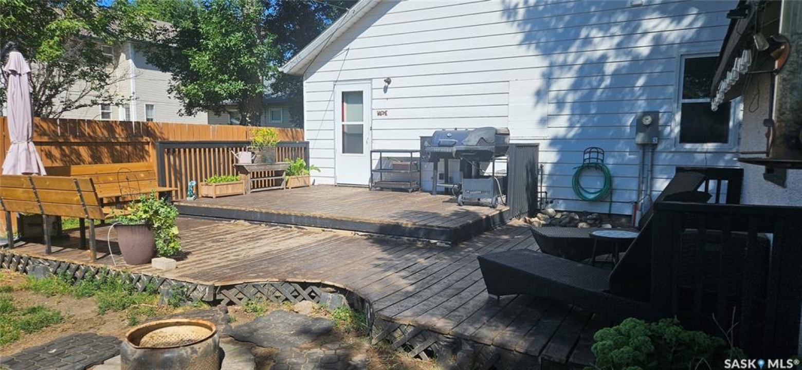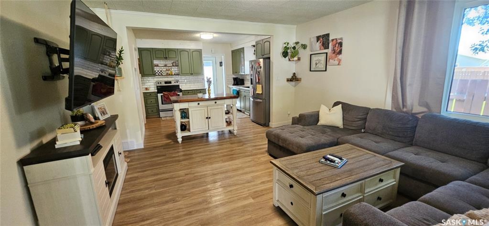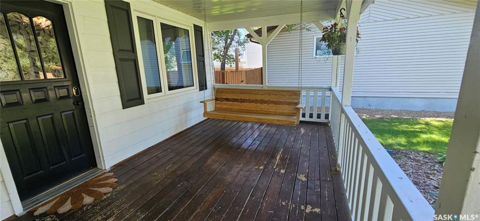 Tucked away on a quiet street and set back on an oversized lot, this home gives you modern updates with a warm country feel. The covered front veranda with a porch swing sets the tone for peaceful evenings and timeless curb appeal. Inside you will find an open concept living, dining and kitchen area with updated flooring throughout. The main floor features 2 bedrooms including a spacious primary suite with attached wardrobe, and a beautifully renovated 4- piece bath. Comfort is ensured year round with a newer furnace, central A/C, and on- demand hot water. The finished basement expands the living space with a large rec room, a third bedroom and another 4-piece bath. The backyard is designed for relaxing and entertaining on a large 2 tiered deck with built in seating and plenty of room to enjoy the outdoors. The fully fenced yard is perfect for kids and pets with the bonus of a workshop for projects or extra storage. This home offers style, space and a peaceful "country in the city" vibe. Call for more information or to book your personal tour.