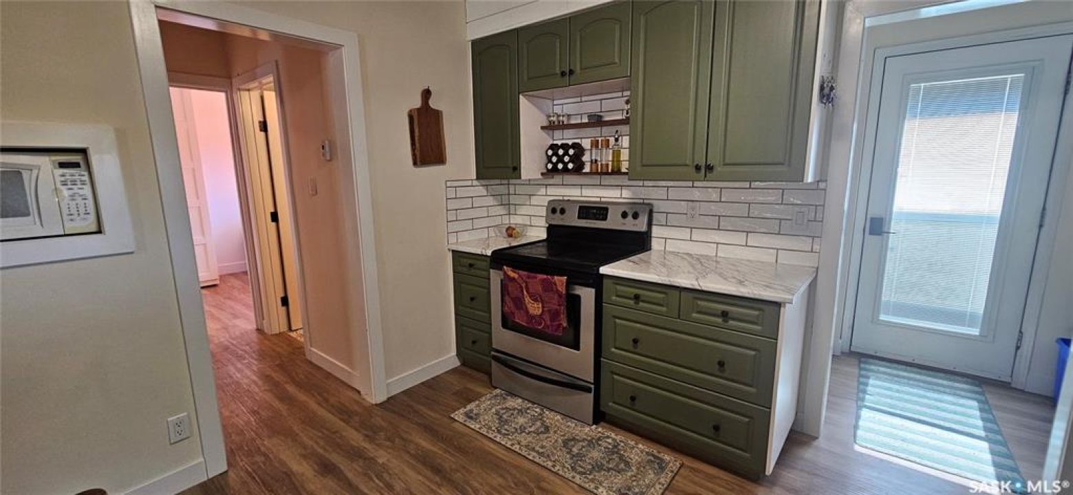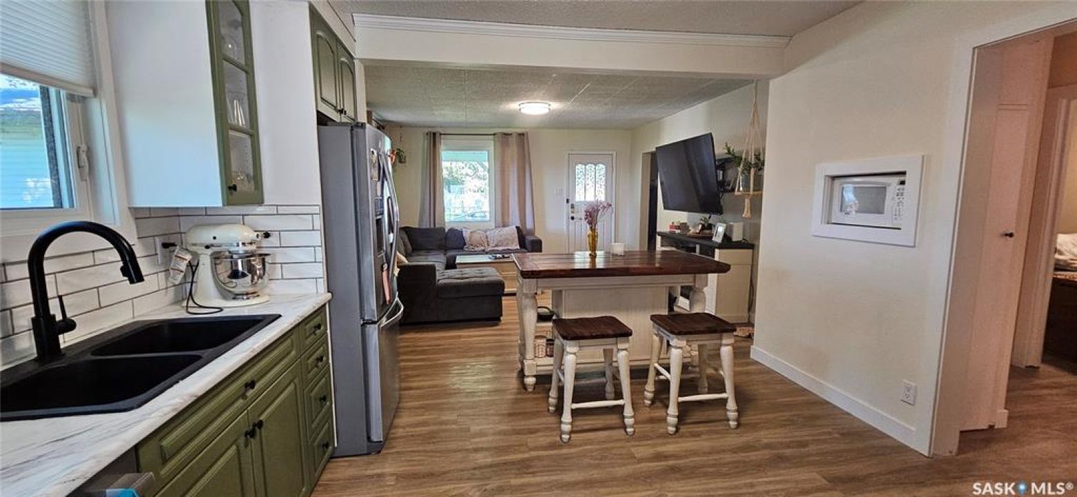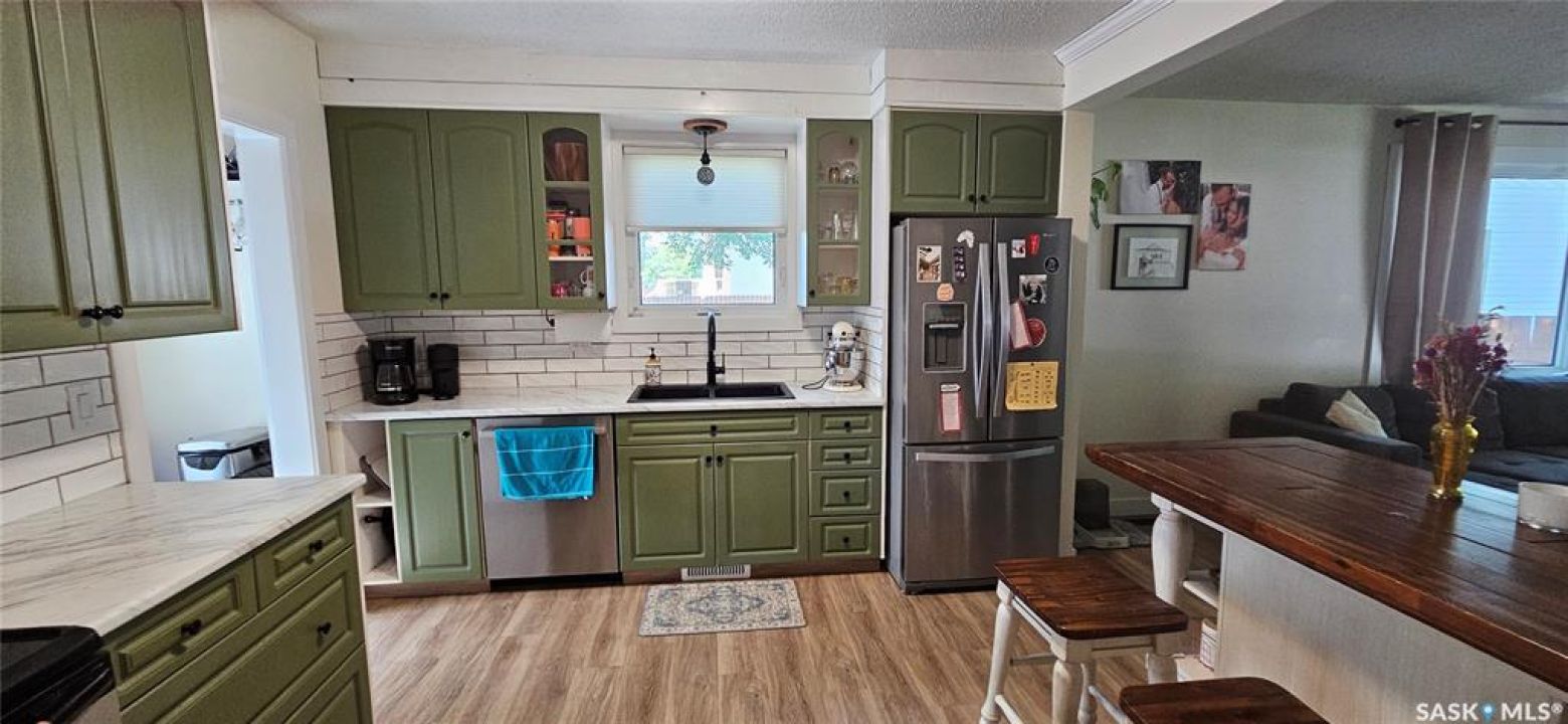 Tucked away on a quiet street and set back on an oversized lot, this home gives you modern updates with a warm country feel. The covered front veranda with a porch swing sets the tone for peaceful evenings and timeless curb appeal. Inside you will find an open concept living, dining and kitchen area with updated flooring throughout. The main floor features 2 bedrooms including a spacious primary suite with attached wardrobe, and a beautifully renovated 4- piece bath. Comfort is ensured year round with a newer furnace, central A/C, and on- demand hot water. The finished basement expands the living space with a large rec room, a third bedroom and another 4-piece bath. The backyard is designed for relaxing and entertaining on a large 2 tiered deck with built in seating and plenty of room to enjoy the outdoors. The fully fenced yard is perfect for kids and pets with the bonus of a workshop for projects or extra storage. This home offers style, space and a peaceful "country in the city" vibe. Call for more information or to book your personal tour.