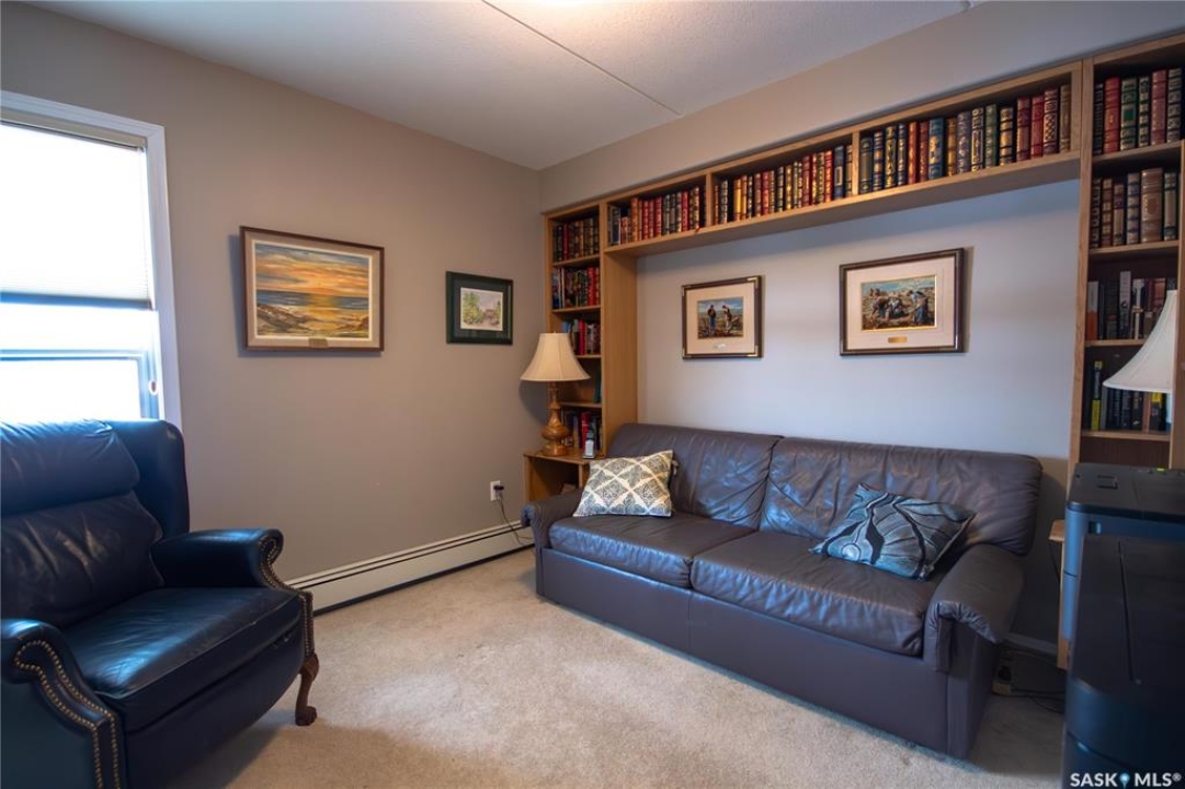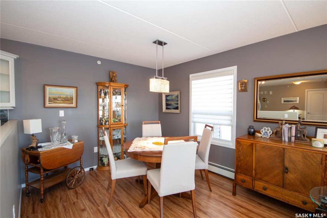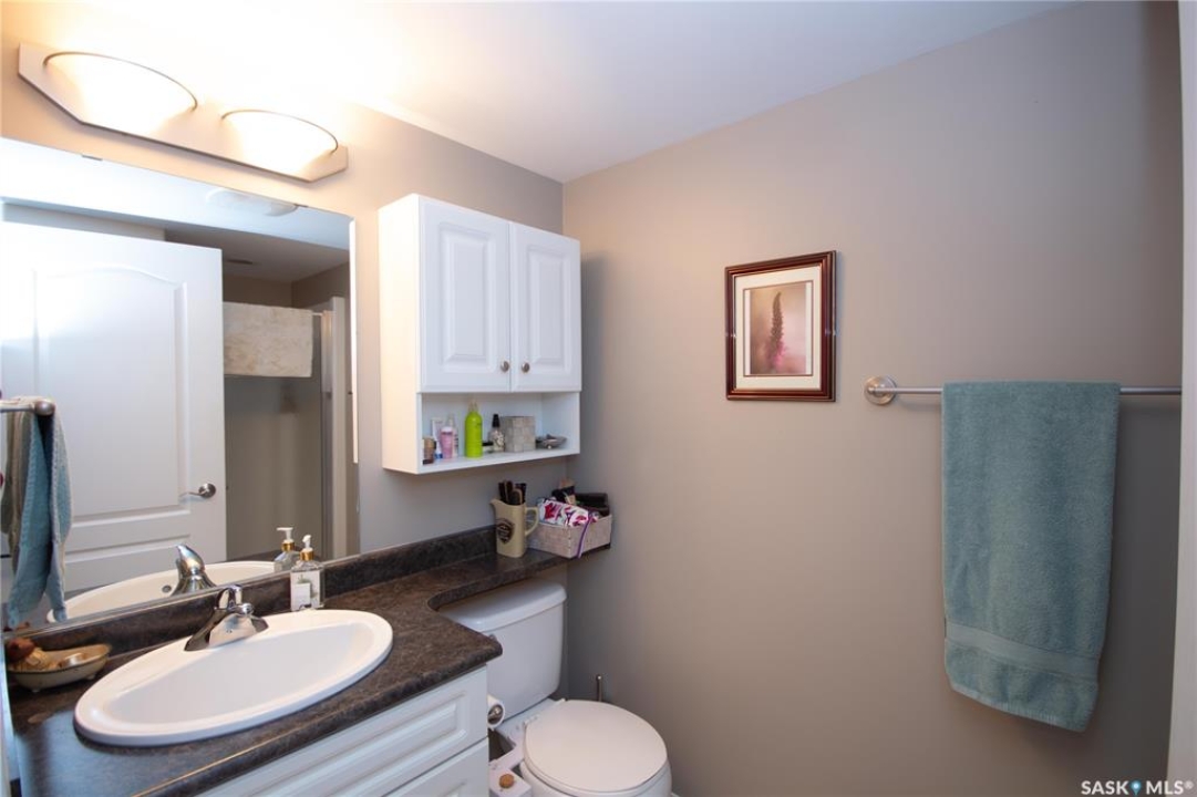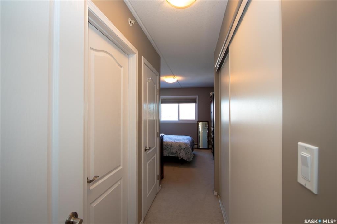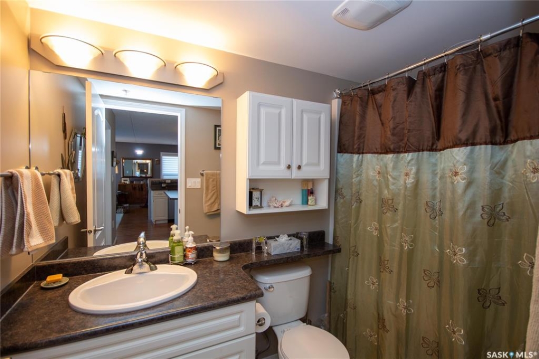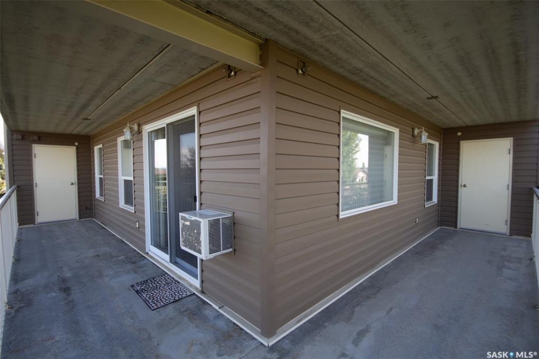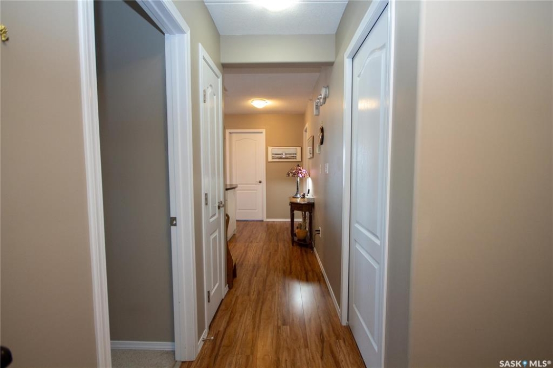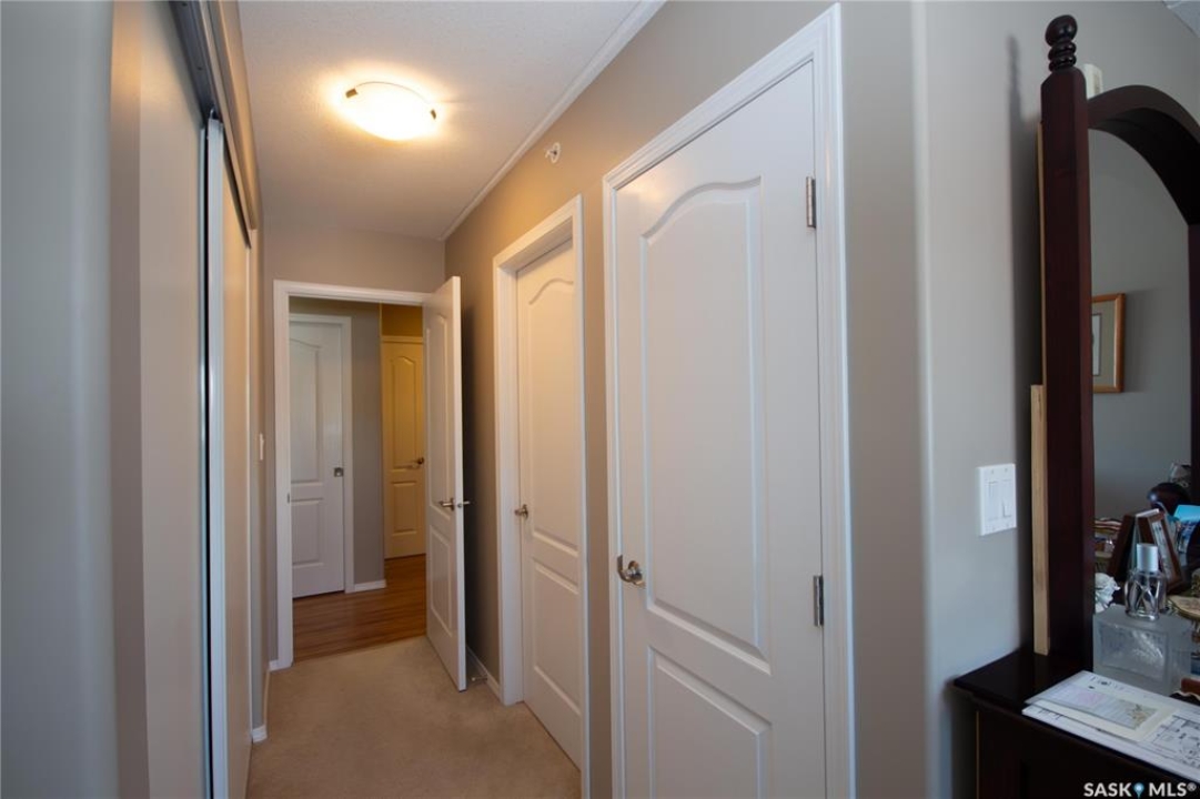 You'll experience comfortable living in this beautiful condo located on the 2nd floor of River Valley Estates in the Town of Battleford. This bright and cheery 1090sqft unit is located on the Northwest corner and has plenty of windows letting in natural light in every room. A spacious entrance way with a large closet welcomes you as you enter. The main living area is open concept and caters to the kitchen with an island, living room with patio doors to the balcony and a dining area with plenty of room for family & friends. A wrap around balcony is a lovely way to spend summer evening as you gaze at the evening sunsets. You'll appreciate the amazing amount of storage with 2 storage units at each end of the balcony. The large master bedroom is complete with an generous amount of closet space, a linen closet, and a 3pc en-suite for added privacy. The 2nd bedroom functions as a guest room or office space and there is also a 4pc main bathroom. The separate en-suite laundry with some storage is a convenient addition. All the appliances and window coverings will remain. The building has an elevator which makes it easy for anyone to have access. There is also an amenities room and exercise room to use. You'll love the heated indoor parking spot so you'll never have to brave the winter elements again! There's visitors parking as well. If you're ready for the carefree condo life call today to book your showing!