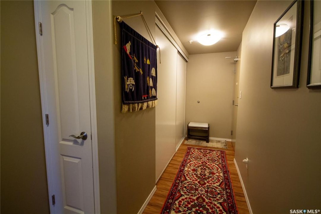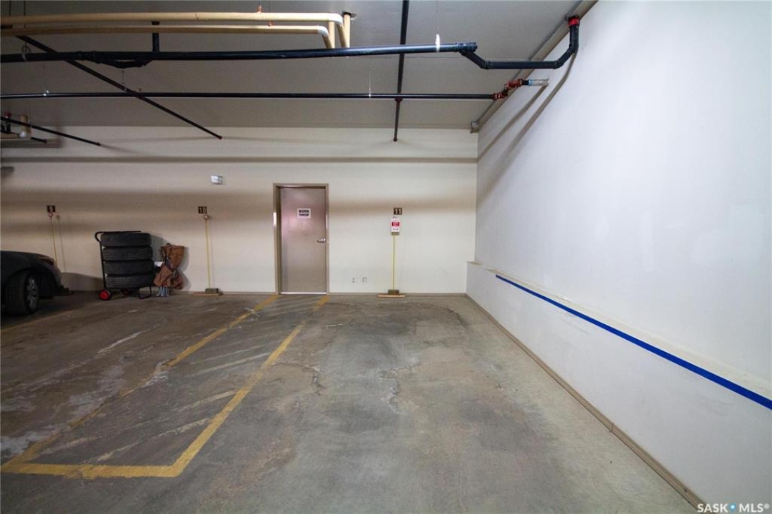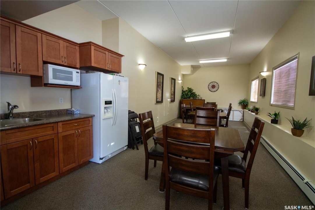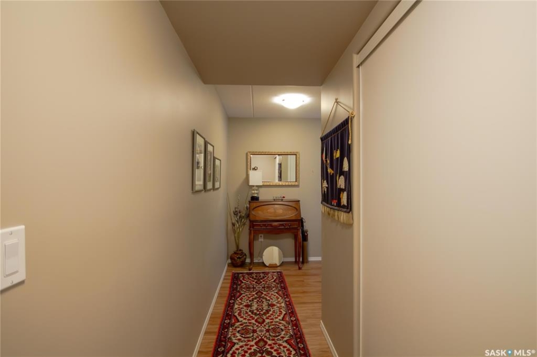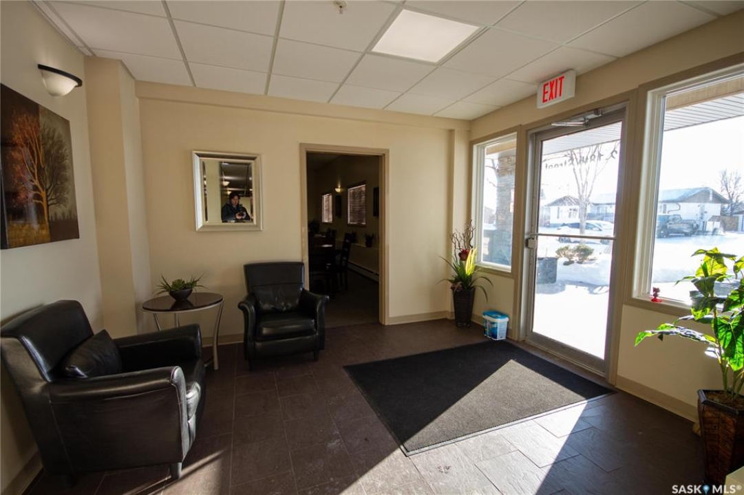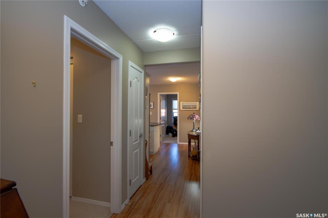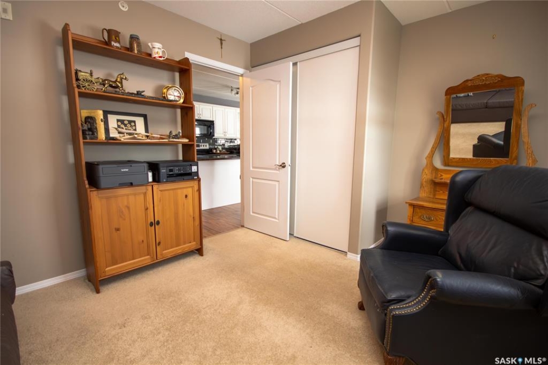 You'll experience comfortable living in this beautiful condo located on the 2nd floor of River Valley Estates in the Town of Battleford. This bright and cheery 1090sqft unit is located on the Northwest corner and has plenty of windows letting in natural light in every room. A spacious entrance way with a large closet welcomes you as you enter. The main living area is open concept and caters to the kitchen with an island, living room with patio doors to the balcony and a dining area with plenty of room for family & friends. A wrap around balcony is a lovely way to spend summer evening as you gaze at the evening sunsets. You'll appreciate the amazing amount of storage with 2 storage units at each end of the balcony. The large master bedroom is complete with an generous amount of closet space, a linen closet, and a 3pc en-suite for added privacy. The 2nd bedroom functions as a guest room or office space and there is also a 4pc main bathroom. The separate en-suite laundry with some storage is a convenient addition. All the appliances and window coverings will remain. The building has an elevator which makes it easy for anyone to have access. There is also an amenities room and exercise room to use. You'll love the heated indoor parking spot so you'll never have to brave the winter elements again! There's visitors parking as well. If you're ready for the carefree condo life call today to book your showing!