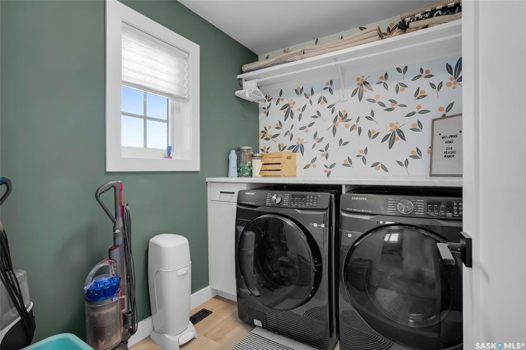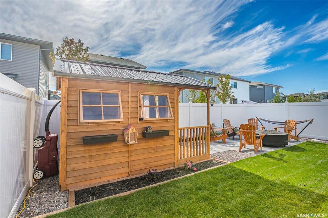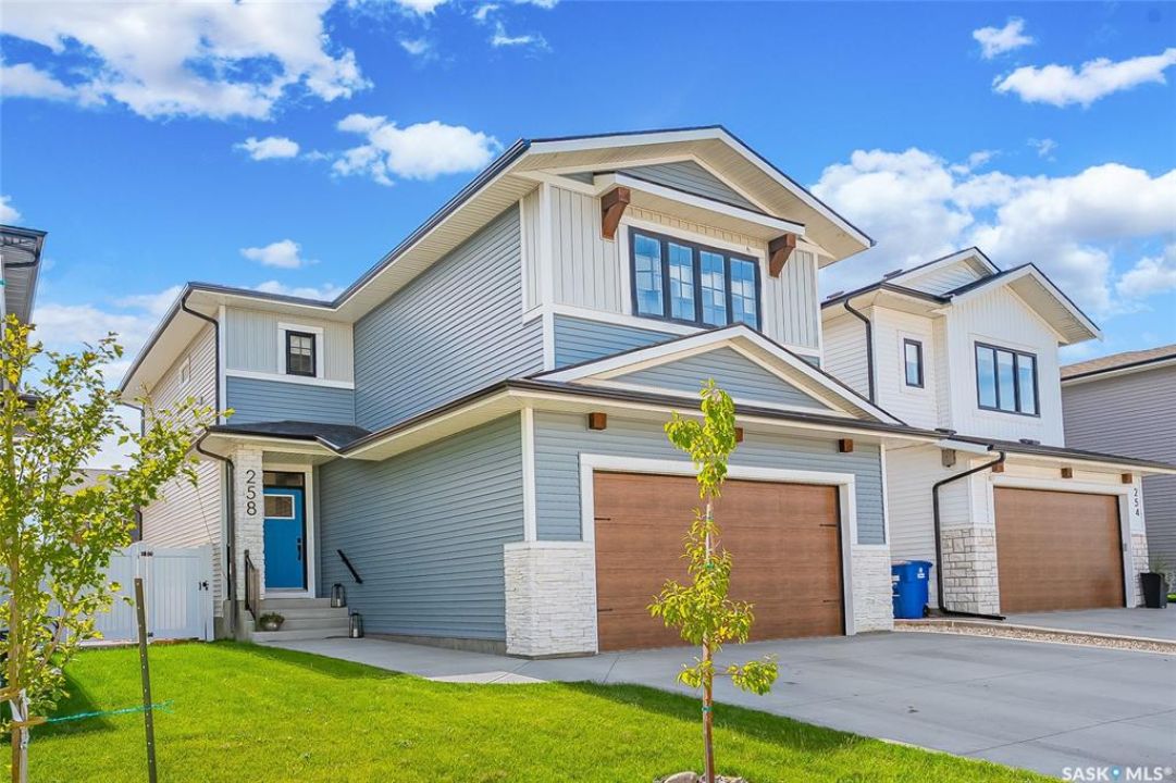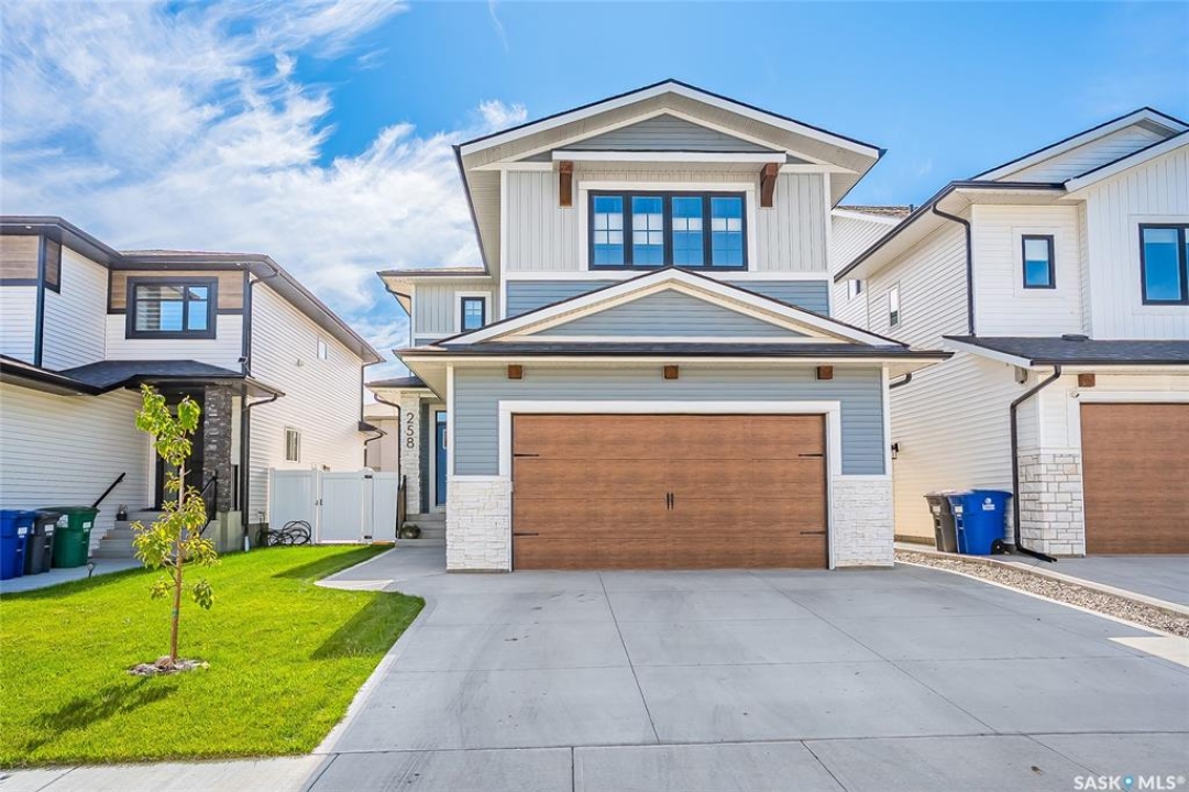 Fall in love with this better-than-new gem at 258 Prasad Manor, tucked into a vibrant crescent in the Brighton community. Perfectly connected to walking paths, the pond, and the splash park, this is where your family's story begins. The architectural exterior sets the tone with its clean modern lines, warm tones, and a triple driveway for ultimate convenience. Built by Pure Homes, this thoughtfully designed 2,019 sq. ft. home offers 3 bedrooms, 3 bathrooms, a bonus room, and a completed backyard. Step inside and you're greeted by a spacious foyer, while the family enjoys the functionality of the mudroom complete with built-ins and a walk-through pantry. The main floor is bathed in natural light with oversized windows and a large patio door, all set against seamless luxury vinyl plank flooring. A cozy Dimplex fireplace with a natural wood mantle anchors the living room, while the kitchen takes center stage with its ceiling-height cabinetry, quartz countertops and modern hardware. High-end, Wi-Fi-enabled appliances make this space as functional as it is beautiful. From casual dinners to lively gatherings, the dining area flows effortlessly outdoors to a cedar deck with a privacy wall, built-in stair lighting, and room to entertain. Beyond, you'll find a hexagon patio, lush grass, and the sweetest playhouse complete with a Dutch door. The yard is finished with underground sprinklers, rainbow rock pathways, vinyl fencing, and bonus under-deck storage. Upstairs, retreat to your light-filled primary suite featuring a spacious walk-in closet and a spa-like ensuite. Two additional bedrooms, a four-piece bathroom, convenient laundry and a bonus room with wood beams round out the second level. The lower level is ready for your Pinterest-worthy touch, with 9' ceilings and bright windows. Comfort is guaranteed year-round with central air, HRV, high-efficiency furnace, and a 50-gallon water heater. Call your Realtor to view this home today!