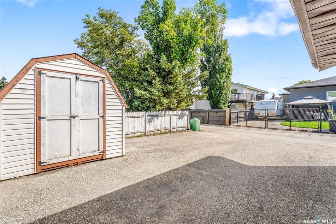 4 bedroom 2 bath bungalow with 2 car detached garage & RV parking located in the desirable Crescent Acres neighborhood, this fully developed 1,056 sq. ft. bungalow offers a practical layout with plenty of space for comfortable living. The main floor features a large eat-in kitchen with ample cabinetry and room for family dining, as well as a bright, open living area with large windows that overlook the fully fenced backyard. A cozy gas fireplace adds warmth to the space, creating a comfortable area to relax. There are two bedrooms on the main level, including a spacious primary bedroom with his and hers closets, plus a full 4-piece bathroom. The lower level offers even more living space, including a family room with built-in cabinetry, two additional bedrooms, another full 4-piece bathroom, and a generous laundry and storage area. Enjoy outdoor living with a private backyard that includes a fire pit, storage shed, and room to entertain or unwind. The property also features a detached two-car garage, RV parking, central air, central vacuum, and all existing appliances. A solid, move-in-ready home in a great location.