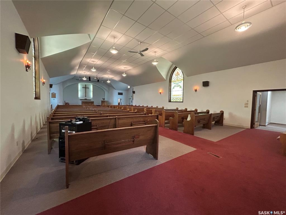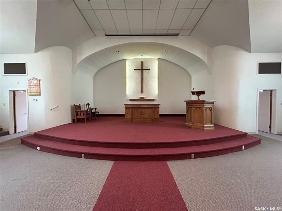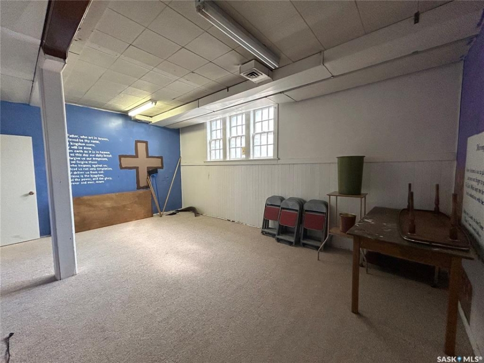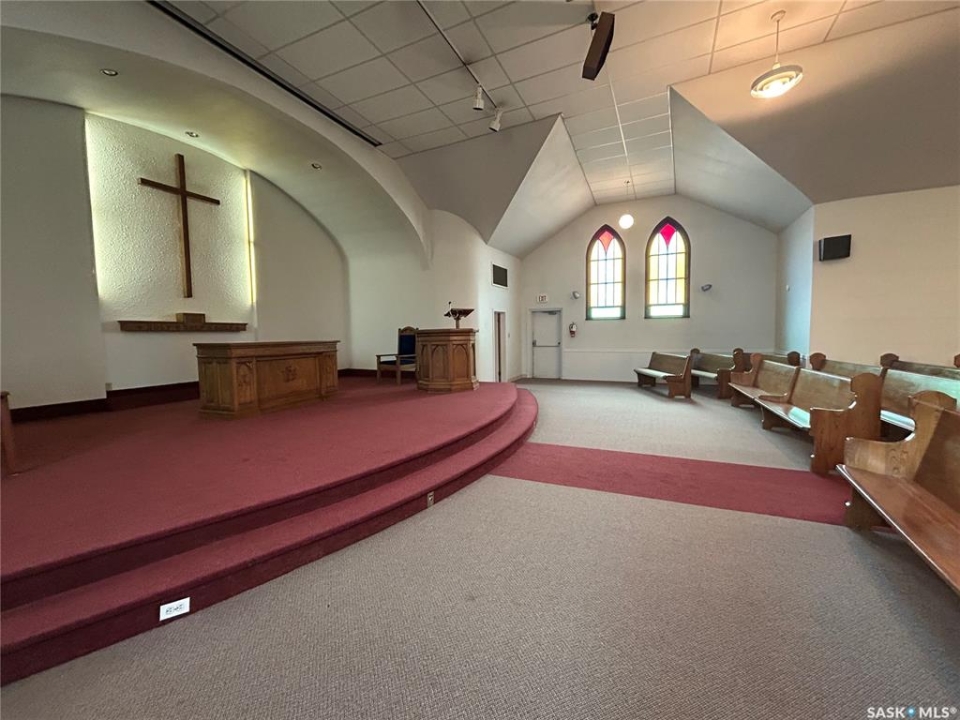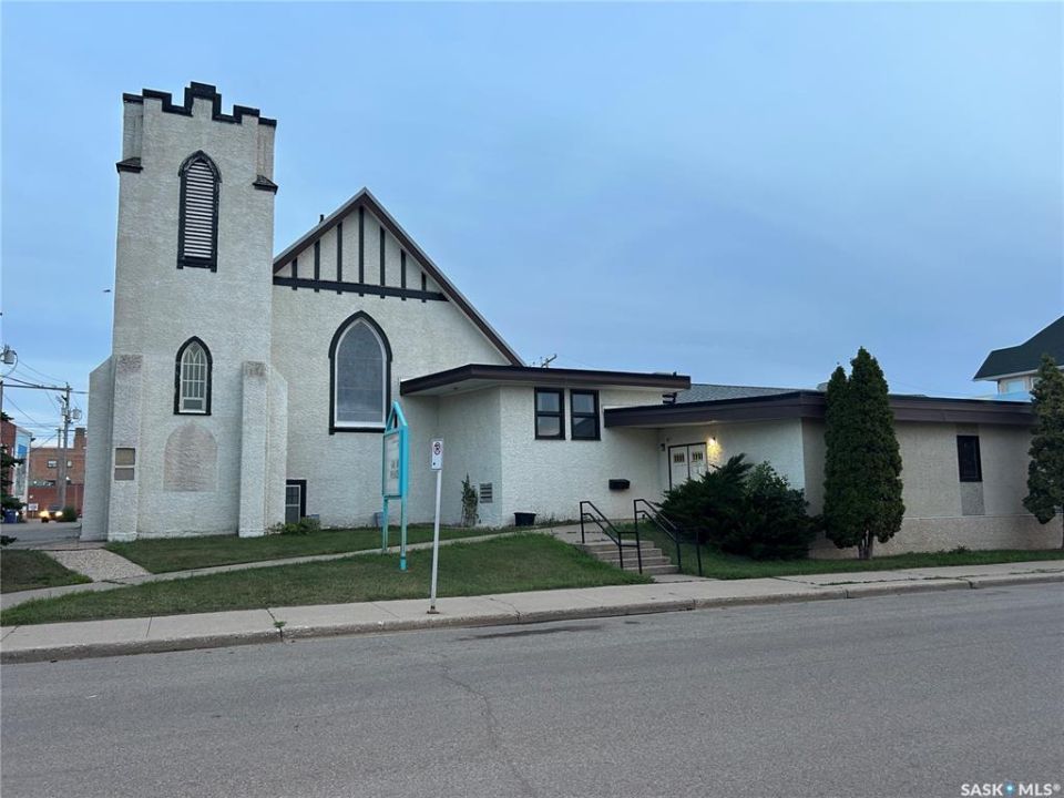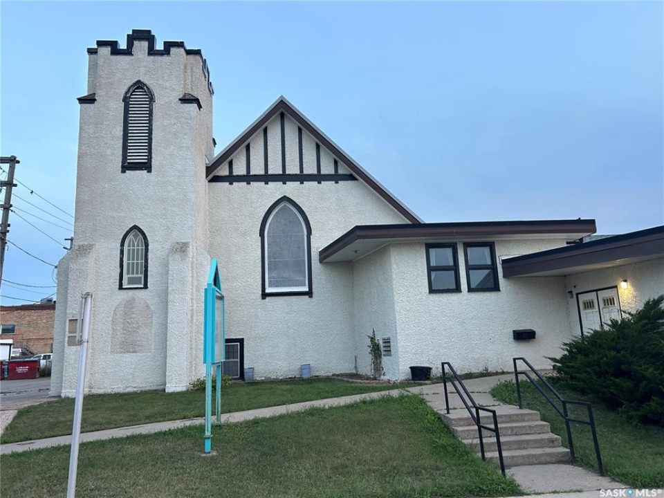 Exceptional commercial property available in the heart of downtown Moose Jaw! Offering over 5,300 sq. ft. of functional space, this property is ideally located within walking distance to all downtown amenities and includes the convenience of ample off-street parking. The main level welcomes you with a spacious foyer leading into a large hall, perfect for gatherings or business use. Adjacent to this area is a kitchen featuring two stoves and one refrigerators, along with three office spaces and a bathroom. Upstairs, you'll find an impressive sanctuary area highlighted by stunning stained glass windows, complemented by three additional rooms for flexible use. The lower level provides exceptional functionality with a large hall, eight separate rooms, plus men's and women's washrooms. With its size, layout, and unbeatable location, the possibilities are endless – whether you're an investor or an owner-user, this property is a rare opportunity to transform into the business or venture of your dreams.