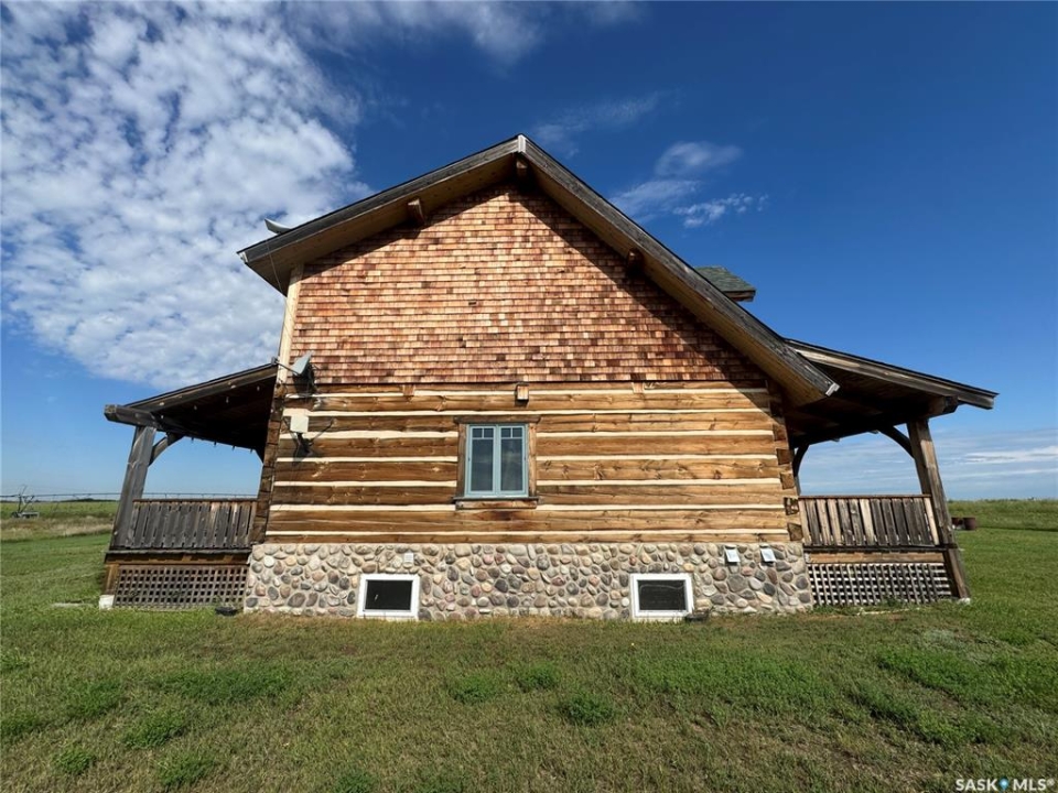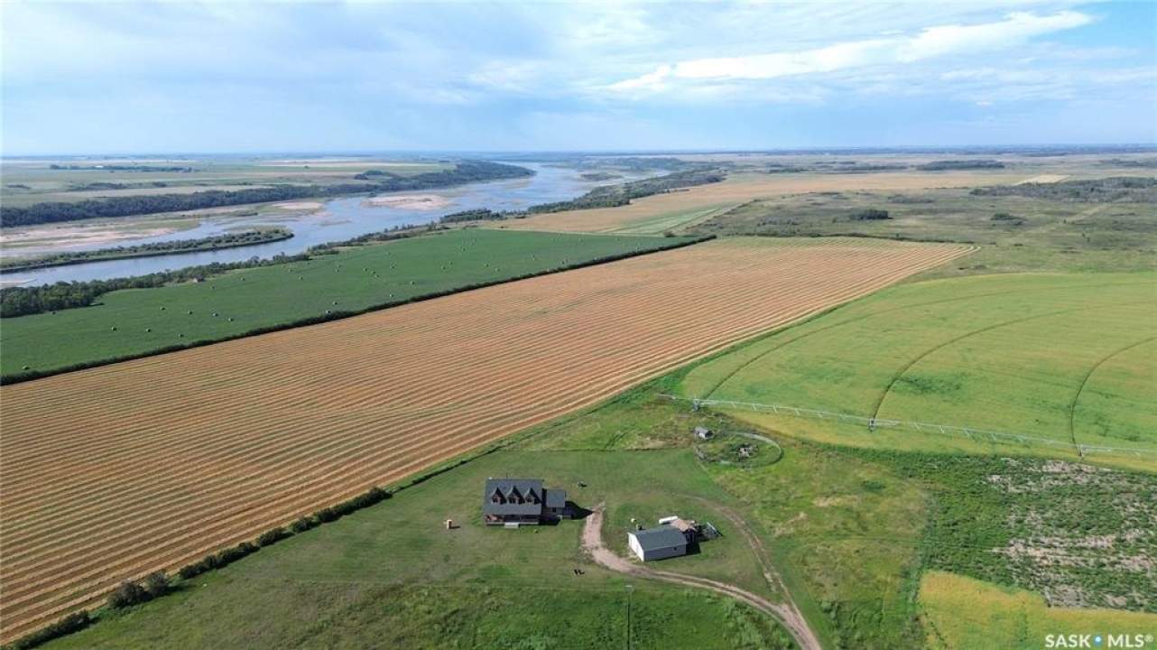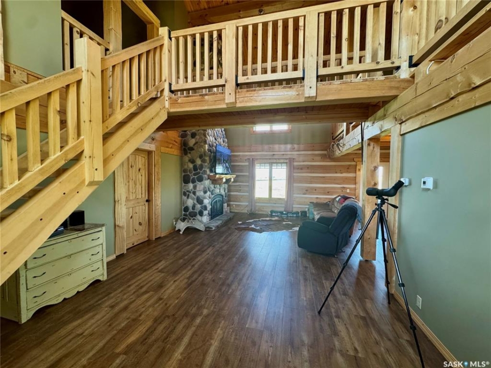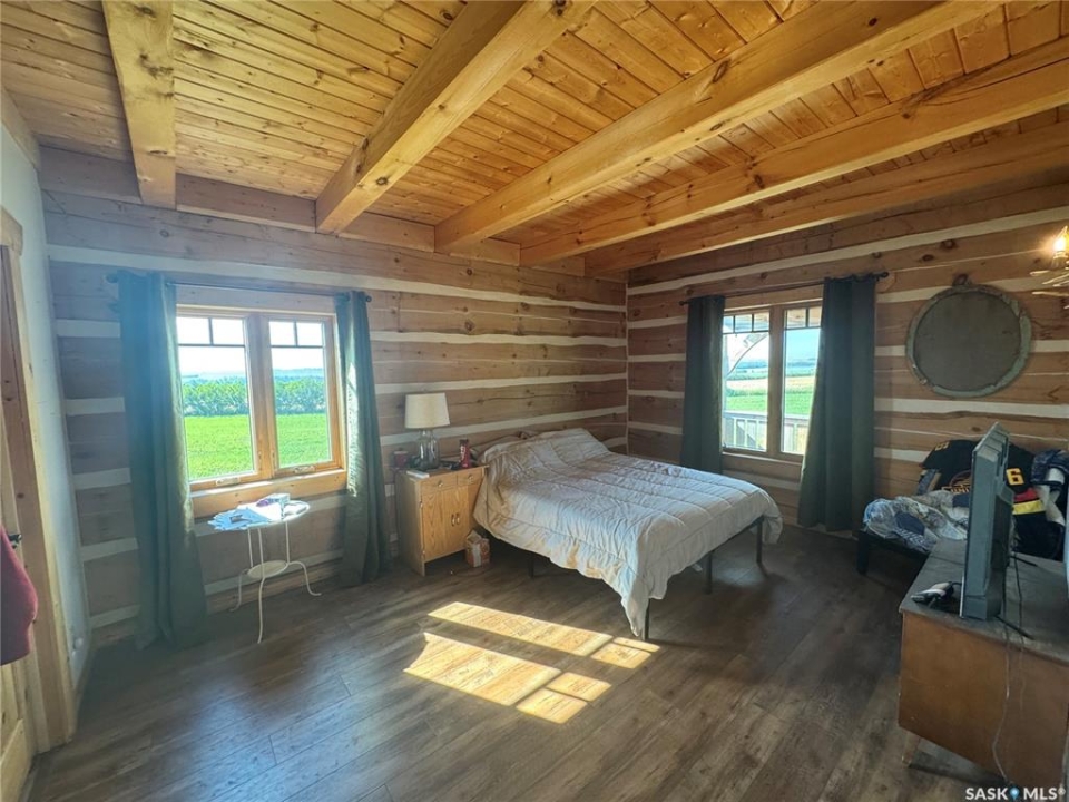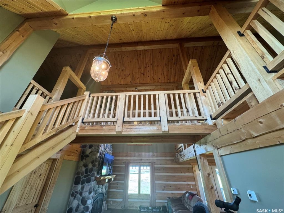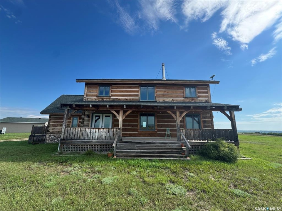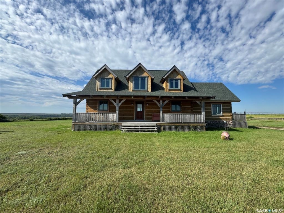 Welcome to the beautiful and secluded Log House on the Hill. Just 30 km south of Pike Lake, this property offers incredible views of the South Saskatchewan River. The home is fully equipped for year-round country living with geothermal in-floor heating, an additional furnace, central A/C, stainless steel kitchen appliances, on-demand hot water, and a washer/dryer. The parcel also includes a double detached heated garage, three separate porches, a wood-burning fireplace, and a top-level walkway overlooking the main living space — complete with a games room, bedroom, and bathroom. On the main floor, you'll find three convenient entrances: one into the mud/laundry room, one into the kitchen/living area, and a main entry into the foyer. The spacious master bedroom features a 4-piece ensuite and large windows framing scenic river views. Just a short 40-minute drive from Saskatoon, Hill House offers serenity, sweeping views, space to roam, and ample storage for your country lifestyle. Opportunities like this don't come up often — call today to book your private tour!