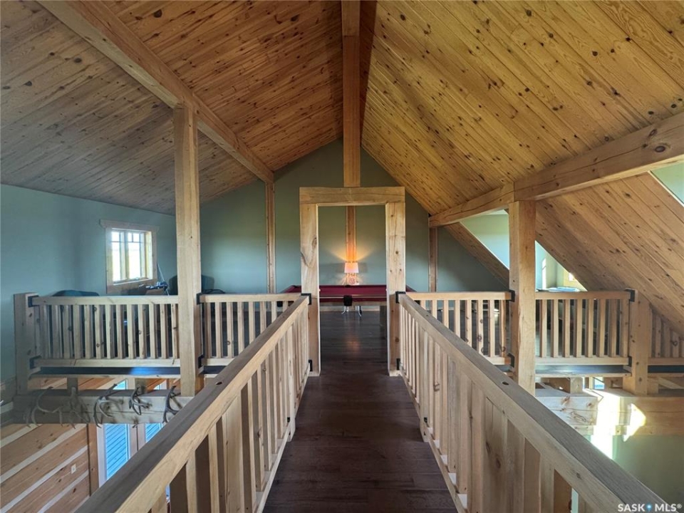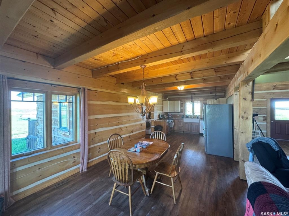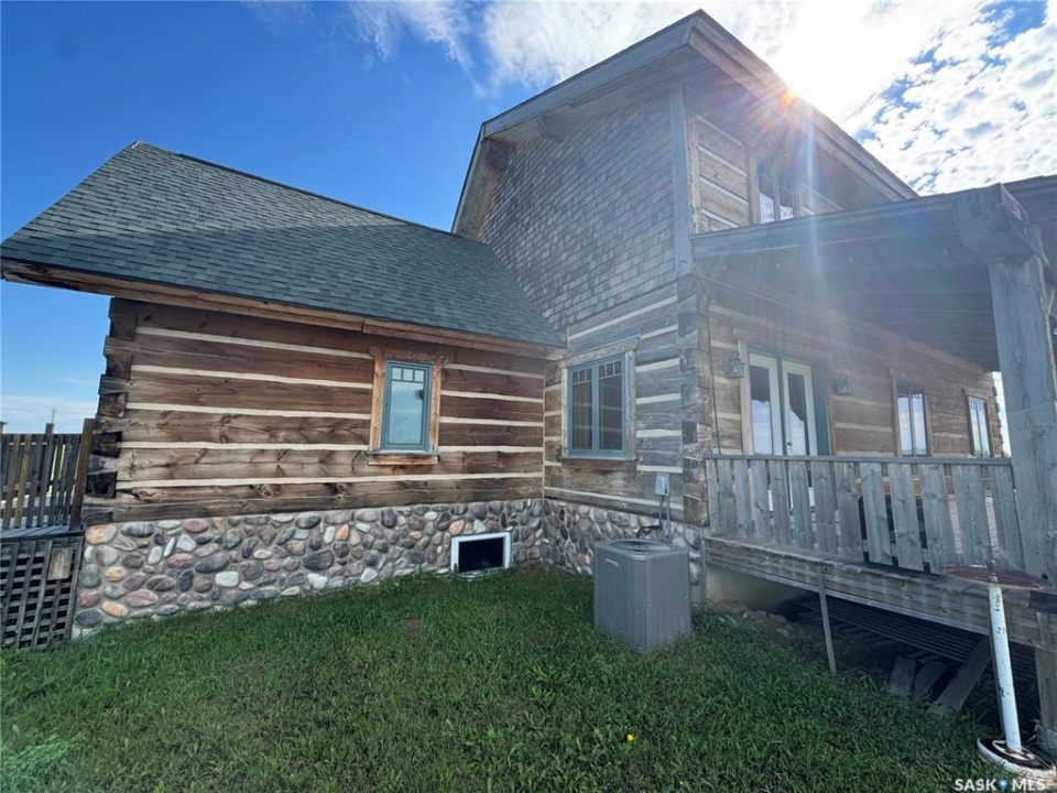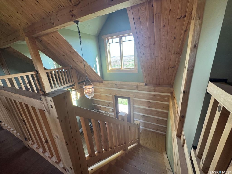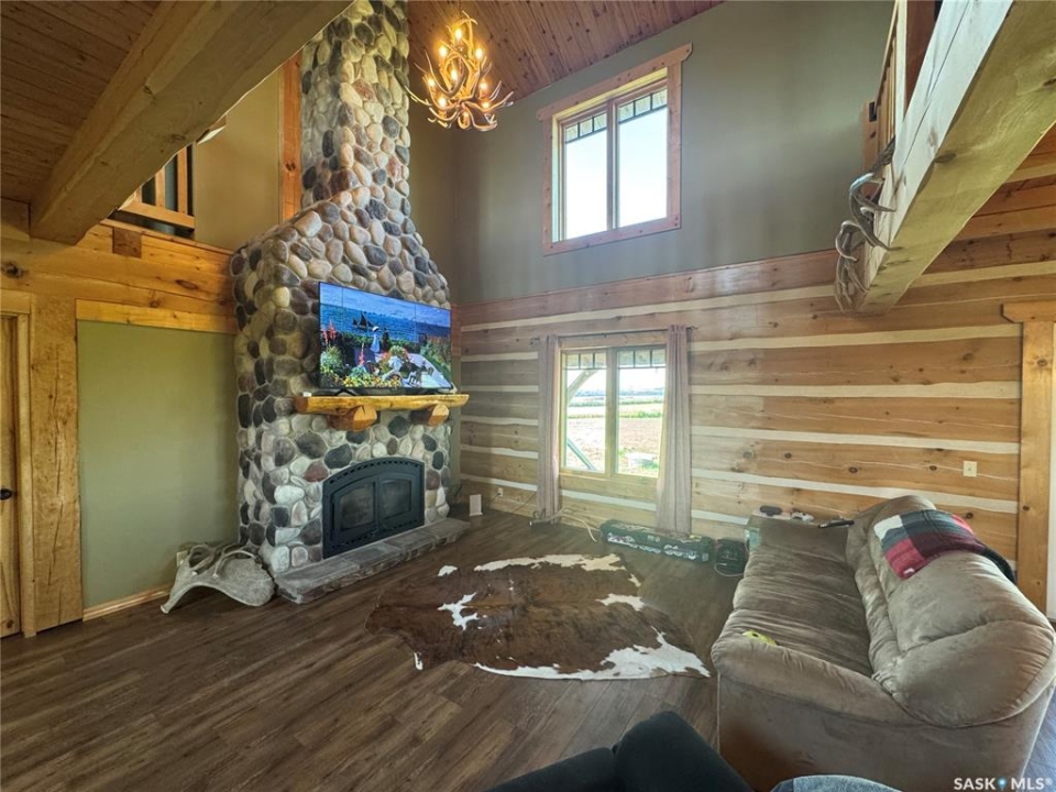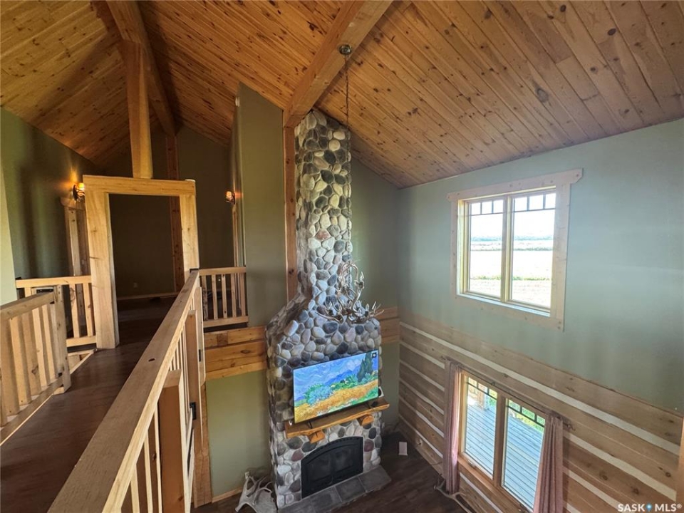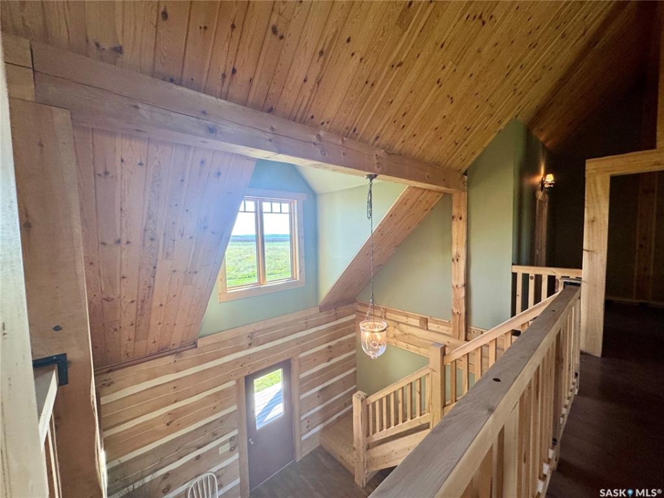 Welcome to the beautiful and secluded Log House on the Hill. Just 30 km south of Pike Lake, this property offers incredible views of the South Saskatchewan River. The home is fully equipped for year-round country living with geothermal in-floor heating, an additional furnace, central A/C, stainless steel kitchen appliances, on-demand hot water, and a washer/dryer. The parcel also includes a double detached heated garage, three separate porches, a wood-burning fireplace, and a top-level walkway overlooking the main living space — complete with a games room, bedroom, and bathroom. On the main floor, you'll find three convenient entrances: one into the mud/laundry room, one into the kitchen/living area, and a main entry into the foyer. The spacious master bedroom features a 4-piece ensuite and large windows framing scenic river views. Just a short 40-minute drive from Saskatoon, Hill House offers serenity, sweeping views, space to roam, and ample storage for your country lifestyle. Opportunities like this don't come up often — call today to book your private tour!