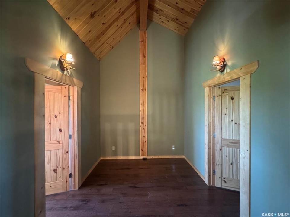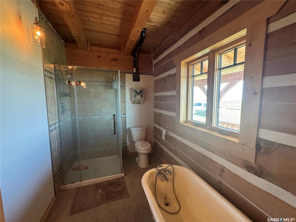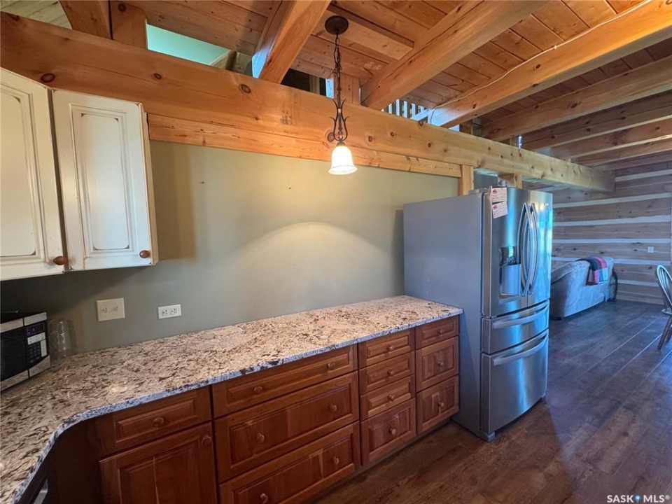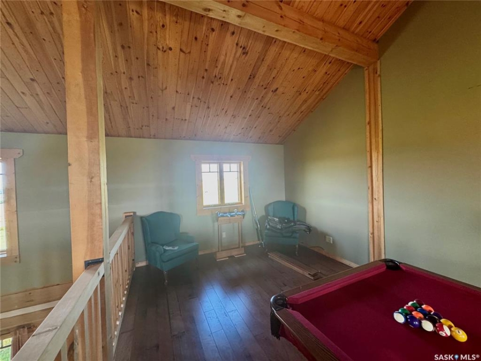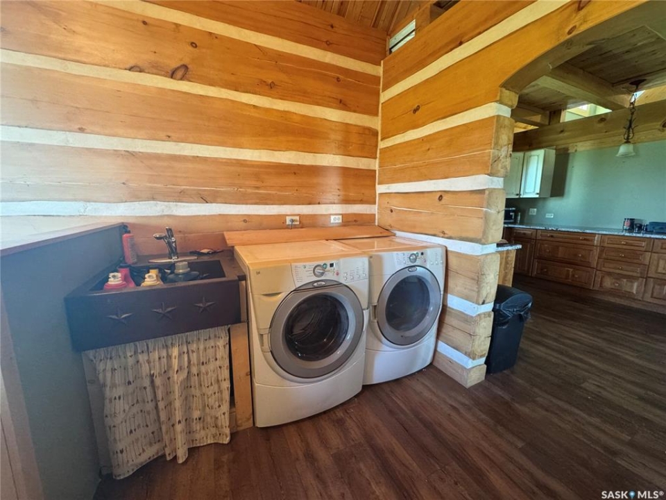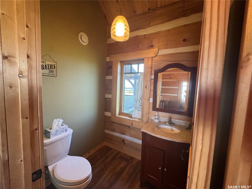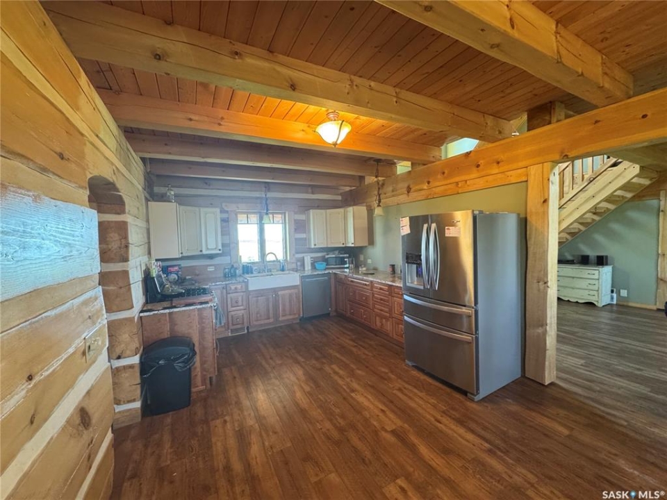 Welcome to the beautiful and secluded Log House on the Hill. Just 30 km south of Pike Lake, this property offers incredible views of the South Saskatchewan River. The home is fully equipped for year-round country living with geothermal in-floor heating, an additional furnace, central A/C, stainless steel kitchen appliances, on-demand hot water, and a washer/dryer. The parcel also includes a double detached heated garage, three separate porches, a wood-burning fireplace, and a top-level walkway overlooking the main living space — complete with a games room, bedroom, and bathroom. On the main floor, you'll find three convenient entrances: one into the mud/laundry room, one into the kitchen/living area, and a main entry into the foyer. The spacious master bedroom features a 4-piece ensuite and large windows framing scenic river views. Just a short 40-minute drive from Saskatoon, Hill House offers serenity, sweeping views, space to roam, and ample storage for your country lifestyle. Opportunities like this don't come up often — call today to book your private tour!
