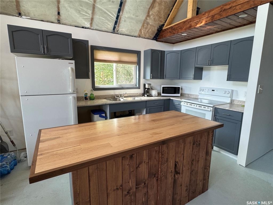 Beautiful craftsmanship in this custom home at Nemeiben Lake! Only 20 mins north of La Ronge, you can drive right to your front door in this family-friendly recreational subdivision. The cabin exterior is complete with beautiful cedar siding, vinyl frame windows, and architectural shingles; it has loads of charm and curb appeal! The interior of this 2 bedroom + loft cottage is still under construction, but SO MUCH has already been completed & with only the best materials. The custom touches and craftsmanship are evident throughout with pine interior doors and gorgeous contrasting maple trim, a hand-scraped tree for the stairs railing, and pine feature walls in each room. The front wall of the vaulted living room is finished in pine tongue-in-groove and you can watch the flames dance in the cozy wood-burning fireplace. There is a nice sized dining area adjacent to the newly finished open concept kitchen, which features gorgeous painted oak cabinetry and a custom island. The main floor full bathroom is fully finished with lovely modern grey tile on the floor and the tub surround and with richly stained pine tongue-in-groove pine on the ceiling. There are 2 bedrooms on the main floor and both have windows looking out to the backyard. The master bedroom includes a nice sized closet with lovely pine double doors that match the rest of the interior doors in the house. The second bedroom has some of the mechanics in its closet, including the water heater and water pump. Up on the loft, there is a rough-in for a 2 piece bathroom and space for a 3rd bedroom and a sitting area. This lovely cottage is heated and fully insulated, so it could be a 4-season cabin or your year-round residence. There is a power hookup for a camper, if you want to host your guests in your driveway. Lots of trees on the lot to give privacy and a connection to nature in your yard. Nemeiben Lake offers world-class fishing and is just a stones throw from town, but feels a world away.