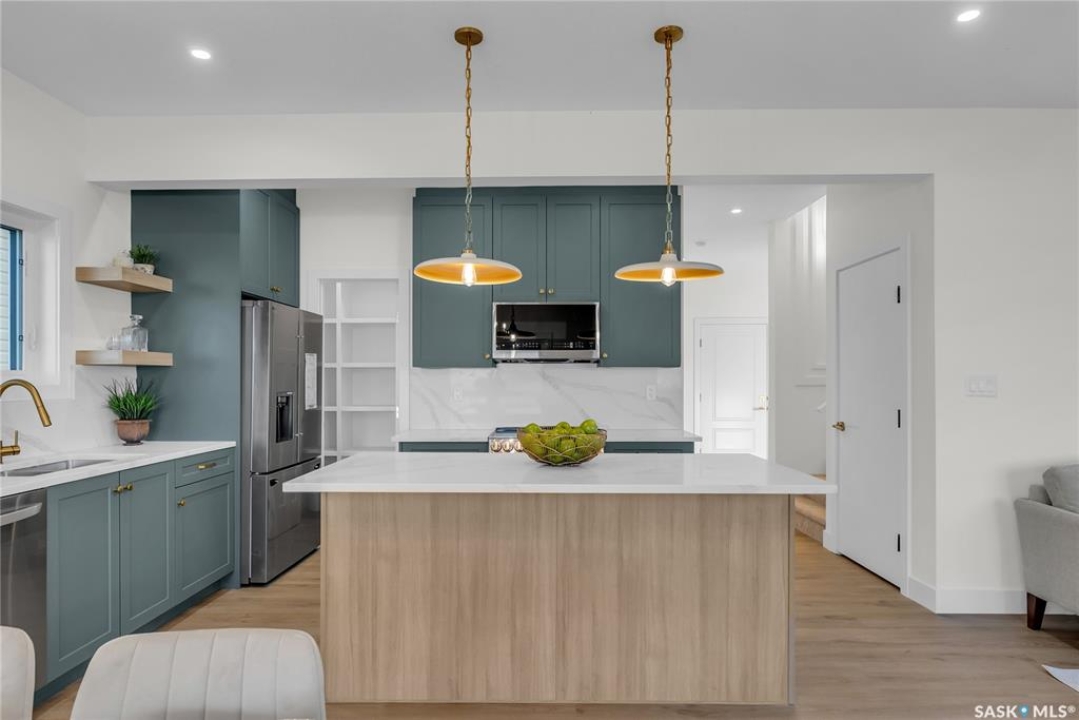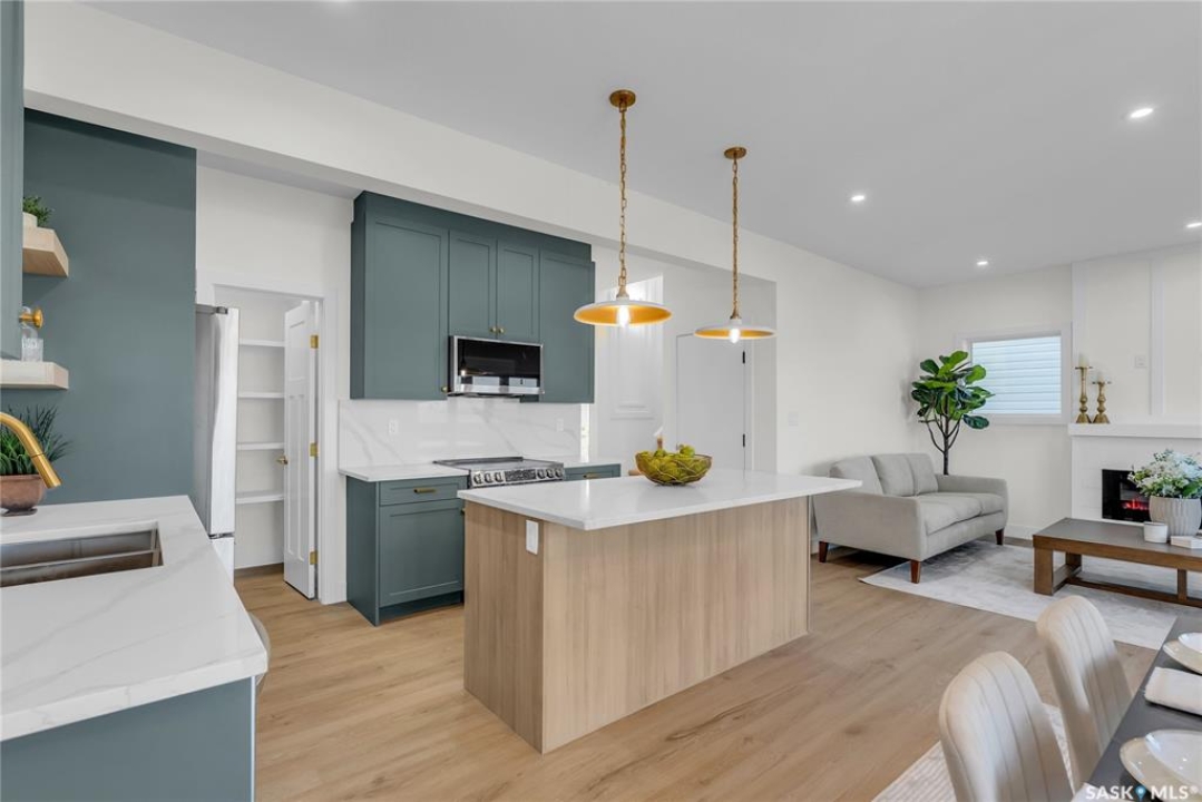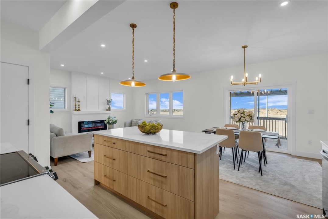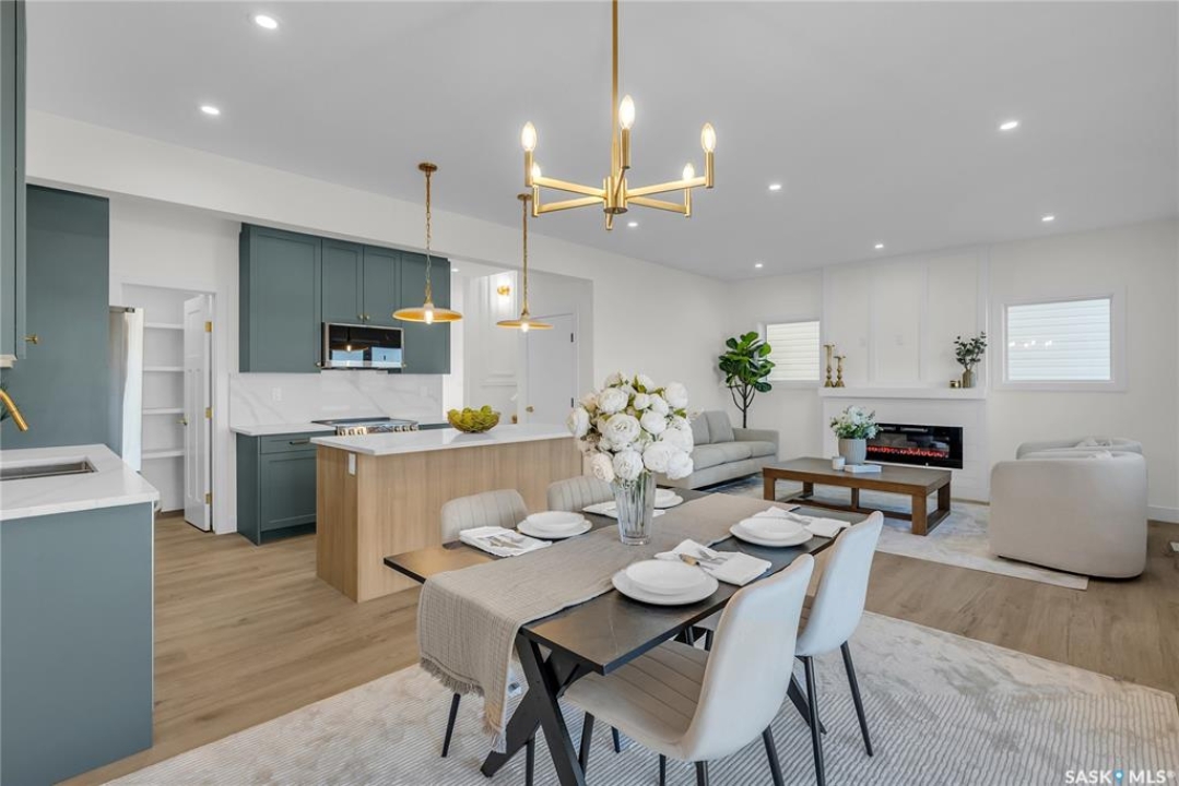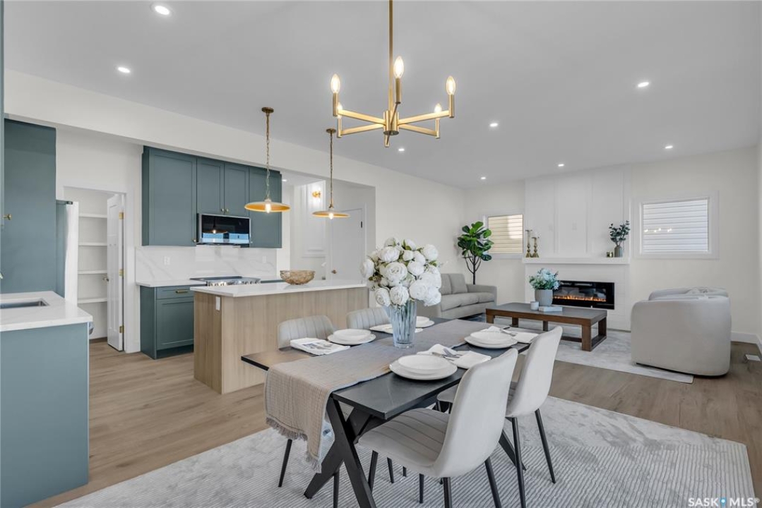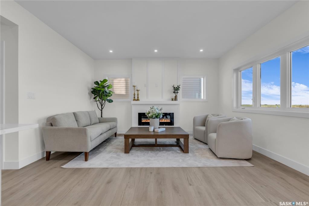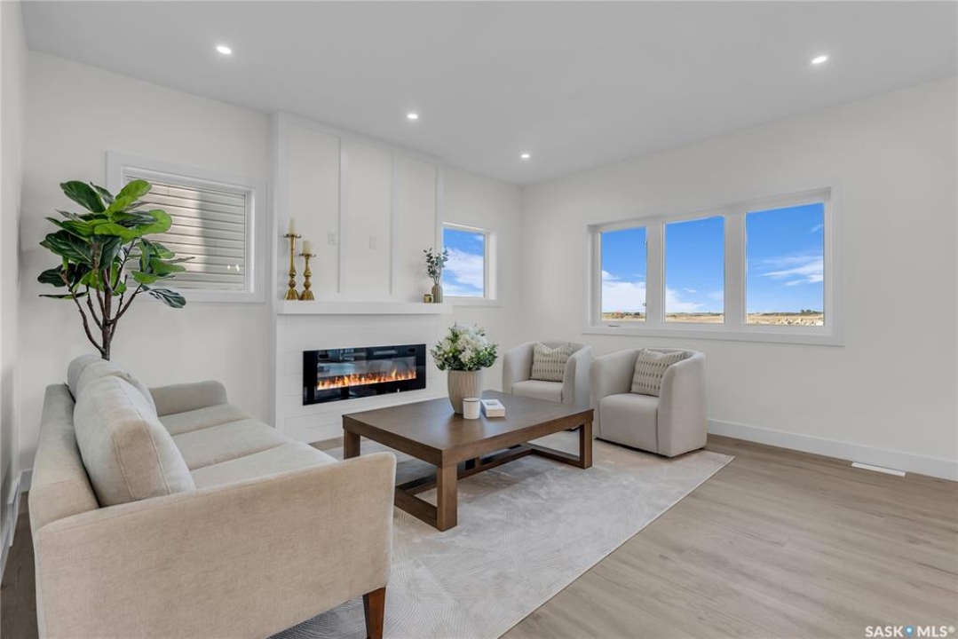 Welcome to 307 Sharma Crescent! Located in the desirable Aspen Ridge neighborhood, this brand-new home by Opulent Home & Design seamlessly blends modern luxury with functional living. With its striking mix of hardi board and vinyl siding, finished concrete driveway, and spacious layout, this home is a must-see. Upon entry, you're greeted by a bright, open foyer with plenty of room for family and guests, along with a large closet for coats and shoes. To your right, a private office/den offers an ideal space for working from home, featuring high ceilings and large windows. The heart of the home lies in the family room and kitchen. The family room is filled with light from east-facing windows, complemented by a modern electric fireplace that adds warmth and charm. The chef-inspired kitchen boasts quartz countertops, upgraded appliances, and a large island perfect for cooking or entertaining. With plenty of cabinet and counter space, plus a large pantry with built-in shelving, organization is a breeze. On the second floor, you'll find a spacious bonus room for entertaining or relaxing. The primary bedroom offers a private retreat with a west-facing window, electric fireplace, and room for a king-sized bed. The walk-in closet provides ample storage, while the ensuite features a double vanity, custom-tiled shower, and modern finishes. Three additional bedrooms, a 4-piece bathroom, and an upstairs laundry room complete the upper level. The basement is currently under construction but will feature a fully finished 2-bedroom legal suite, complete with kitchen, laundry, bathroom, and family room. Outside, enjoy a pressure-treated deck with a pergola, ideal for outdoor dining and lounging, plus a spacious backyard perfect for any activity. Additional features include vinyl plank flooring, central air conditioning, a heated garage, and an upgraded lighting package throughout. This home is truly one-of-a-kind. Don't miss out—contact us today to schedule a viewing!