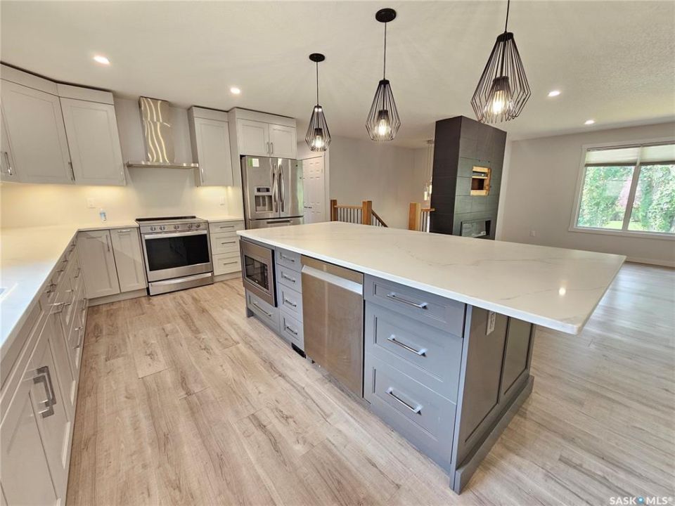 This beautifully updated home offers open-concept living at its finest, perfectly positioned on a quiet corner lot with direct access to the park. Extensively renovated in 2021, it blends modern style with solid construction, making it a truly move-in-ready gem. Inside, natural light pours through the bi-level layout, showcasing a stunning kitchen with a massive eat-in island topped with quartz countertops, two-tone designer cabinetry in soft greys, and sleek stainless steel appliances. The elegant design continues with a striking black floor-to-ceiling fireplace and custom wood-wrapped metal railings, all set against fresh grey and white finishes for a sophisticated contrast. Offering 4 bedrooms (2 up, 2 down) and 2 full bathrooms, this home is ideal for growing families or those looking to downsize without compromising on space. Key Updates Include, Furnace (2020), Central Air Conditioning (2015), Reverse Osmosis Drinking Water System (2018), Water Heater (2016), Central Vac (2010), Kitchen Appliances (2021, except fridge – 2012), Windows (1996, double-pane vinyl), Clay Tile Roof (~15 years ago), Hardie Board Siding (installed with roof), With modern finishes, thoughtful updates, and a fantastic location, this home is the perfect blend of style, comfort, and convenience. Come see it in person — it's even better than the photos!