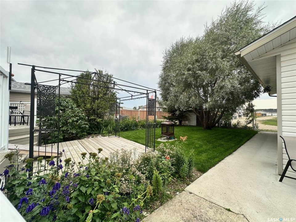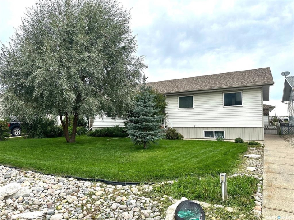 Welcome to 536 5th Avenue, nestled in the desirable West Bay Subdivision. This raised bungalow, built in 1995, offers 4 bedrooms and 3 bathrooms, thoughtfully designed for both comfort and functionality. The living room, dining area, and kitchen all feature vaulted ceilings, creating an airy, open atmosphere that enhances the sense of space. Triple-pane windows and vinyl siding provide energy efficiency and durability, while the shingles have been recently replaced for added peace of mind. Convenience is key with main floor laundry. Outdoor living is a delight thanks to the beautifully landscaped yard, complete with mature trees and underground sprinklers. Step out through the dining room garden doors onto a tiered deck, where a gazebo—securely anchored to the second level—offers a perfect retreat. The detached garage features 10-foot walls and can accommodate one or two vehicles depending on your needs. The backyard is fully fenced for privacy and includes a natural gas BBQ with hookup, which comes with the sale. For your gardening tools and lawn care essentials, a separate shed provides additional storage. This home blends charm, practicality, and outdoor enjoyment in a welcoming neighborhood. Call or text today to setup appointment to view