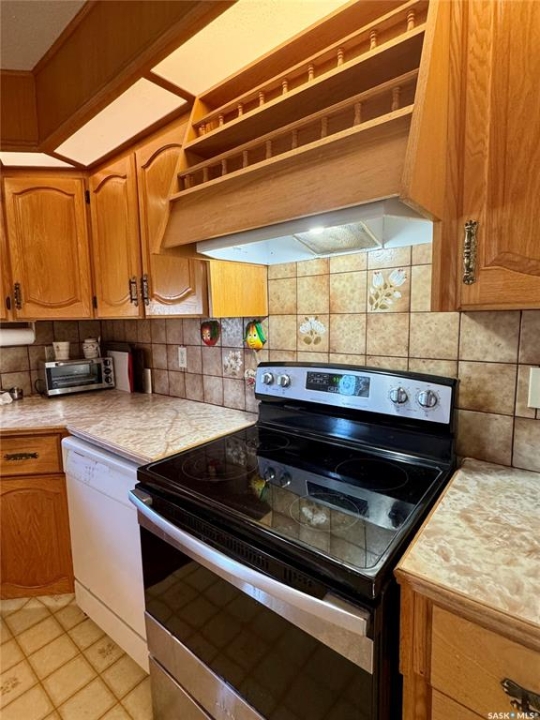 Welcome to 403 Churchill Street, Hudson Bay SK. This home was built in 1986, this 1,064 sq ft home with a full finished basement offers a practical layout and excellent location. The main level features 2 bedrooms, a 4-piece bath, and main floor laundry, while the basement provides 2 additional bedrooms(window sizes need to verified), a 3-piece bath, and a spacious recreation room. The bright and roomy living room flows into a well-appointed separate dining and kitchen with ample counter and cupboard space, plus plenty of storage throughout, including cold and dry storage areas downstairs. Appliances included: fridge, stove, washer, dryer, microwave, and central vacuum system.The home has natural gas heat and central air conditioning. A wheelchair ramp provides easy access. The property also comes with a detached oversized 20'x26' single garage concrete apron and both the house and garage had new shingles installed in 2019. Back yard space and garden space and is Conveniently located close to the grocery store, school (K–12), swimming pool, skating rink, and Home Hardware and more! Quick possession is possible!