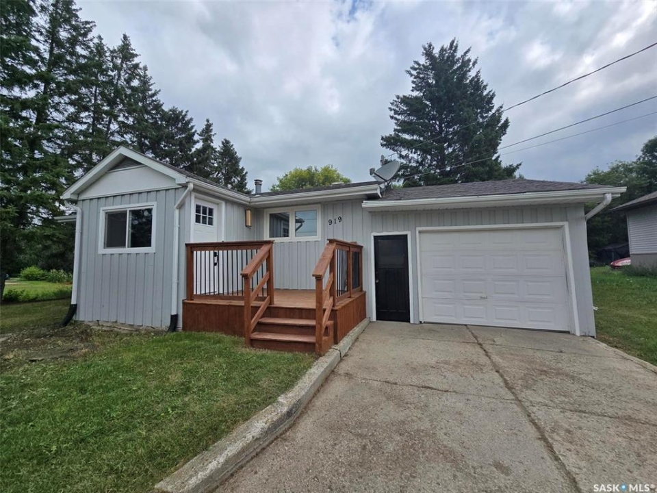 919 SOUTHESK STREET IN WHITEWOOD Are you ready to purchase a home in this community? Have pets? Kids? You will love the spacious fenced yard ( 69' x 135')with backyard privacy. Great location , across the street from the school and down the road from the daycare and soon to be new park. This 3 ( 2+1) bedroom + 2 bath home is just under 900 sq ft but feels way bigger with an open concept living room . kitchen and dining area. The kitchen upper cabinets are painted white and the lower cabinets are slightly green, a real country vibe, and some open shelving compliment the style. Subway tile ,trendy counter tops, double stainless sink and vinyl flooring finish the kitchen. Appliances included are the fridge, stove, BI dishwasher, microwave hood fan, washer and dryer. Main floor provides 2 good size bedrooms, the primary room is large enough for a king bed. The 4 piece bath has new tub tiles, vanity , new toilet and flooring. Enter the basement with a new staircase to an area that is 75% complete. Find a new 3 piece bathroom with a walk in shower, the 3rd bedroom and an area to make into a family room. 2 storage rooms and a laundry area. Shingles are 3 years old, front deck is new. Some new vinyl windows. For the hot days , turn on the central air . The attached garage is an asset to have with front and back man doors. Make this a home on your list to view. It is waiting for a new beginning , are you?