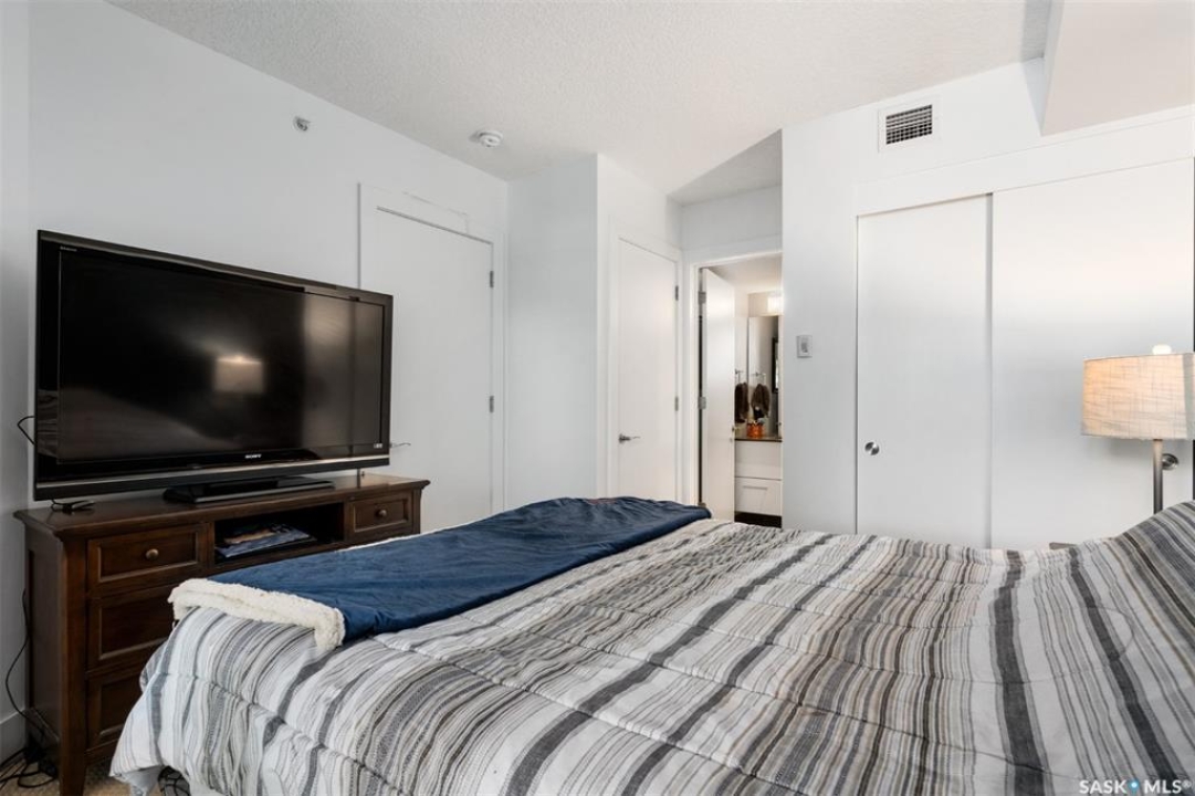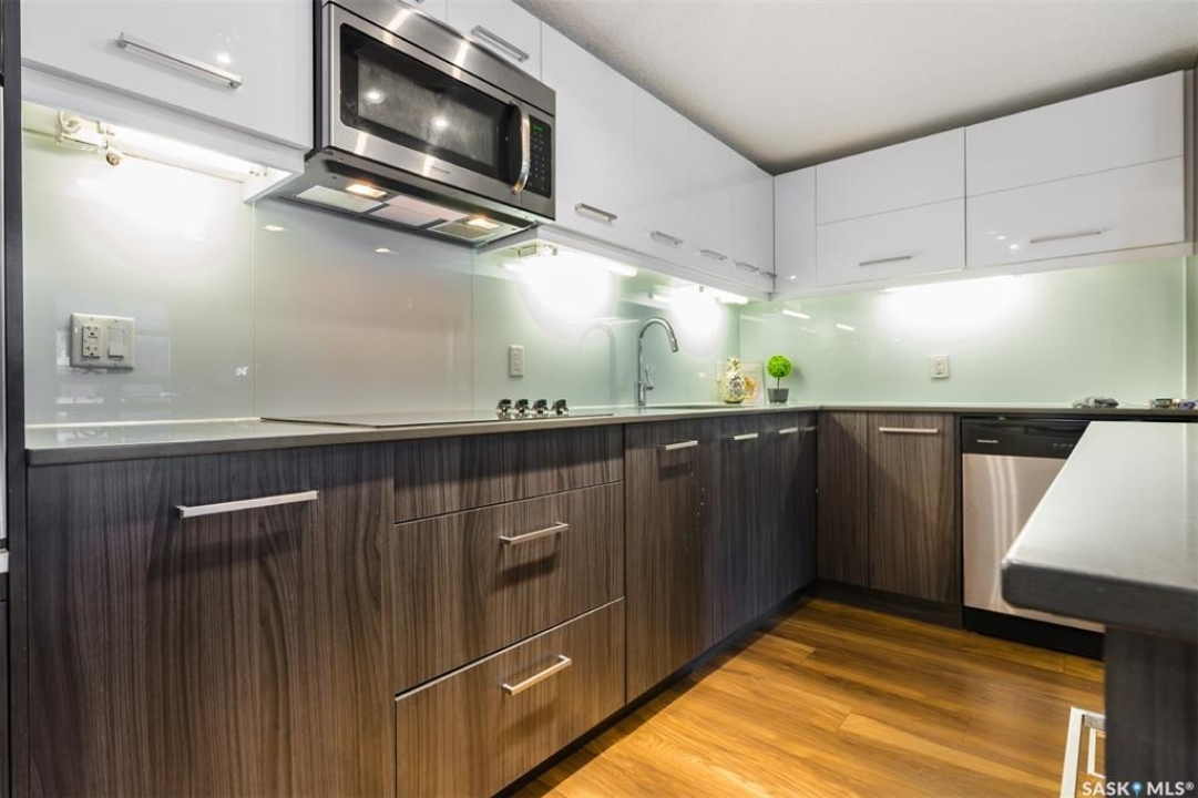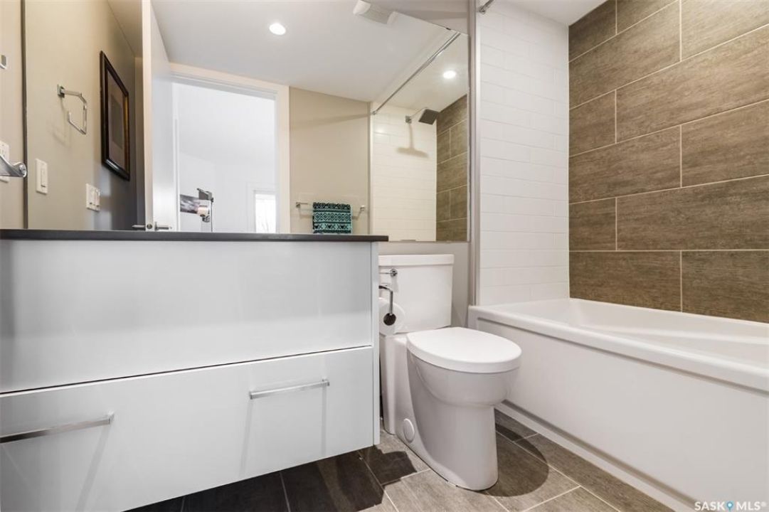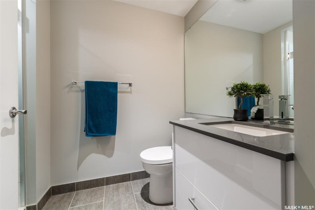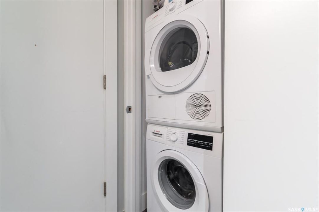 Enjoy downtown living in this newer, modern townhome located steps to the river. Well constructed and completed in 2017, this home is part of the popular Banks complex. Featuring 2 bedrooms, 3 bathrooms, an open concept layout on the main floor with lots of cabinetry and quartz countertops as well as stainless steel appliances, a Napoleon fireplace with new surround in the living room, a concrete feature wall and a two piece modern bath. Upstairs you will find a three piece bath with tiled shower and glass door, a Bosch washer and dryer, spacious primary bedroom with 4 piece en-suite and an additional bedroom both with balcony doors leading to a covered deck overlooking Avenue C. Brand new carpet throughout the upstairs and on the staircase. The townhome comes with TWO titled, heated underground side-by-side stalls and a storage unit. Other features include central air, natural gas hook-up for bbq, underground parking for your guests, rooftop deck and bike room. With only a few of these two-story style townhomes built, this is definitely a rare find. Enjoy the convenient location with many amenities close by including the newest restaurants, boutique shops and coffee spots.