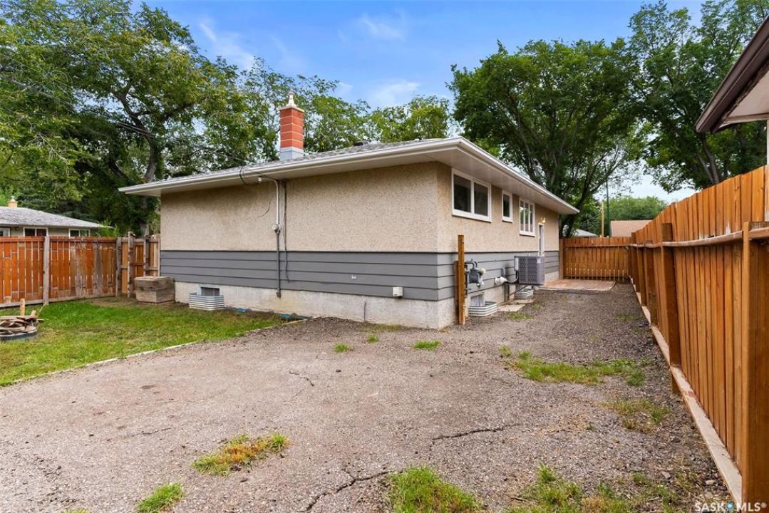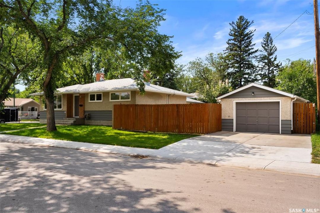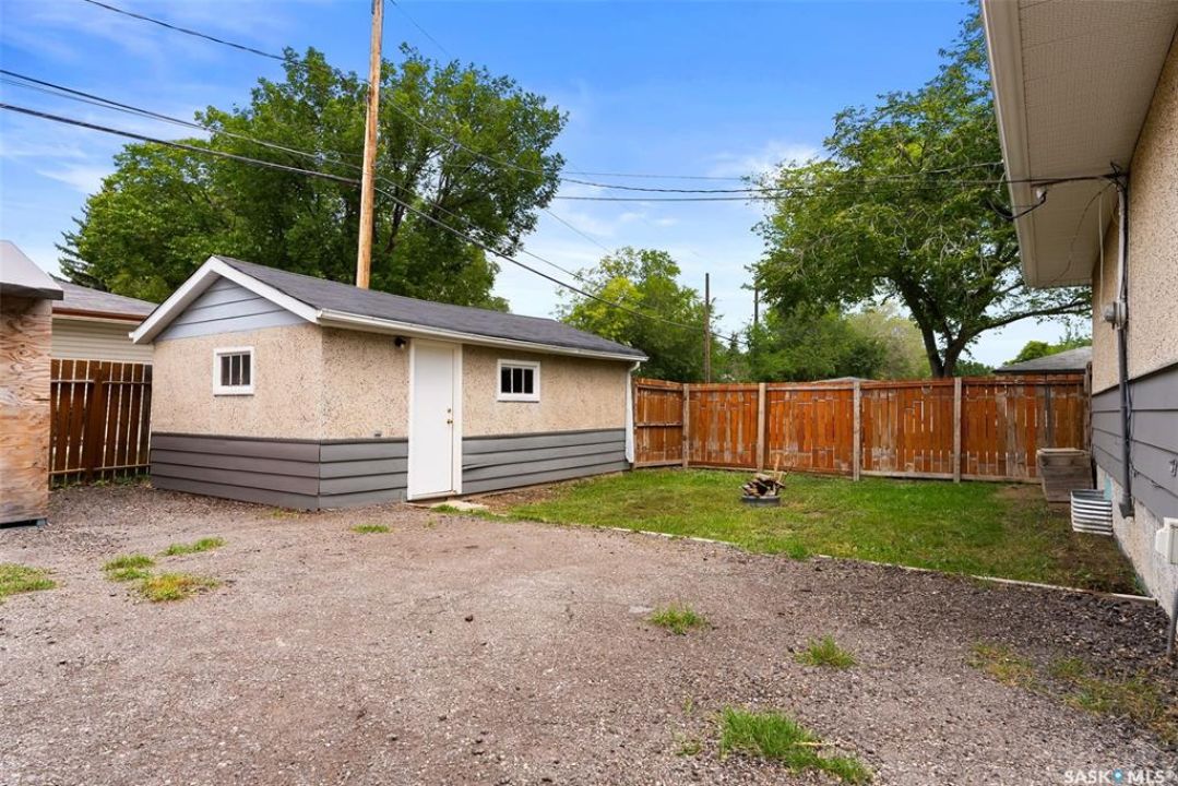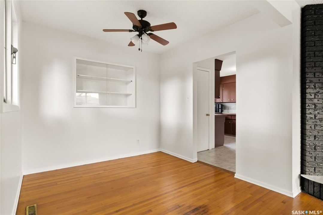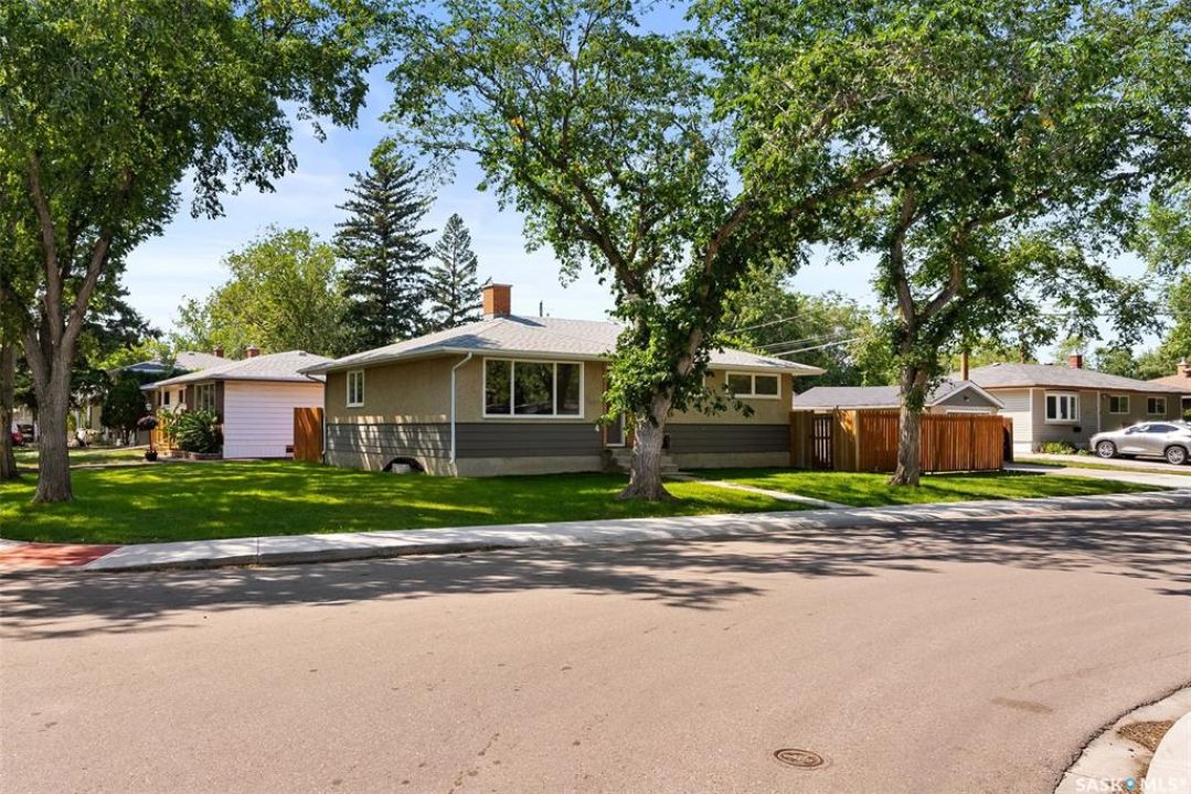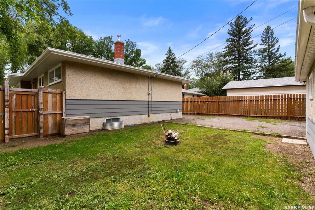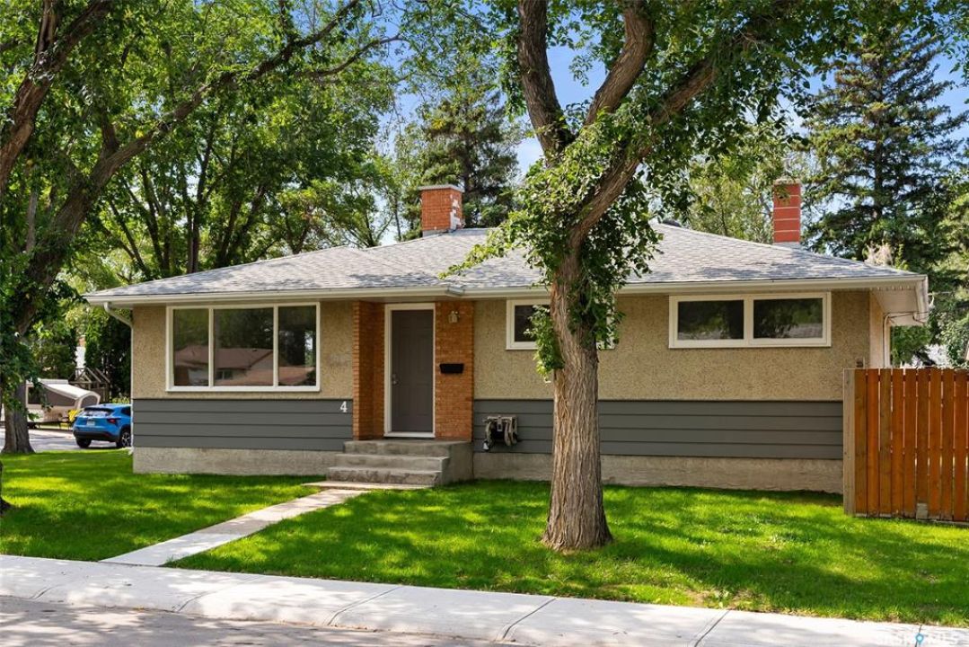 Welcome to 4 Burrows Street, a charming bungalow nestled in Regina's Regent Park neighbourhood. This 1,148 sq. ft. home sits on a mature 6,200 sq. ft. corner lot and offers a bright, functional layout with timeless character. The inviting living room showcases gleaming hardwood floors, a large picture window that fills the space with natural light, and a striking wood-burning fireplace with a bold black brick surround. The dining area flows into the kitchen, which offers plenty of cabinetry, counter space, and a backyard view. Down the hall are three comfortable bedrooms, including a primary suite with a private 2-piece ensuite. A full 4-piece bathroom completes the main floor. Step outside to enjoy a fully fenced yard with lush lawn, mature trees, and space for outdoor living. The single detached garage (13.4' x 21.5') and wide concrete driveway provide parking for up to three vehicles. Situated in a family-friendly community near schools, parks, shopping, and transit, this move-in ready property is an excellent choice for first-time buyers or growing families.