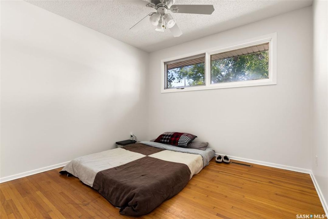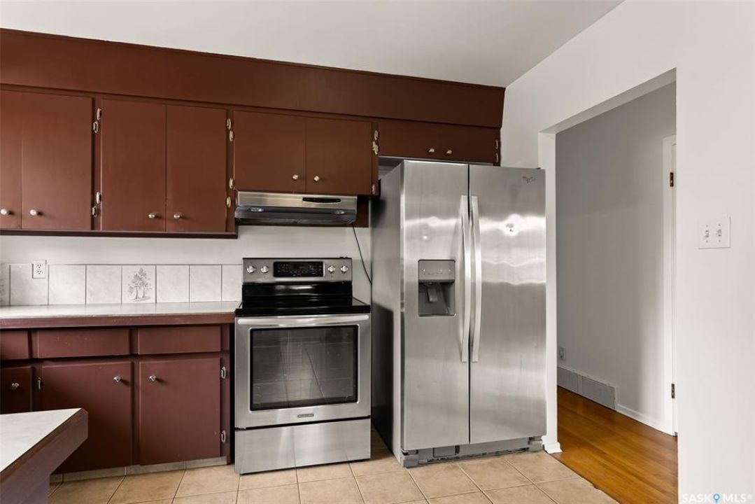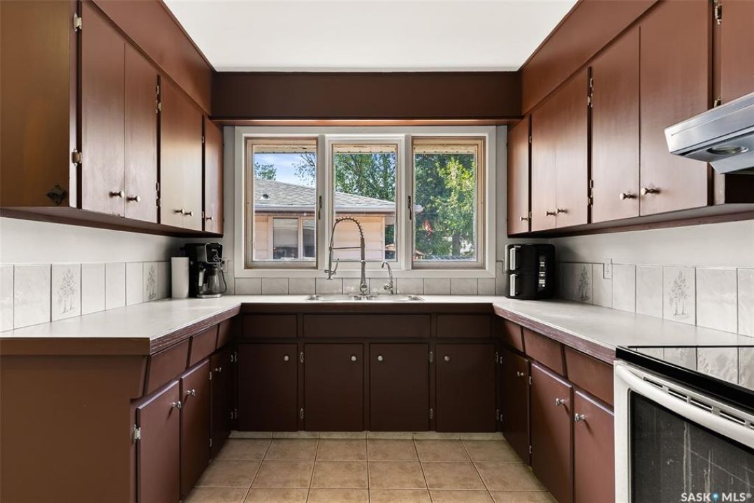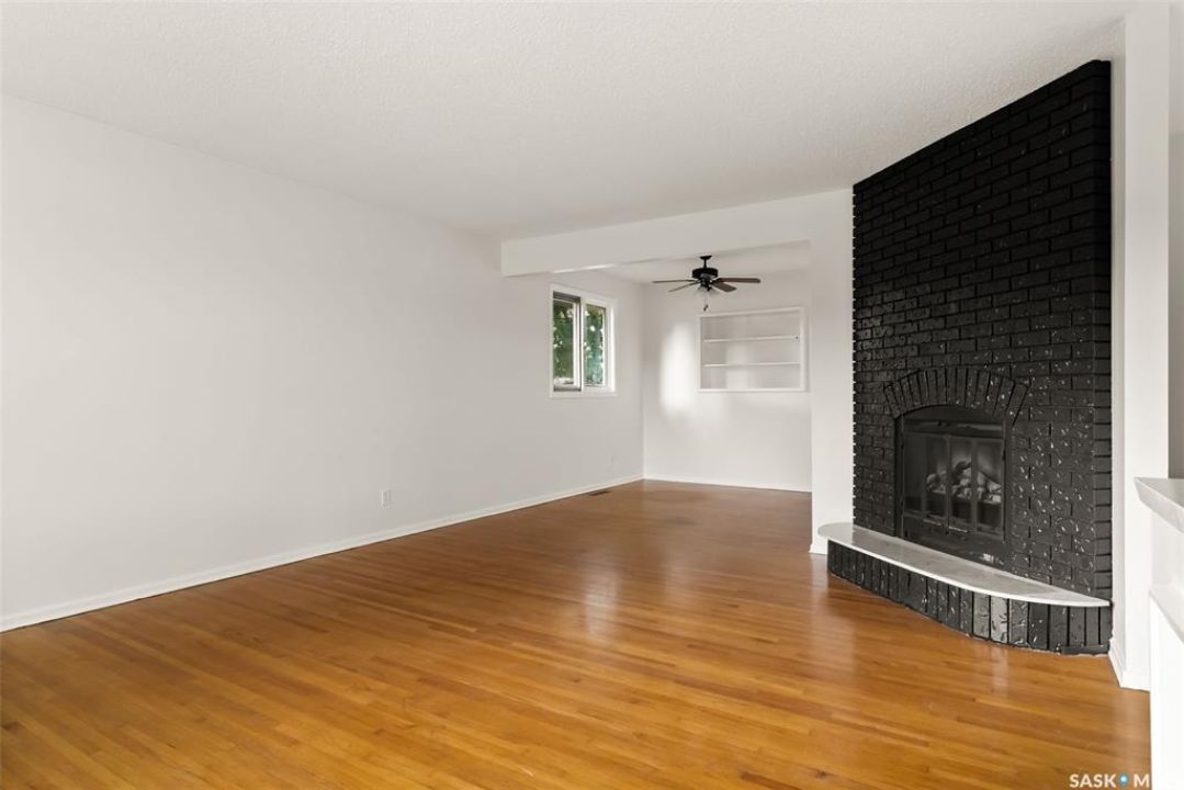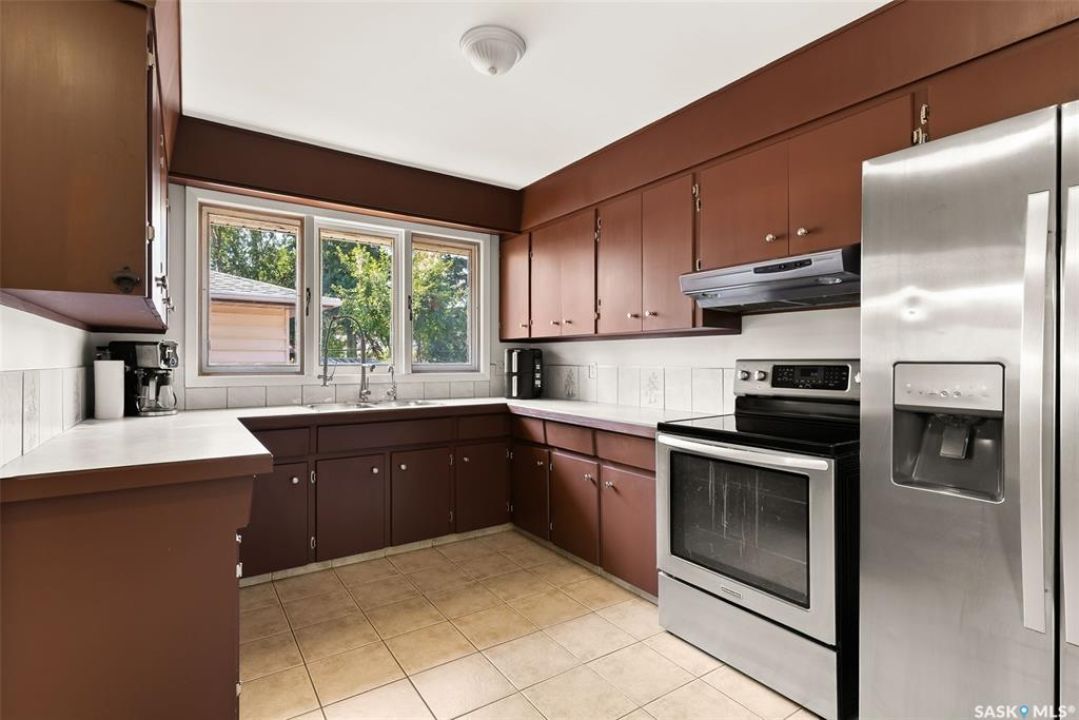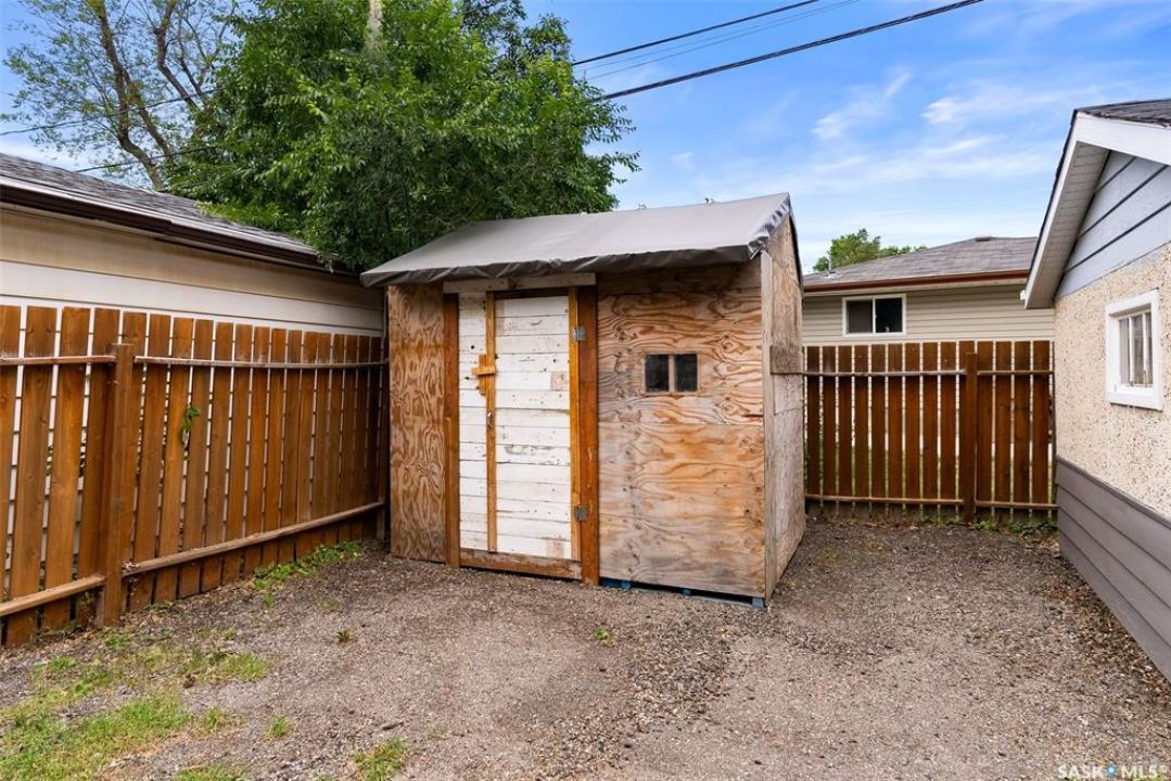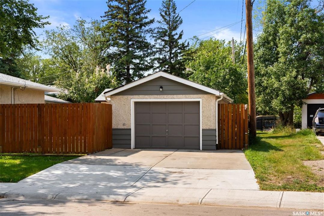 Welcome to 4 Burrows Street, a charming bungalow nestled in Regina's Regent Park neighbourhood. This 1,148 sq. ft. home sits on a mature 6,200 sq. ft. corner lot and offers a bright, functional layout with timeless character. The inviting living room showcases gleaming hardwood floors, a large picture window that fills the space with natural light, and a striking wood-burning fireplace with a bold black brick surround. The dining area flows into the kitchen, which offers plenty of cabinetry, counter space, and a backyard view. Down the hall are three comfortable bedrooms, including a primary suite with a private 2-piece ensuite. A full 4-piece bathroom completes the main floor. Step outside to enjoy a fully fenced yard with lush lawn, mature trees, and space for outdoor living. The single detached garage (13.4' x 21.5') and wide concrete driveway provide parking for up to three vehicles. Situated in a family-friendly community near schools, parks, shopping, and transit, this move-in ready property is an excellent choice for first-time buyers or growing families.