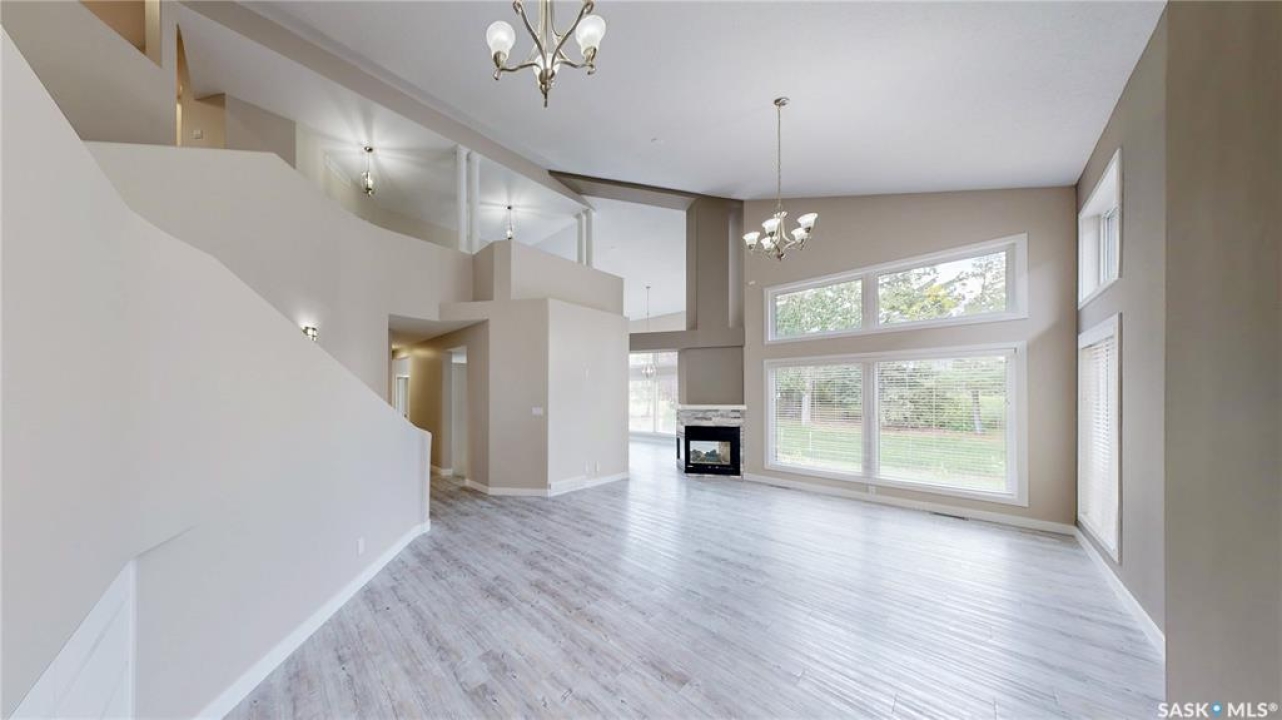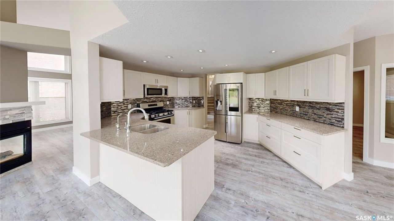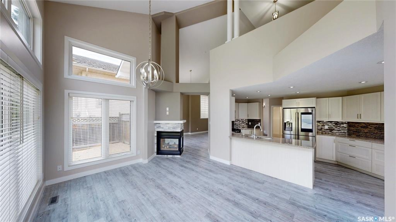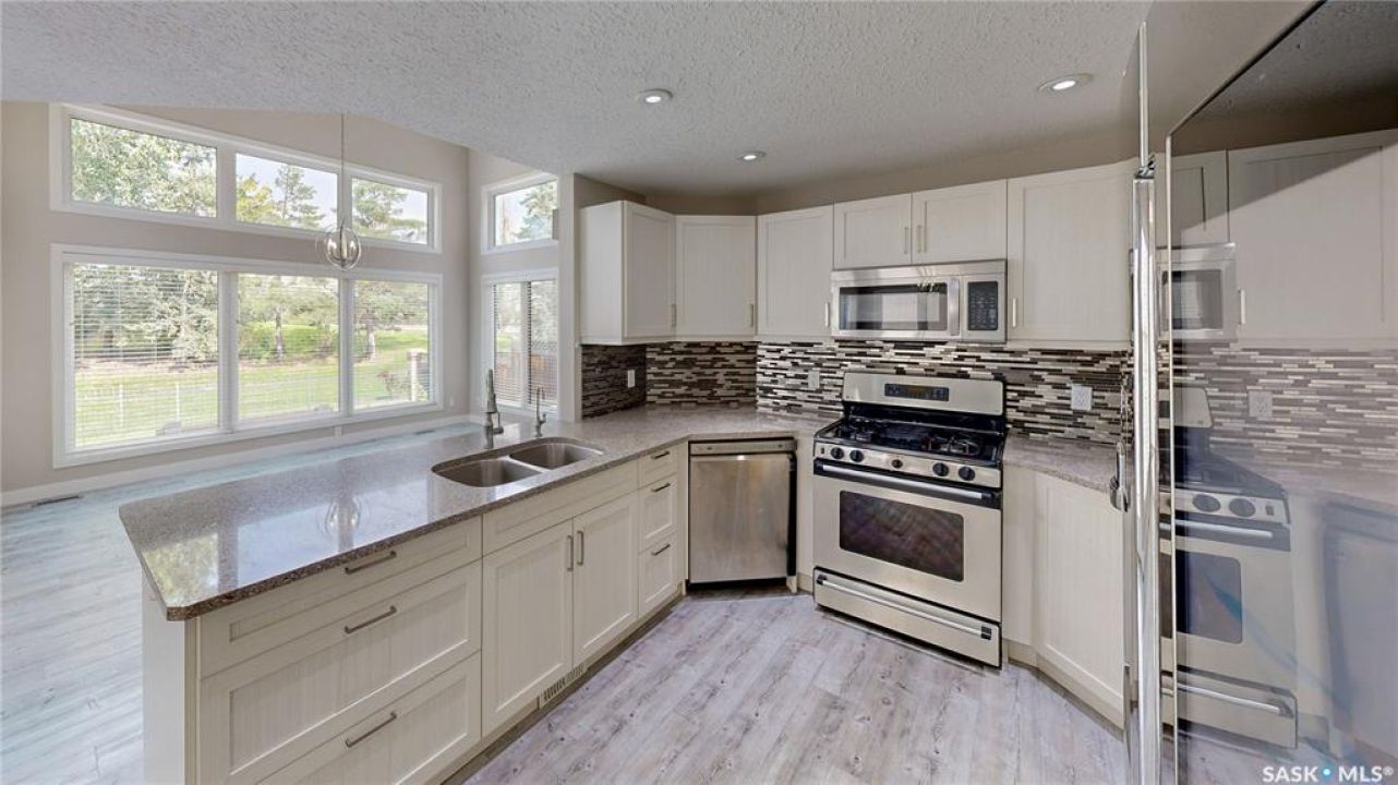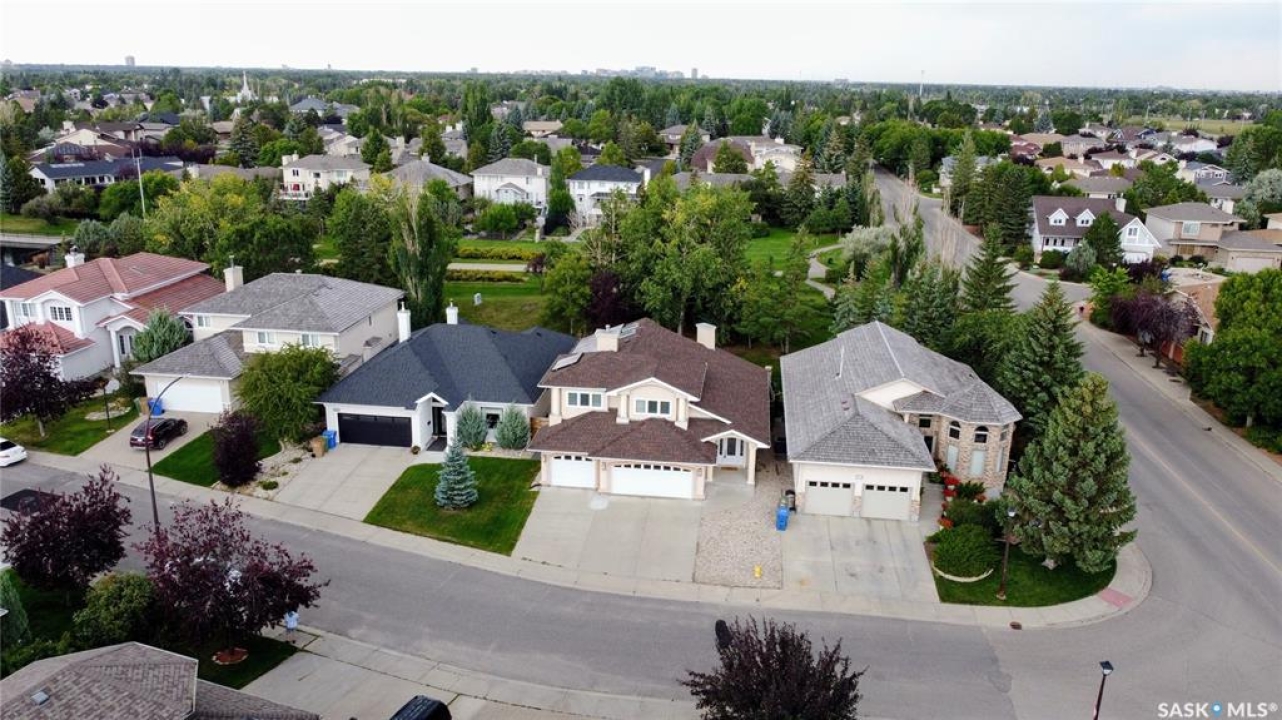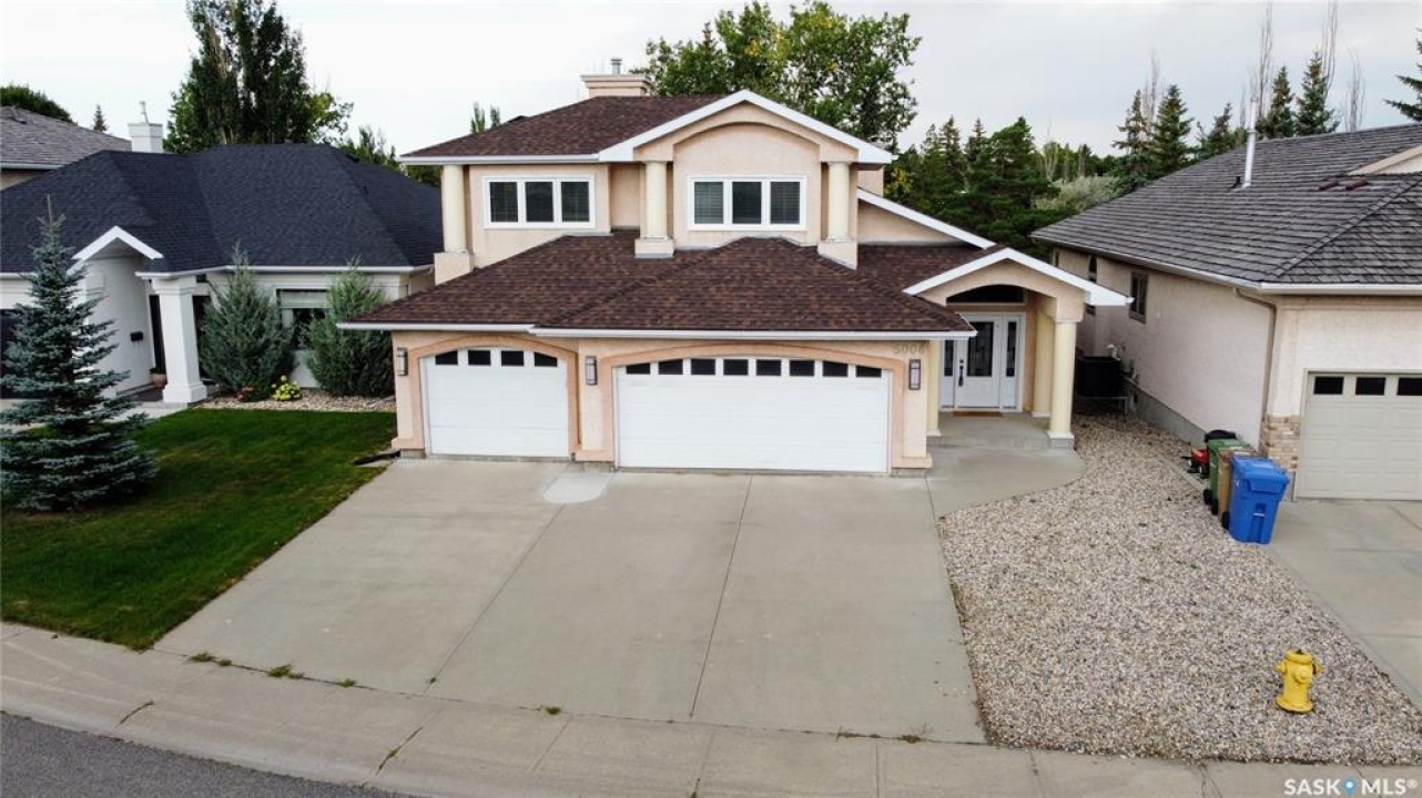 Welcome to 5006 Wascana Vista Court. This 1991-built former show home is nestled in the sought-after Wascana View neighborhood. This quiet cul-de-sac location backs onto a walking path, offering convenient access to east-end amenities and schools. This two-story split home features 3bd, 3ba, and a spacious 32x24 triple attached insulated garage. The exterior and landscaping are very low maintenance, with a xeriscaped front yard, stucco siding, and a backyard with multiple patio areas and artificial turf. Upon entering, you are greeted by a foyer with 2 closets and tile flooring. A curved staircase descends into the expansive great room, featuring massive windows that provide views of the greenspace. The formal dining room is separated from the great room by a 3 sided gas fireplace. Overlooking the dining room is the updated kitchen, complete with ample cabinet space, quartz countertops, a tile backsplash, and included stainless steel appliances: a fridge, gas stove, and over-the-range microwave hood fan. Next, an additional versatile room can serve as a family room, or reading nook. Adjacent is a main floor office, with natural light from a rear window. The main floor also includes a 2pc bathroom, a large laundry room, and a utility room housing 2 new furnaces and a air conditioner (installed June 2025), a rented water heater, and an r/o system. A storage area completes this level. Ascending a curved staircase, you arrive at a bonus room, located next to the master. The master suite has French doors, expansive windows, a custom-built walk-in closet, and a luxurious 5pc ensuite bathroom with 2 sinks, a jet tub, a custom tile shower, and heated floors. A few more stairs lead to the top floor that has an additional nook, 2 generous bedrooms, and a 5pc bathroom equipped with double sinks and a deep soaker bathtub. The entire home has been recently painted, and significant energy efficiency upgrades were made in 2023, including new shingles and solar panels.