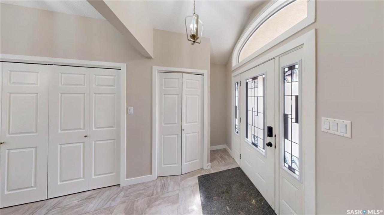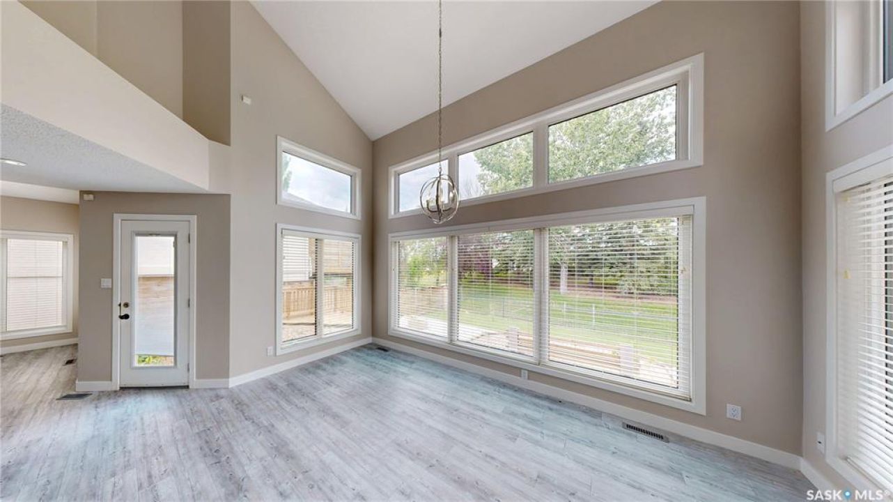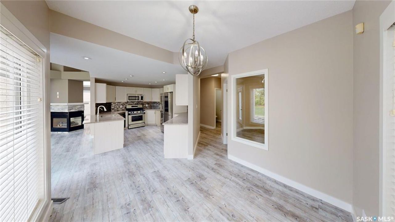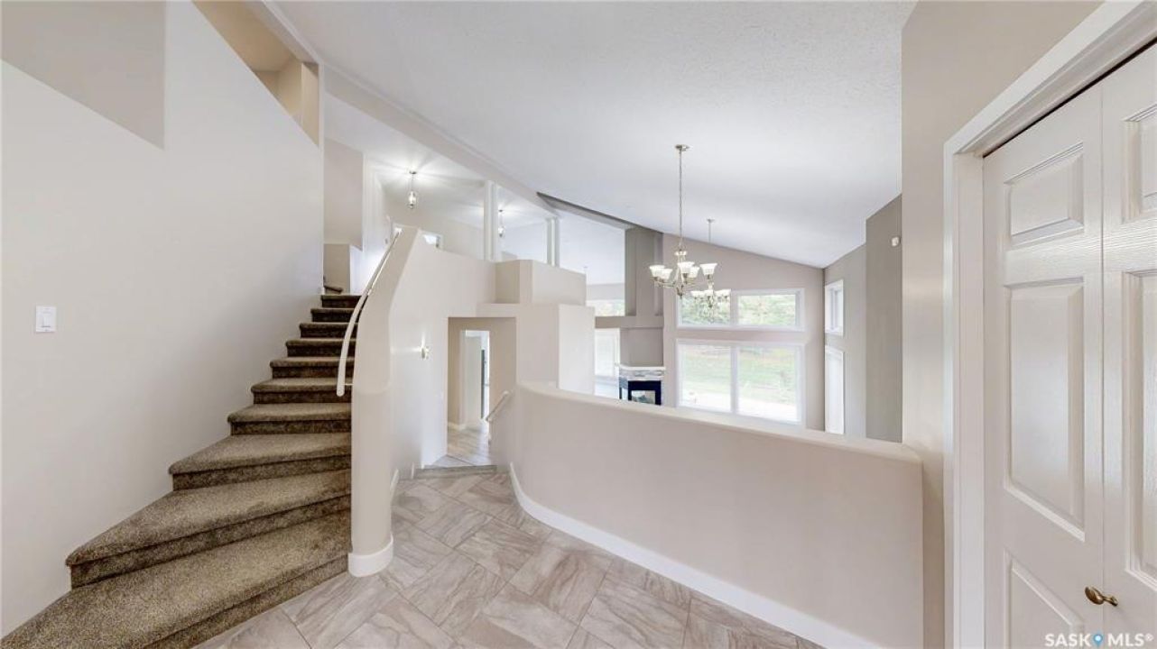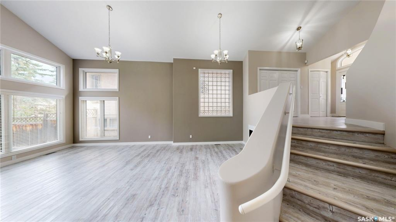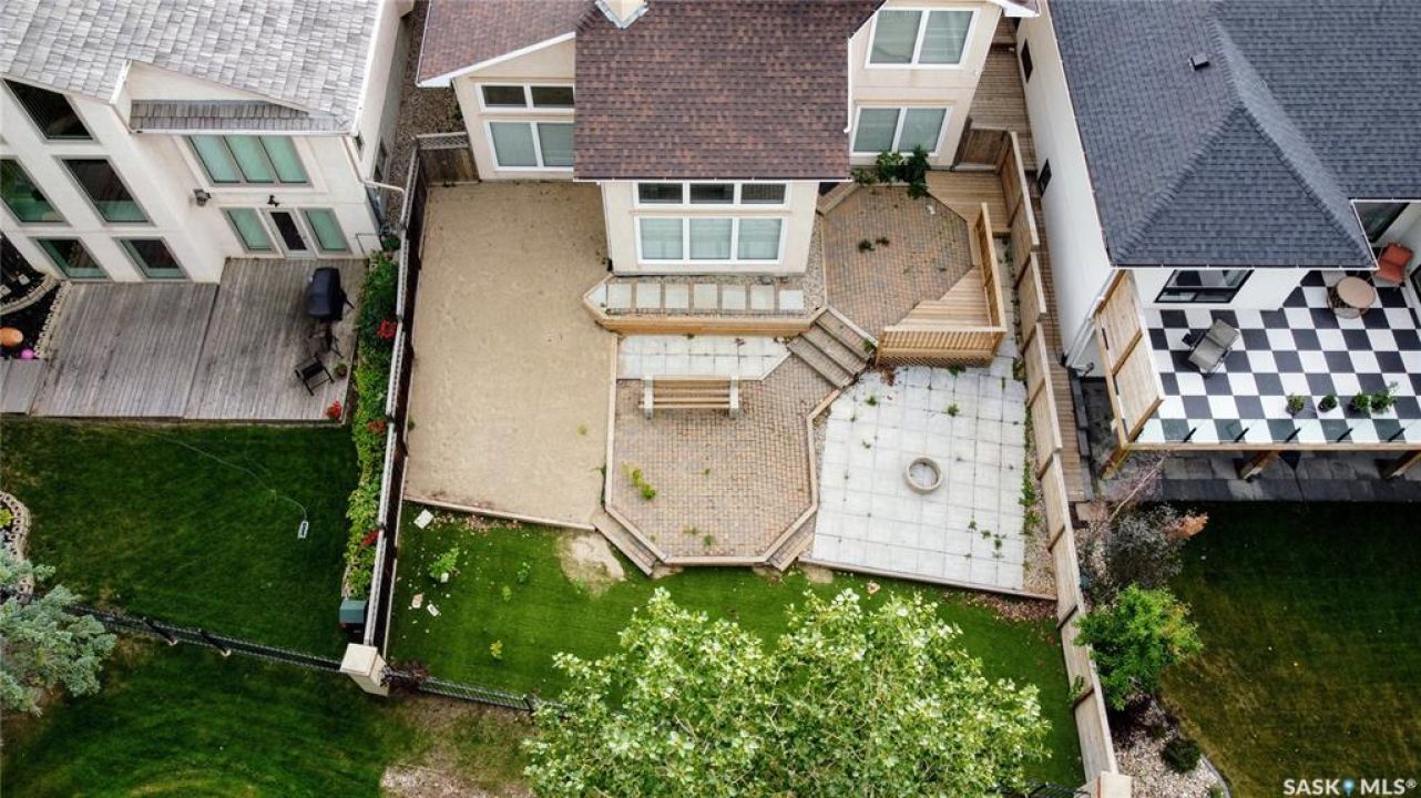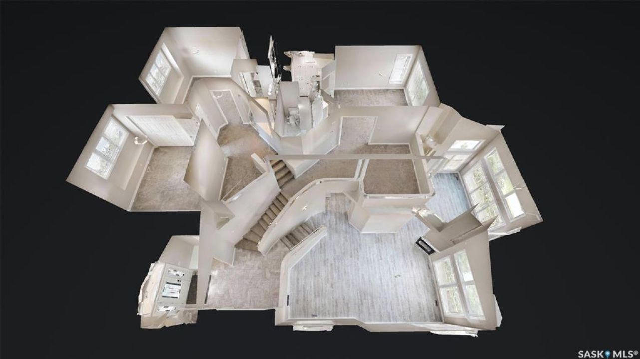 Welcome to 5006 Wascana Vista Court. This 1991-built former show home is nestled in the sought-after Wascana View neighborhood. This quiet cul-de-sac location backs onto a walking path, offering convenient access to east-end amenities and schools. This two-story split home features 3bd, 3ba, and a spacious 32x24 triple attached insulated garage. The exterior and landscaping are very low maintenance, with a xeriscaped front yard, stucco siding, and a backyard with multiple patio areas and artificial turf. Upon entering, you are greeted by a foyer with 2 closets and tile flooring. A curved staircase descends into the expansive great room, featuring massive windows that provide views of the greenspace. The formal dining room is separated from the great room by a 3 sided gas fireplace. Overlooking the dining room is the updated kitchen, complete with ample cabinet space, quartz countertops, a tile backsplash, and included stainless steel appliances: a fridge, gas stove, and over-the-range microwave hood fan. Next, an additional versatile room can serve as a family room, or reading nook. Adjacent is a main floor office, with natural light from a rear window. The main floor also includes a 2pc bathroom, a large laundry room, and a utility room housing 2 new furnaces and a air conditioner (installed June 2025), a rented water heater, and an r/o system. A storage area completes this level. Ascending a curved staircase, you arrive at a bonus room, located next to the master. The master suite has French doors, expansive windows, a custom-built walk-in closet, and a luxurious 5pc ensuite bathroom with 2 sinks, a jet tub, a custom tile shower, and heated floors. A few more stairs lead to the top floor that has an additional nook, 2 generous bedrooms, and a 5pc bathroom equipped with double sinks and a deep soaker bathtub. The entire home has been recently painted, and significant energy efficiency upgrades were made in 2023, including new shingles and solar panels.