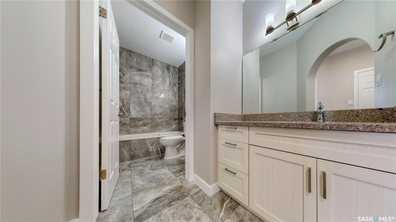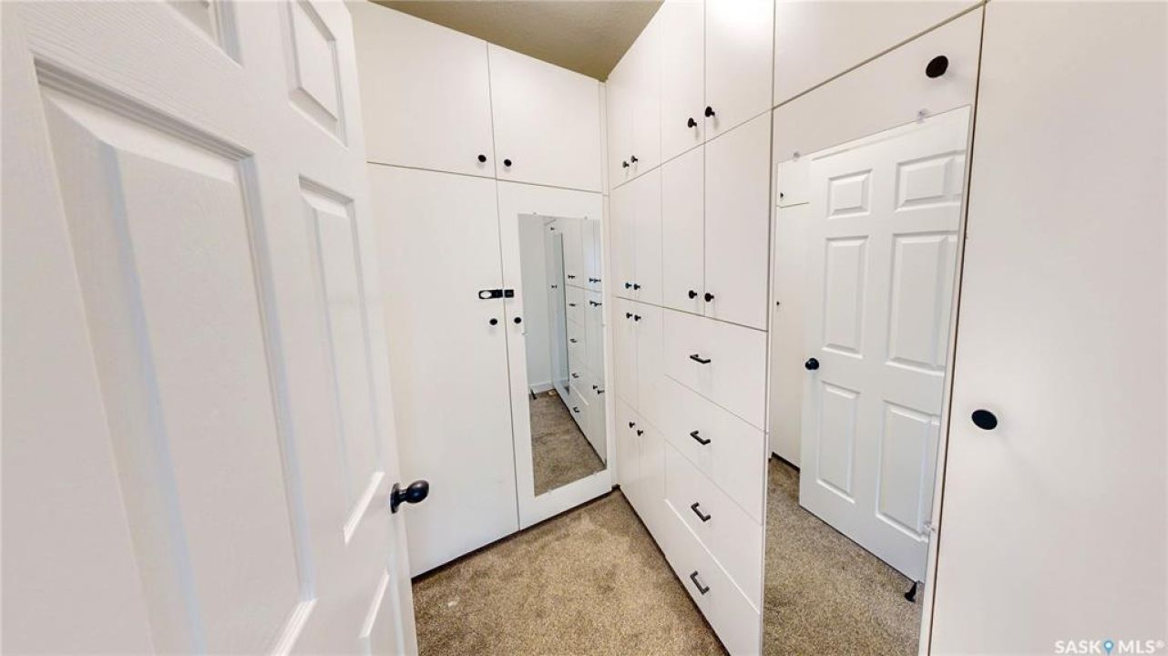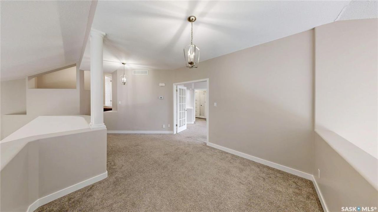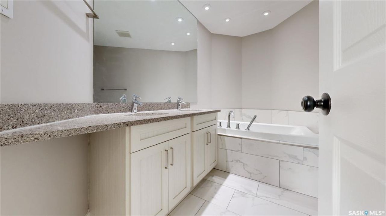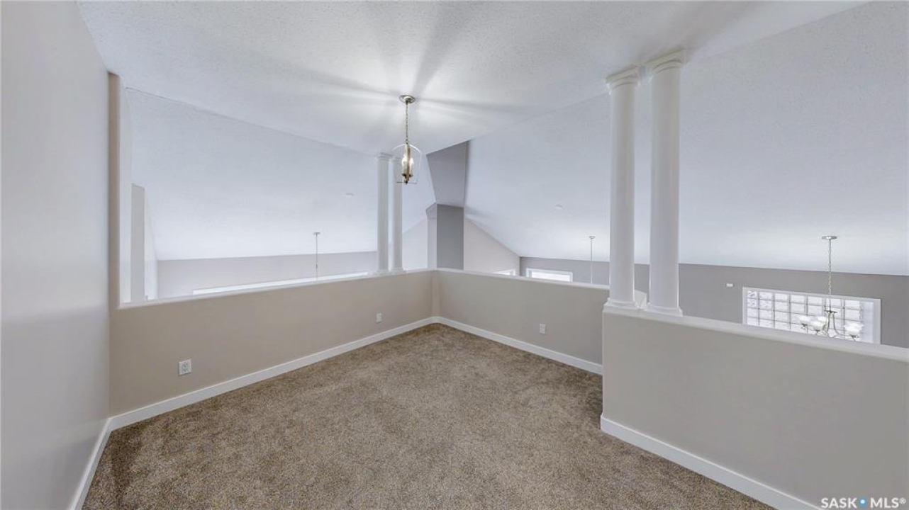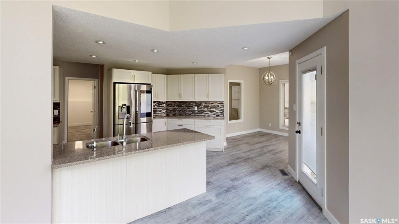 Welcome to 5006 Wascana Vista Court. This 1991-built former show home is nestled in the sought-after Wascana View neighborhood. This quiet cul-de-sac location backs onto a walking path, offering convenient access to east-end amenities and schools. This two-story split home features 3bd, 3ba, and a spacious 32x24 triple attached insulated garage. The exterior and landscaping are very low maintenance, with a xeriscaped front yard, stucco siding, and a backyard with multiple patio areas and artificial turf. Upon entering, you are greeted by a foyer with 2 closets and tile flooring. A curved staircase descends into the expansive great room, featuring massive windows that provide views of the greenspace. The formal dining room is separated from the great room by a 3 sided gas fireplace. Overlooking the dining room is the updated kitchen, complete with ample cabinet space, quartz countertops, a tile backsplash, and included stainless steel appliances: a fridge, gas stove, and over-the-range microwave hood fan. Next, an additional versatile room can serve as a family room, or reading nook. Adjacent is a main floor office, with natural light from a rear window. The main floor also includes a 2pc bathroom, a large laundry room, and a utility room housing 2 new furnaces and a air conditioner (installed June 2025), a rented water heater, and an r/o system. A storage area completes this level. Ascending a curved staircase, you arrive at a bonus room, located next to the master. The master suite has French doors, expansive windows, a custom-built walk-in closet, and a luxurious 5pc ensuite bathroom with 2 sinks, a jet tub, a custom tile shower, and heated floors. A few more stairs lead to the top floor that has an additional nook, 2 generous bedrooms, and a 5pc bathroom equipped with double sinks and a deep soaker bathtub. The entire home has been recently painted, and significant energy efficiency upgrades were made in 2023, including new shingles and solar panels.