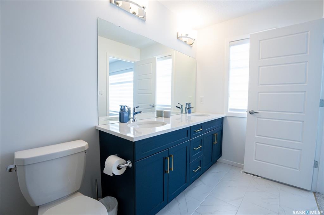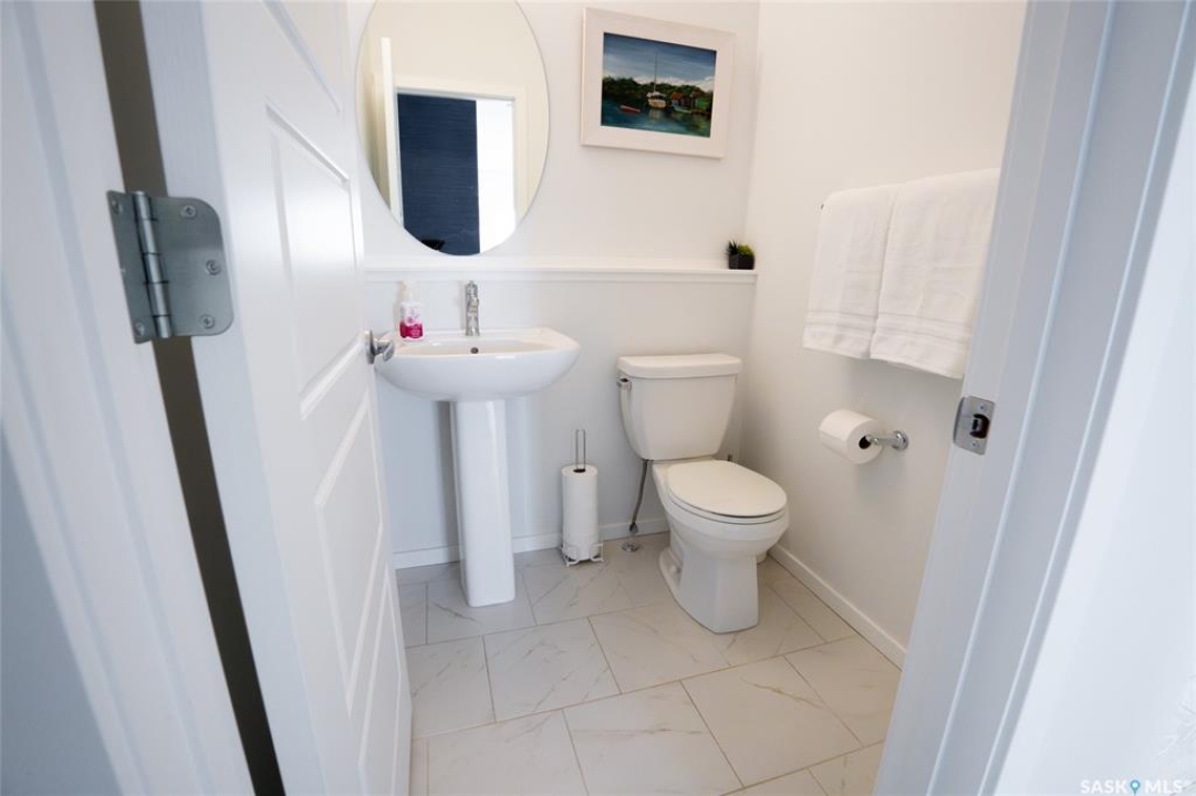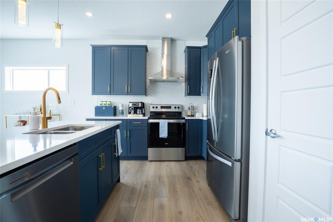 Welcome to 3033 Bellegarde Crescent, an exceptional 1765 sqft two-storey luxury home nestled in one of East Regina's most tranquil and sought-after neighbourhoods. This meticulously designed property backs onto a breathtaking green space, offering unparalleled privacy, serenity, and scenic views right from your backyard. Step inside to discover a beautifully crafted open-concept main floor featuring high-end finishes, main floor office/den, an abundance of natural light, and thoughtful design throughout. The gourmet kitchen boasts premium appliances, quartz countertops, and a spacious island, perfect for entertaining. The adjoining living and dining areas flow seamlessly, creating a warm and inviting atmosphere. Upstairs, you'll find three generously sized bedrooms, including a luxurious primary suite complete with a spa-inspired ensuite and a walk-in closet. Every detail has been considered to offer comfort, elegance, and functionality. The fully finished legal basement suite is an incredible bonus, adding additional income to help pay your mortgage, or ideal for extended family or guests. With its own private entrance, full kitchen, laundry, and modern finishes, it provides flexibility without compromising style or space. Outside, enjoy the tranquility of nature with direct views to the naturalized landscape – perfect for morning coffee, evening strolls, or simply unwinding in peace.