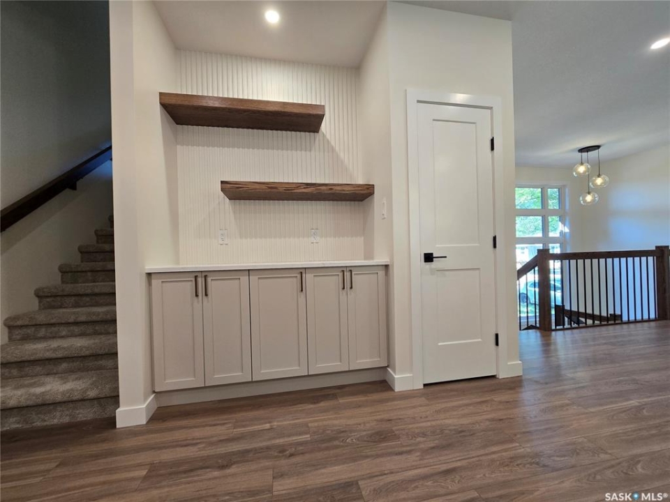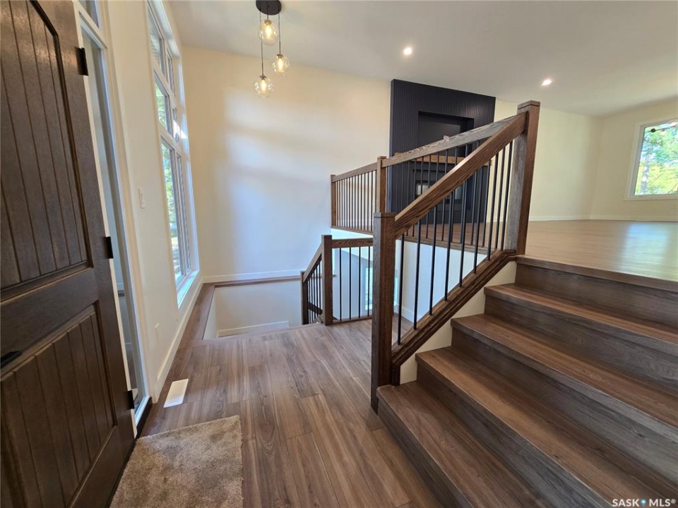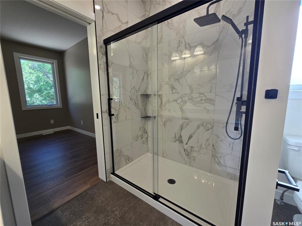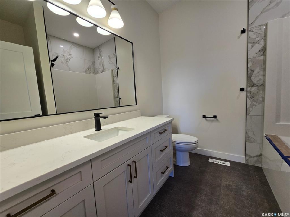 Welcome to this stunning brand new two-story home, thoughtfully designed for modern living and effortless comfort. Step inside to discover an open and inviting main floor with a wall of windows that's screams elegance. The chef's kitchen boasts sleek finishes, quality cabinetry, and seamless flow into the dining area and living room, perfect for entertaining or relaxed family evenings. Cozy up by the fireplace or step outside to the covered deck, ideal for year-round outdoor living. There is a spacious primary suite, offering privacy and convenience with a luxurious En-suite, massive walk-in closet, and access to the main floor laundry. The main level also includes a stylish powder room for guests. Upstairs, you'll find two generously sized bedrooms, both with walk-in closets and a full bath, offering a private space for family or guests. The unfinished basement provides endless potential—create a home gym, media room, or additional living space to suit your needs. The basement is also set up to accommodate two more bedrooms, a bathroom, and lots of storage. There is also an amazing heated triple car garage. This new home comes with 1 year New Home warranty, and a 3 year tax exemption from the City of Weyburn that is transferable to the buyer. This home blends functional layout with modern elegance and is ready to welcome you home. Don't miss your chance to make it yours!