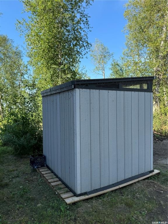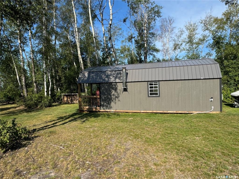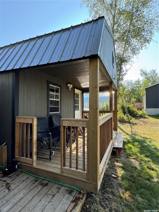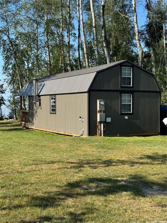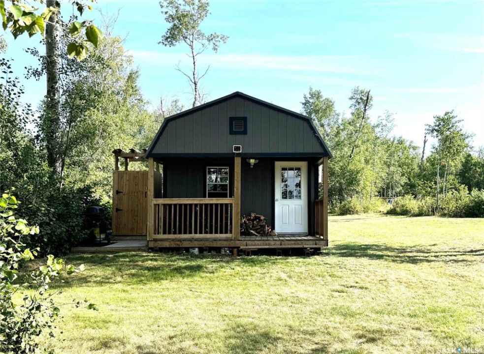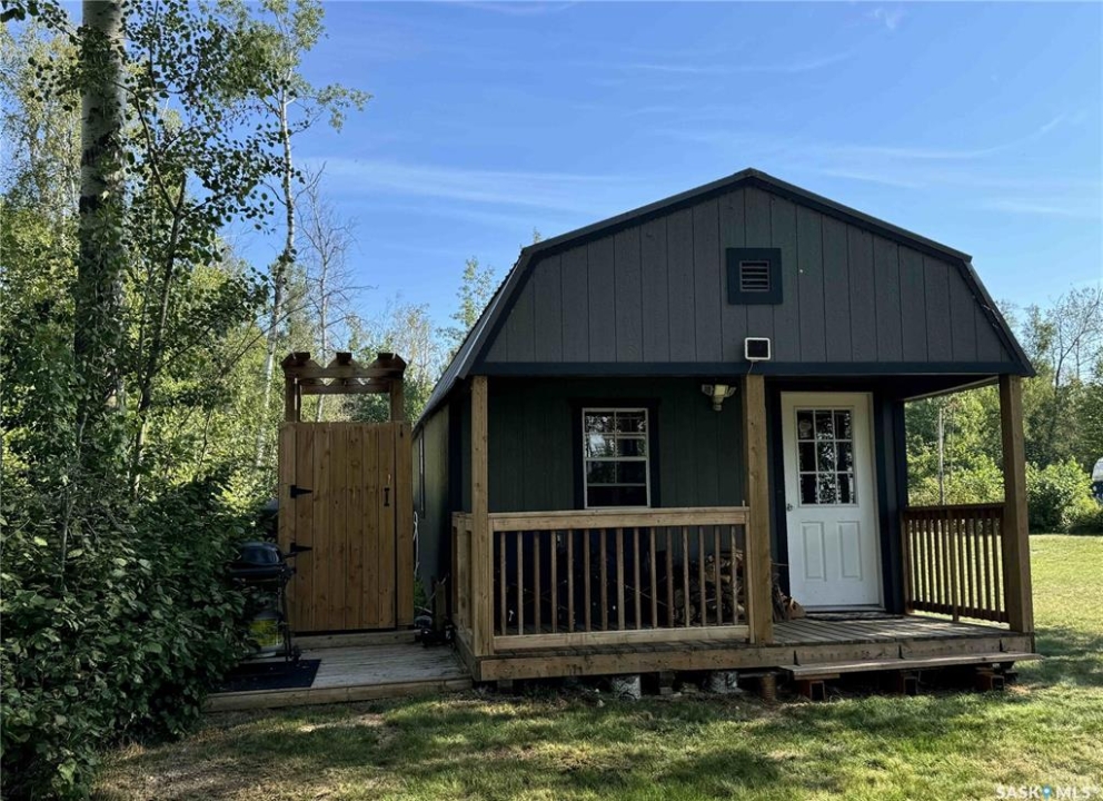 Discover this delightful 2021 hip-roof cabin, nestled on an 80x220 ft lot with stunning views of Peter Pond Lake. Boasting 448 sq. ft. of well-designed cabin, features 1 bedroom, 2 lofts, a storage room, and a combined kitchen, dining, and living area. Enjoy the cozy warmth from the wood stove and/or electric heater and stay cool with portable air conditioning. The property includes a 1250-gallon water tank serviced locally, outdoor on demand propane-heated shower, and a compost toilet. New rustic laminate flooring and excellent insulation make for comfortable living. Cabin comes fully furnished beds, couches, stove, microwave, fridge, and table and chairs. The lot is beautifully landscaped with a new lawn among mature birch and poplar trees. A 4' front deck offers a perfect spot to take in lake views. With a boat launch just ½ mile away, enjoy easy access to exceptional fishing and nearby lakes. Includes woodshed and storage shed. Conveniently located approximately 3 miles from Buffalo Narrows, which offers three (3) gas stations, restaurants, Home Hardware, pubs, Tim Hortons, Subway, grocery stores, and mechanic shops. Weekly garbage pick-up completes this ideal lakeside retreat. With the announcement of the highway being built to Fort McMurray and a new mine an hour away, this area is going to see significant growth from jobs created at the mine and demand for recreational properties for Saskatchewan and Alberta residents alike. Legal Land Description: Condo Plan 102063338 Ext 0, Lot 35 Title # 150868952 Surface Condo