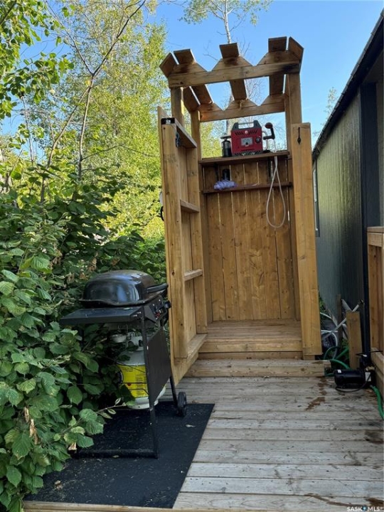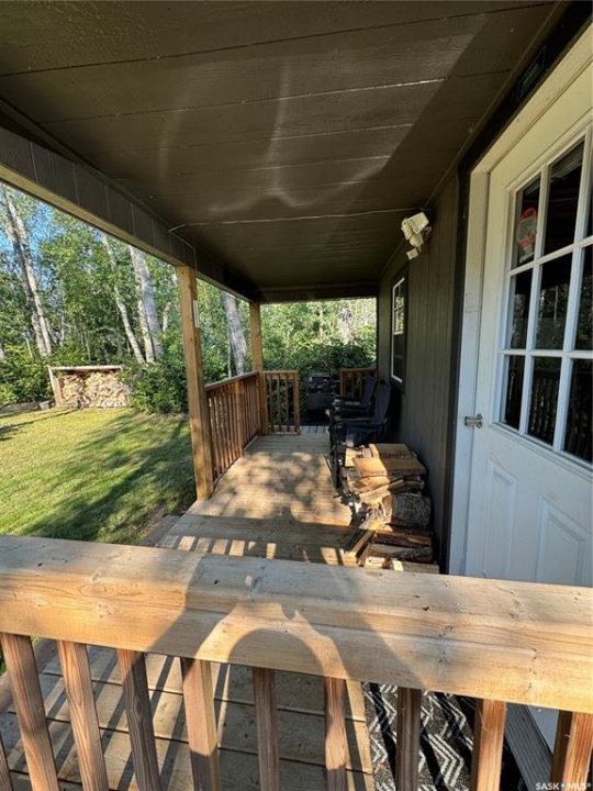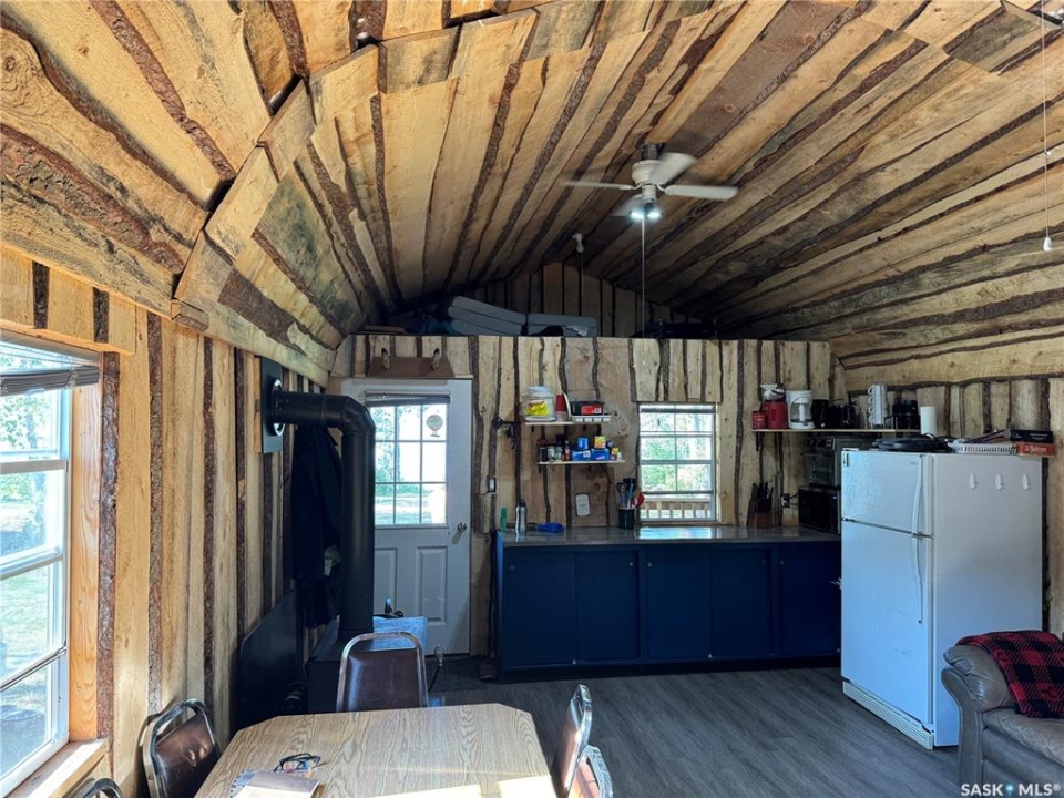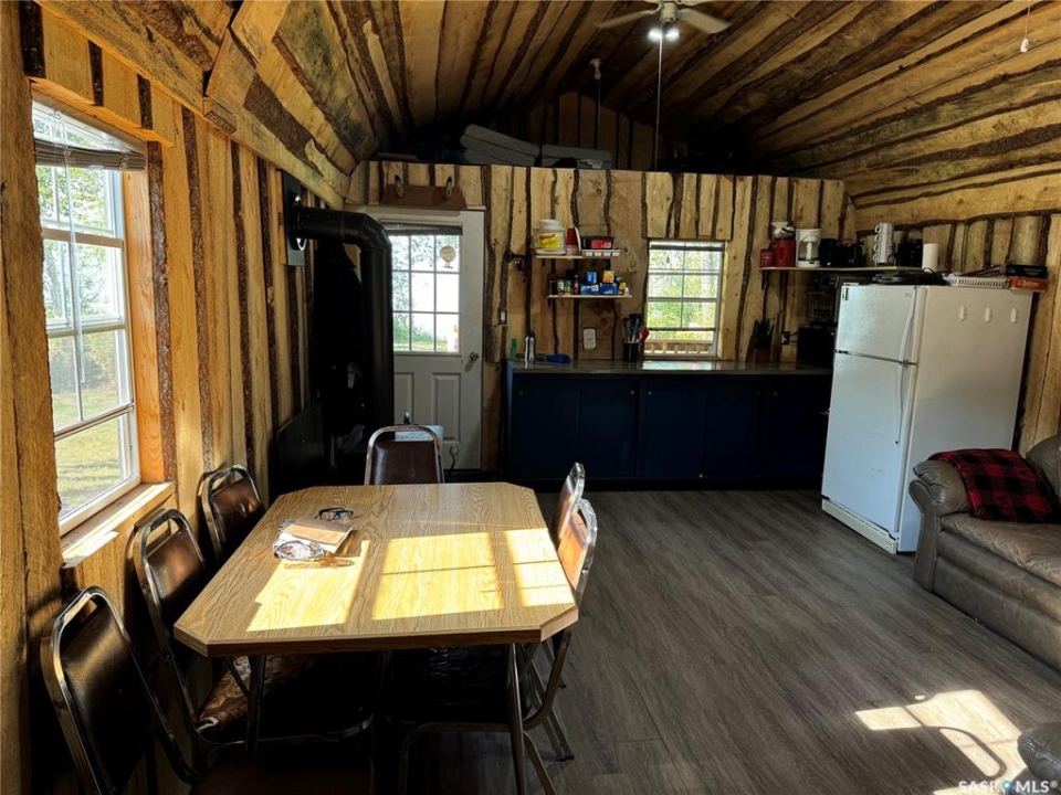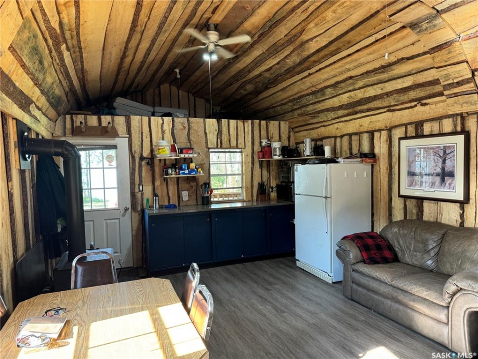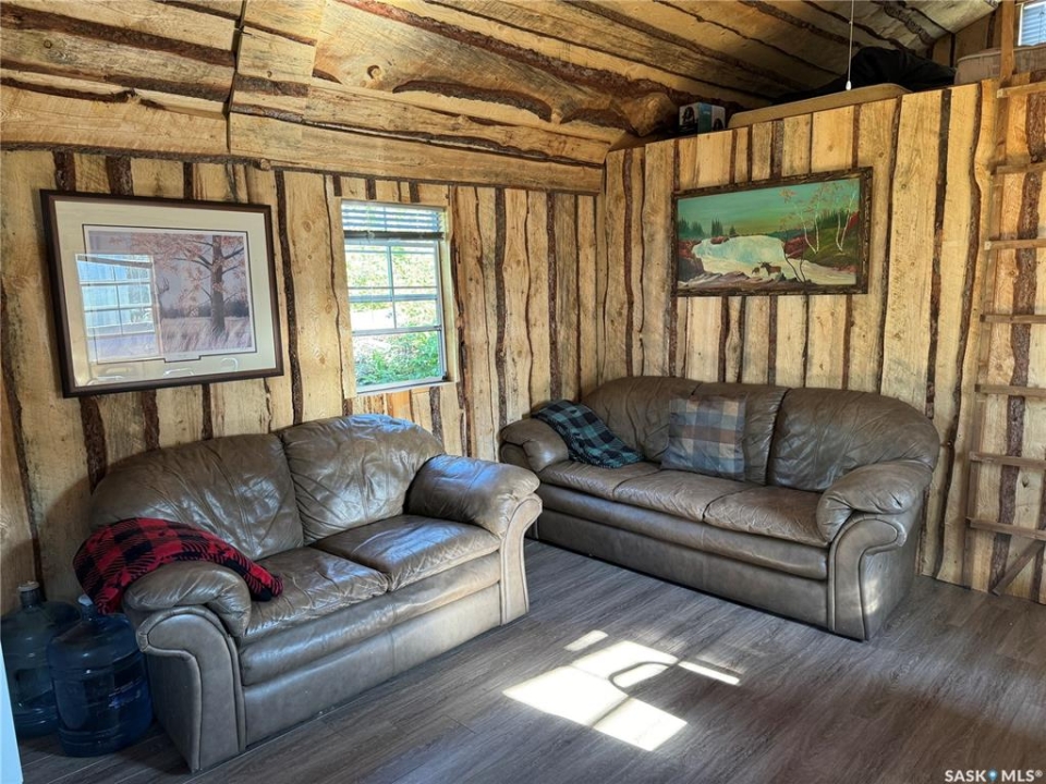 Discover this delightful 2021 hip-roof cabin, nestled on an 80x220 ft lot with stunning views of Peter Pond Lake. Boasting 448 sq. ft. of well-designed cabin, features 1 bedroom, 2 lofts, a storage room, and a combined kitchen, dining, and living area. Enjoy the cozy warmth from the wood stove and/or electric heater and stay cool with portable air conditioning. The property includes a 1250-gallon water tank serviced locally, outdoor on demand propane-heated shower, and a compost toilet. New rustic laminate flooring and excellent insulation make for comfortable living. Cabin comes fully furnished beds, couches, stove, microwave, fridge, and table and chairs. The lot is beautifully landscaped with a new lawn among mature birch and poplar trees. A 4' front deck offers a perfect spot to take in lake views. With a boat launch just ½ mile away, enjoy easy access to exceptional fishing and nearby lakes. Includes woodshed and storage shed. Conveniently located approximately 3 miles from Buffalo Narrows, which offers three (3) gas stations, restaurants, Home Hardware, pubs, Tim Hortons, Subway, grocery stores, and mechanic shops. Weekly garbage pick-up completes this ideal lakeside retreat. With the announcement of the highway being built to Fort McMurray and a new mine an hour away, this area is going to see significant growth from jobs created at the mine and demand for recreational properties for Saskatchewan and Alberta residents alike. Legal Land Description: Condo Plan 102063338 Ext 0, Lot 35 Title # 150868952 Surface Condo